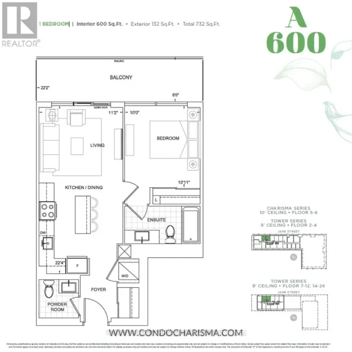 Cross Streets: Jane & Rutherford. ** Directions: Entrance off of Fisherman's Way, Across from Vaughan Mills Shopping Mall. Welcome to Charisma2 on the Park - Brand New South Tower by Greenpark. Modern and bright one bedroom suite with ample layout at a total of 732 sq.ft. (600 sq.ft. + 132