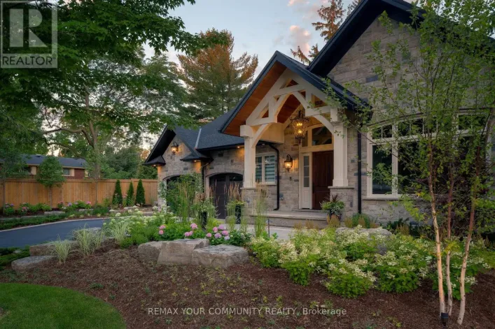 Private Lane off Lakeshore Road E. Just east of Maple Grove Dr Nestled at the end of a private laneway on .996 acre in sought-after South East Oakville,tranquility awaits. This Arts and Crafts-style home, boasting a wrap-around veranda,sits amidst nearly an acre of meticulously manicured gardens.
