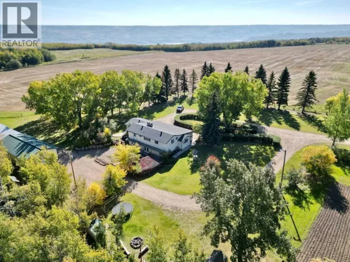 Welcome to this fully developed, character-filled home nestled on 46.48 beautiful acres with private trails leading down to the banks of the Peace River. Step inside through the back deck into a welcoming mudroom, complete with ample space for coats, boots, and outdoor gear, conveniently located