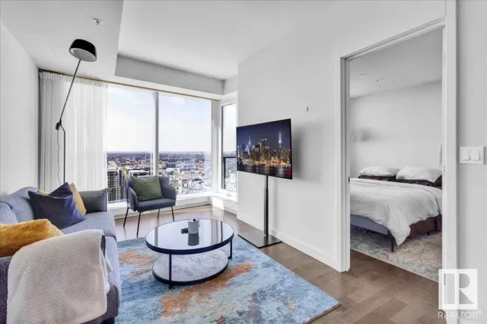 Spacious 2 BEDROOM+DEN, available at the Legends Private Residences! Appreciate beautiful RIVER VALLEY VIEWS from this high-floor East exposure, which clears Edmonton Tower. Favorite features include: High-Gloss Kitchen with Full-Size Integrated Appliances (gas), King-Size Primary Suite with