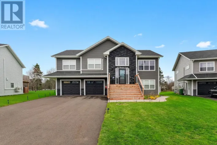 Welcome to a custom built home at 49 Meadow Lane, situated in West Royalty, featuring a secondary suite on the lower level. The open concept living room features a cathedral ceiling and custom kitchens on both levels. The large primary bedroom features a walk-in closet and a full ensuite bath