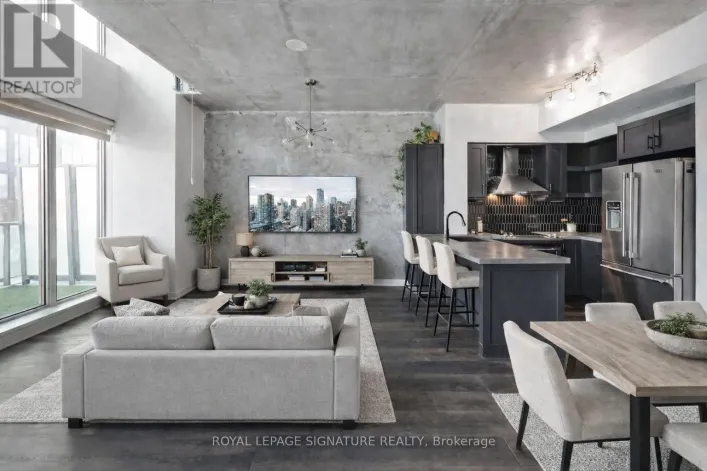 Cross Streets: King and Portland. ** Directions: South of King. This stunning open-concept loft-style condo is located in one of King West's most sought-after buildings and offers an exceptional layout with hardwood floors throughout, concrete ceilings, and an abundance of natural light. The