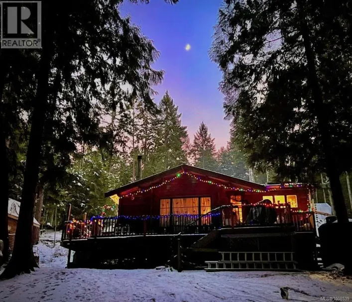 Beautiful Cedar Panabode log cabin for sale on Gulf Island, originally built in 1962 and relocated to Mudge Island in 2000. Surrounded by Cedar, Fir, and Arbutus trees, this cozy retreat offers peace and privacy across from the ocean on a quiet, dead-end road. Large windows invite views of