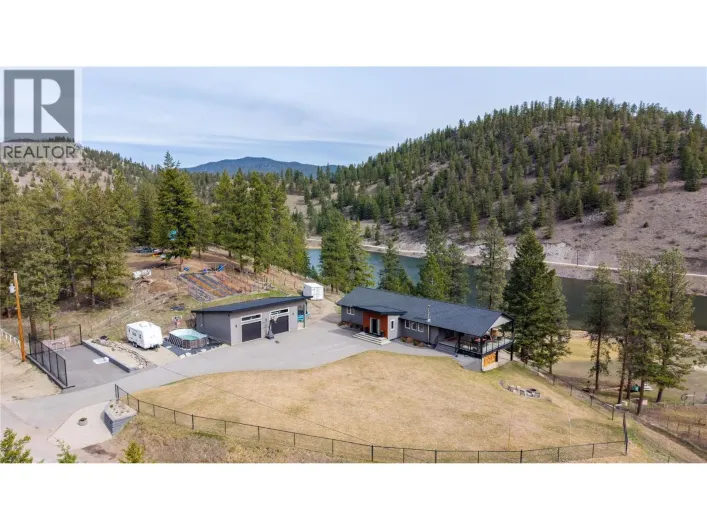 Rare 6.74-acre multi-residence property in Cherryville featuring two detached homes, a 2,700+ sq ft heated shop, private office/cabin, swimming pool, and a separate riverfront parcel along the Shuswap River. Extensively renovated in 2022, the main home offers 5 bedrooms and 3 bathrooms with