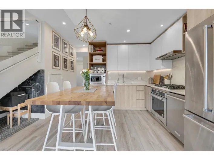 Experience elevated living at The One in the heart of Olympic Village. This exceptional 1 Bed + Den, 2 Bath, corner unit walk-up townhome blends style and comfort with air conditioning, quartz countertops, gas cooktop, and premium Fisher & Paykel/Bosch appliances. Floor-to-ceiling windows