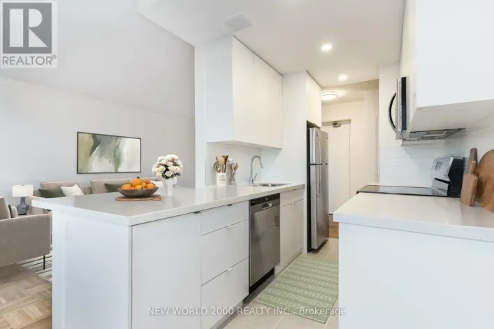 Don Mills/Lawrence Welcome to Unit 417 at Rodeo Drive Condos, 50 O"Neil Road - a bright and spacious northwest-facing comer suite in the heart of the Shops at Don Mills. Offering approx. 881 sq. ft., this functional 2-bedroom layout features an open-concept kitchen, dining, and living area