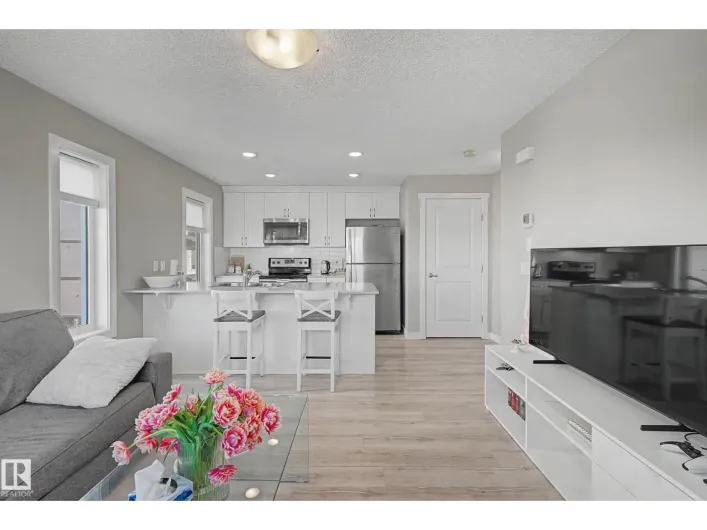 Welcome to 17751 95 Street a stylish, MOVE IN READY townhome offering modern finishes and everyday comfort. The bright open concept main floor features new wide-plank flooring, a RENOVATED KITCHEN with white cabinetry, stainless steel appliances, QUARTZ countertops and a contemporary backsplash,