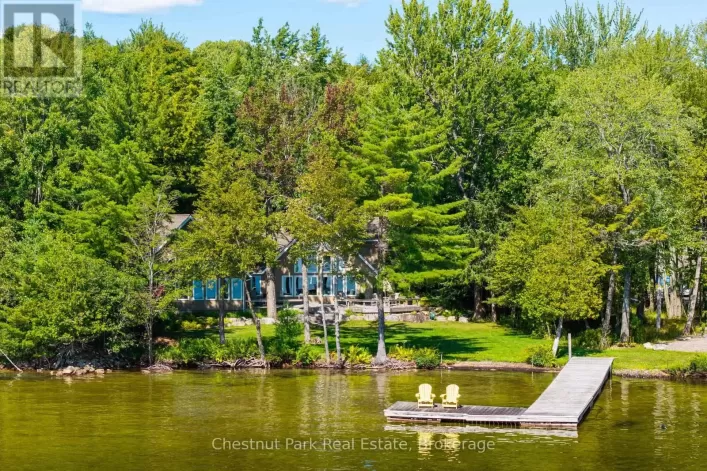 Cross Streets: Hardies Road x Hurdville Road. ** Directions: Hwy 400 to Hwy 124 to Hurdville to Hardies. CUSTOM BUILT 4 SEASON COTTAGE on LAKE MANITOUWABING! 293 ft of easy access shoreline, Natural sand beach area, 2.47 ACRES of PRIVACY! Designed for the Discriminating Buyer! Approx 3800 sq