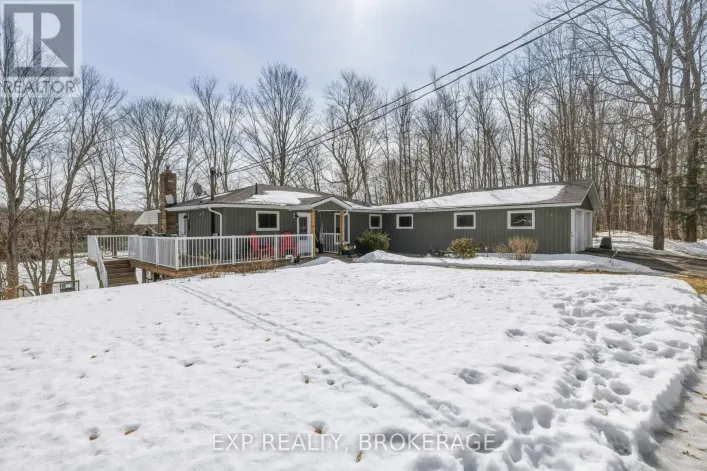 Marble Point Rd/Hwy 7 Set in a highly sought-after waterfront community on Crowe Lake, this 2-bedroom, 1-bath property offers a unique opportunity for those seeking all-season living or a weekend escape. With its warm wood exterior and functional bi-level layout, the home features an open-concept