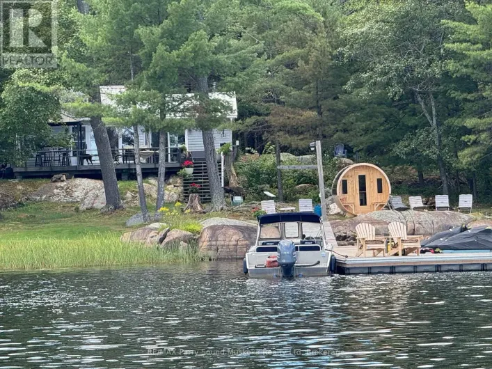 Cross Streets: BOAT ACCESS ONLY. ** Directions: BY BOAT from Honey Harbour Marina's to to Meta Bay to #18588. This south facing, 2 building compound sits on 1.23 acres of crystal-clear, deep water frontage that will make your friends and family slightly envious of your morning coffee views.The