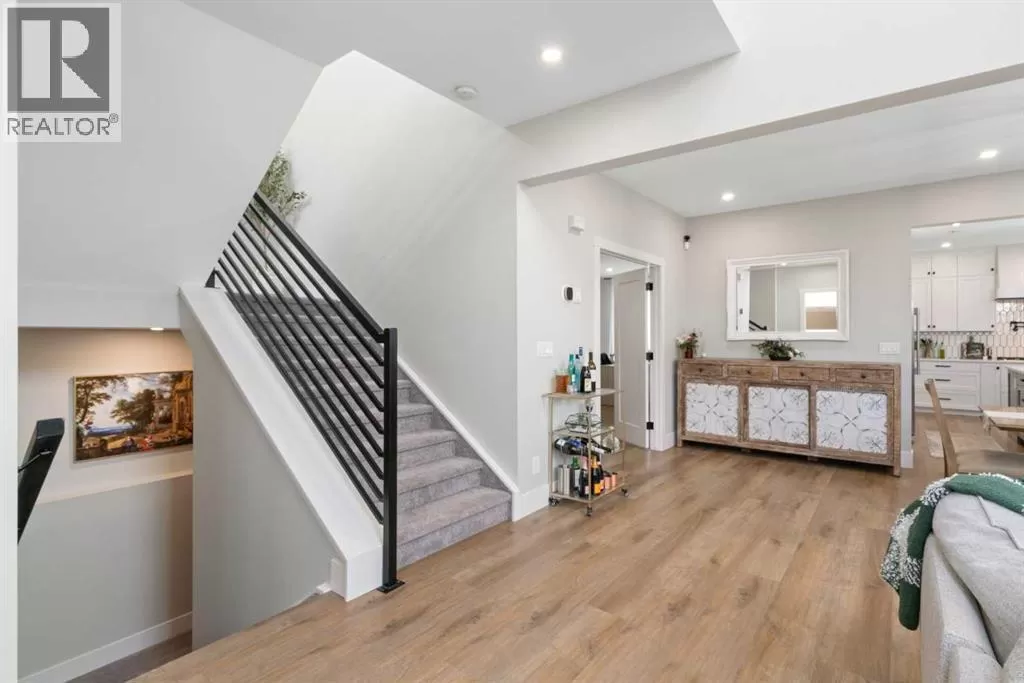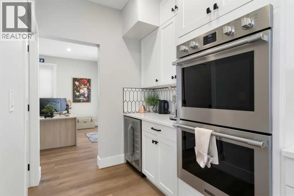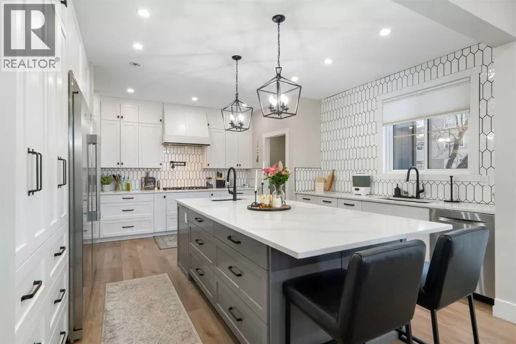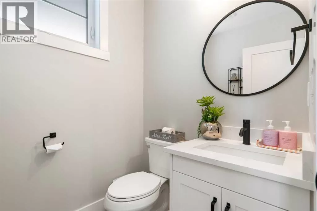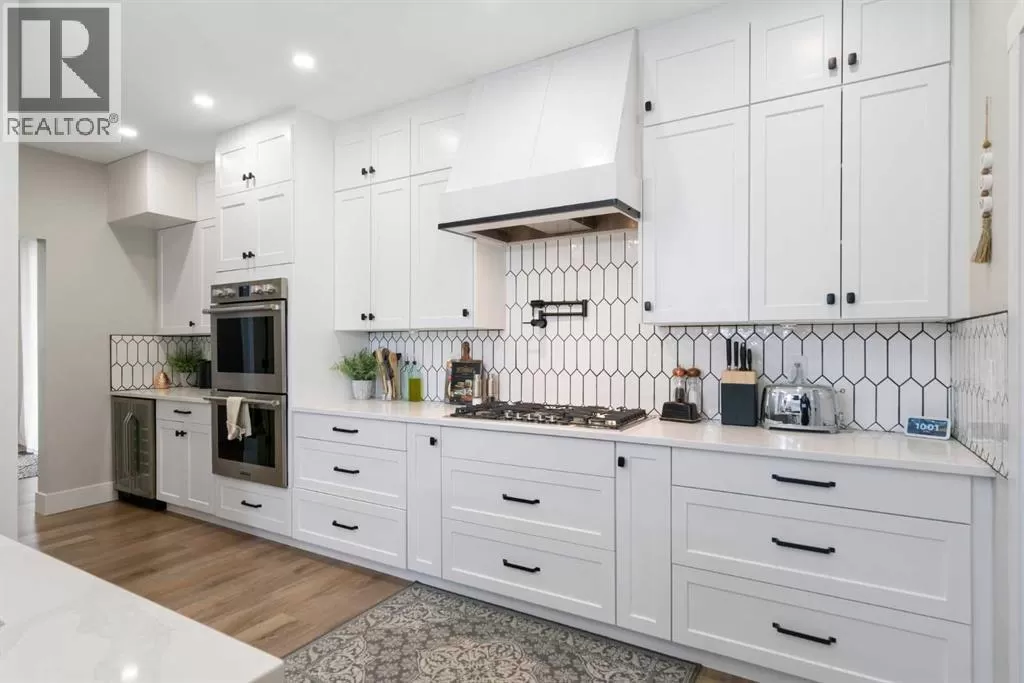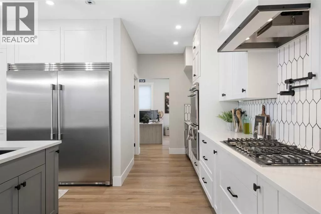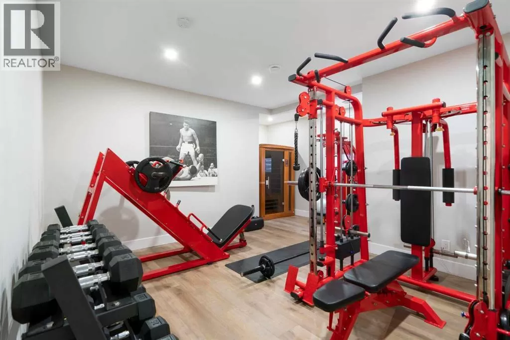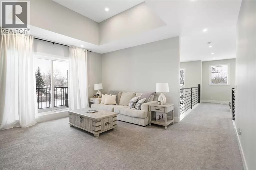 Welcome to this architectural masterpiece by Studio Wolf Designs in one of Airdrieâs most sought-after locations - The Village. This nearly new modern ranch-style estate offers an unparalleled blend of luxury, design, and functionality. Situated on an expansive 6,490 sq. ft. CORNER LOT, this home spans 3,704 sq. ft. above grade plus a fully developed 1,612 sq. ft. basement, bringing the total living space to over 5,300 sq. ft. As you enter, be captivated by 18-foot soaring ceilings in the foyer and living room, complemented by a custom-designed fireplace and surround. The gourmet kitchen is a chefâs dream with premium appliances featuring a full side-by-side freezer and refrigerator, cooled beverage centre, built-in gas cooktop, dual built-in convection and conventional ovens. Two kitchen sinks make dishes a breeze, while keeping the island sink free of clutter for your family and guestâs comfort. The oversized walk-in pantry and high-end finishes elevate this kitchen to its ultimate potential. The main floor also offers a private office/den area, flex room with courtyard access, 2-piece bathroom, and spacious mudroom leading to an oversized double attached garage with custom epoxy flooring. Upstairs, an open rail gallery provides a panoramic view of the main floor and vaulted ceilings. The upper level is designed for both comfort and sophistication, boasting 4 spacious bedrooms, including a large primary bedroom with a spa-like ensuite featuring a custom glass shower, freestanding bathtub, dual vanities, and a large walk-in closet with built-in storage. Two bedrooms share a Jack-and-Jill ensuite, while the fourth bedroom enjoys its own private 4-piece bathroom. A good size laundry room with built-in sink and folding area, and a bonus room with a covered balcony and quiet sitting area complete the upper level. The fully developed basement is an entertainerâs dream - offering a spacious recreation room, bar area, 3-piece bathroom, fifth bedroom, and sixth bedroom-tu rned-gym with sauna. Step outside to your private backyard retreat featuring new fencing and professional landscaping. This smart home is fully equipped with premium security and technology, including a full-perimeter surveillance system with 2TB storage, 12MM smash-proof window film & tint for added privacy, and custom exterior GEM lighting. Additional upgrades include two AC units and custom window coverings throughout. Nestled within walking distance to Airdrieâs downtown core, top-rated restaurants, shops, Jensen Park, Plainsmen Arena, and the Airdrie Farmers Market, with quick access to Highway 2, this residence offers the perfect blend of luxury and convenience. Experience the finest in modern ranch-style livingâthis exceptional estate is one of Airdrieâs most coveted opportunities. (id:27476)