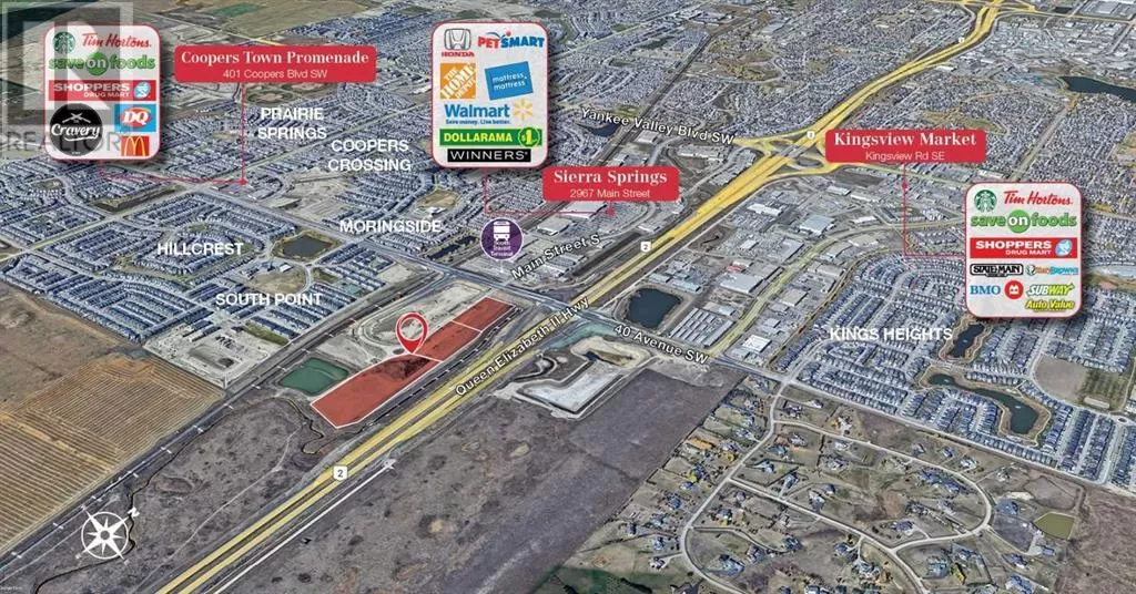 Click listing brochure for more information** Commercial Development Land. Various lot sizes are available from 5.11 to 21.30 Acres. Located within South Point Village in the vibrant, rapidly growing city of Airdrie, AB, this master-planned commercial district offers a prime opportunity for commercial development. Strategically positioned between Queen Elizabeth II Highway and the South Point residential community, these lots offer excellent visibility and accessibility.Airdrie, AB is experiencing significant economic growth, with rising property values and expanding business opportunities. Key advantages include: No business tax and low property taxes; Strong demand for commercial space driven by population growth; and Strong support from local government and community for commercial development projects. (id:27476)