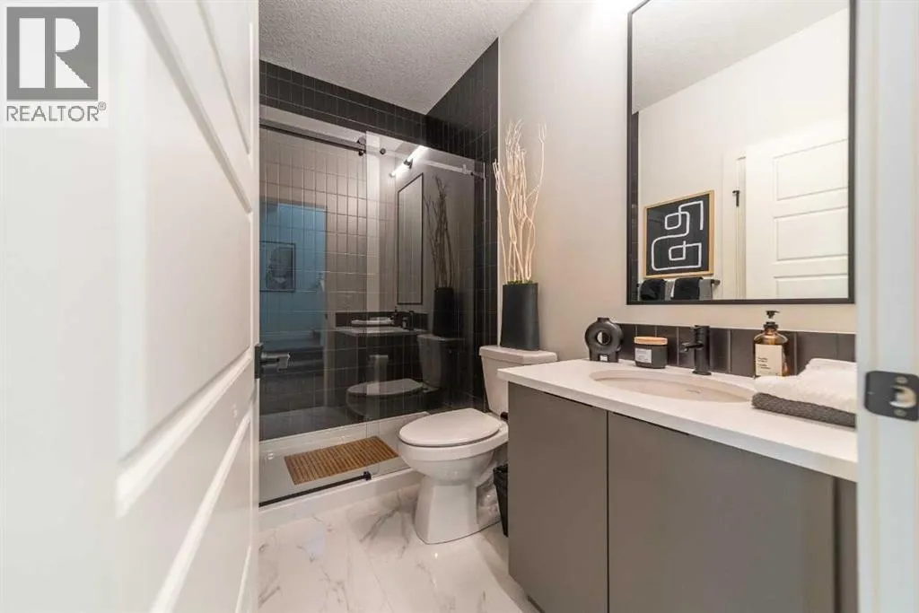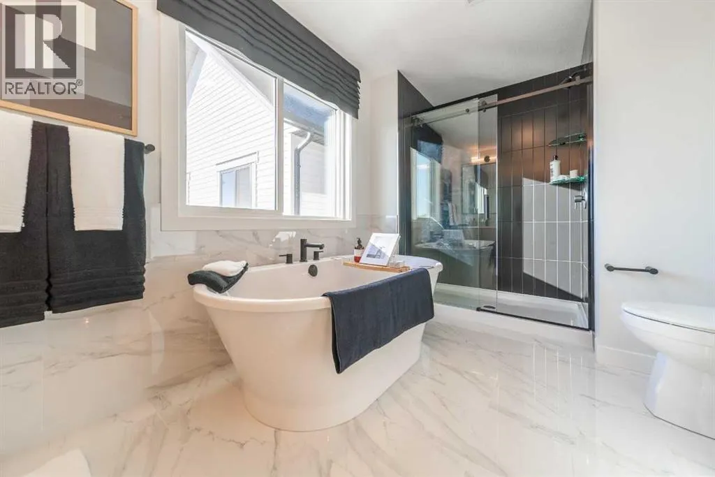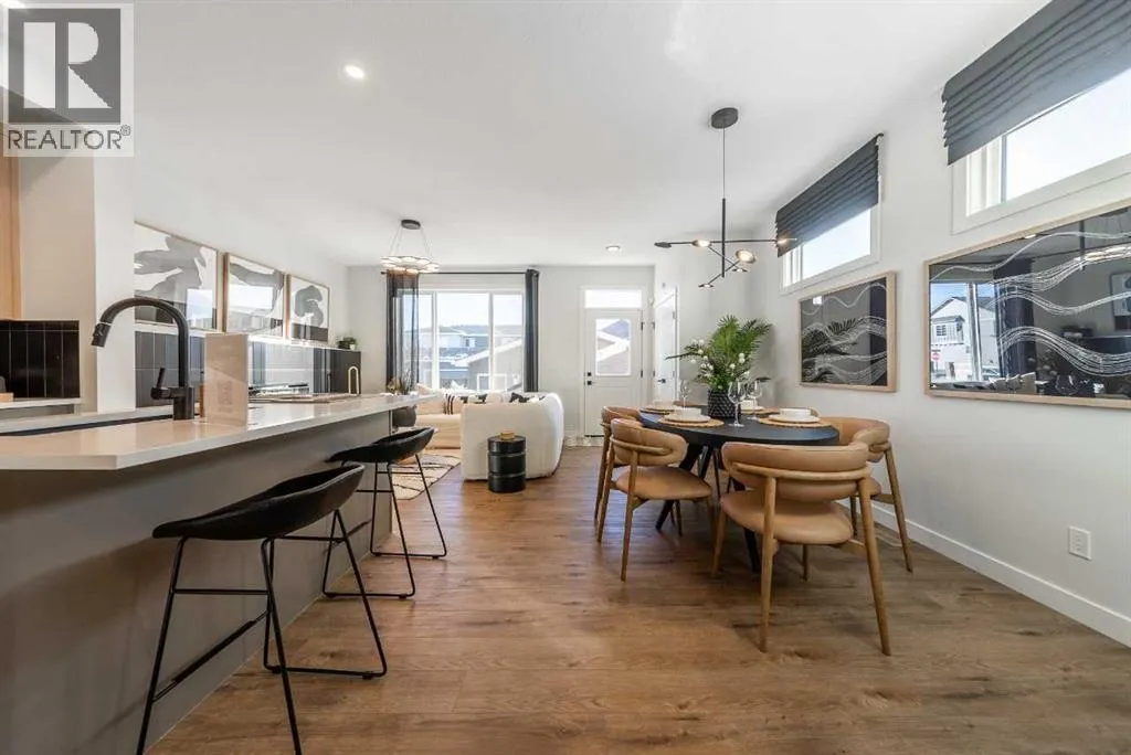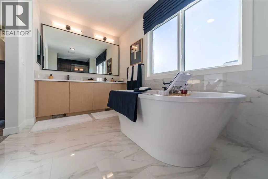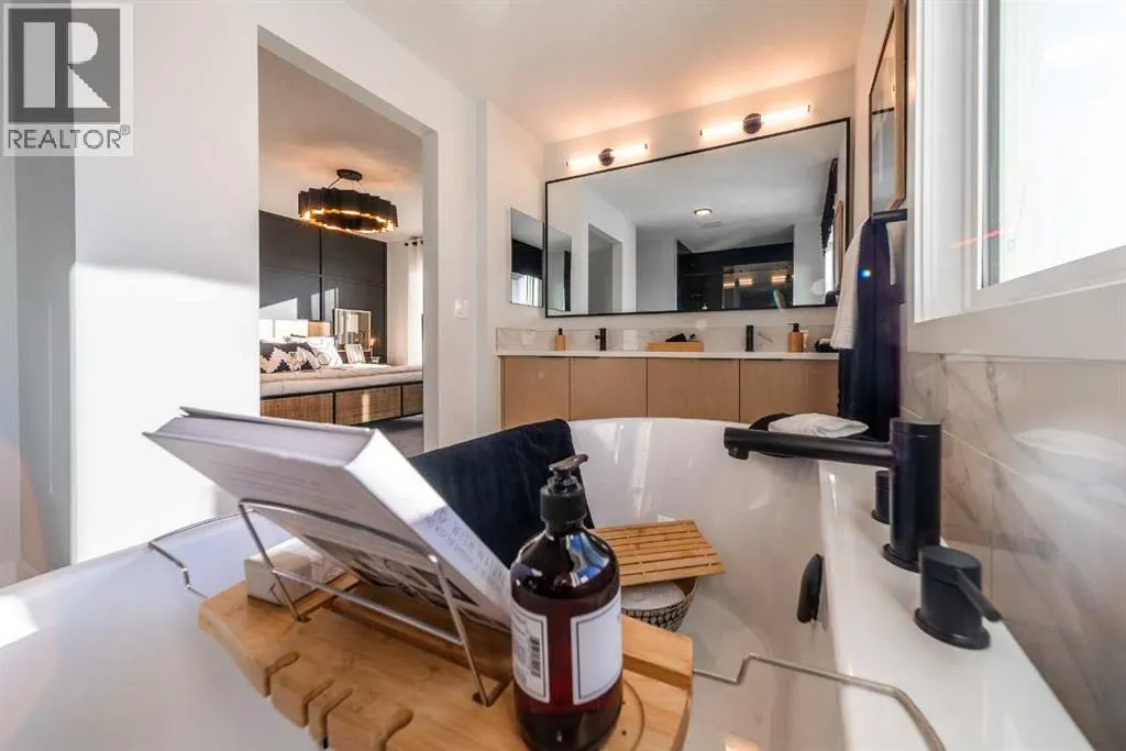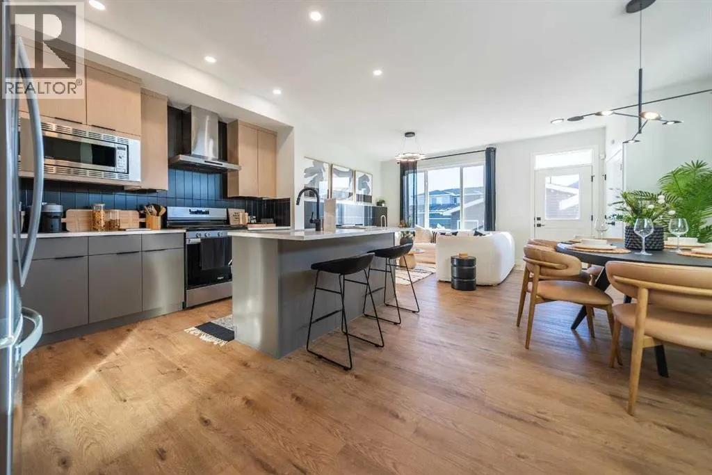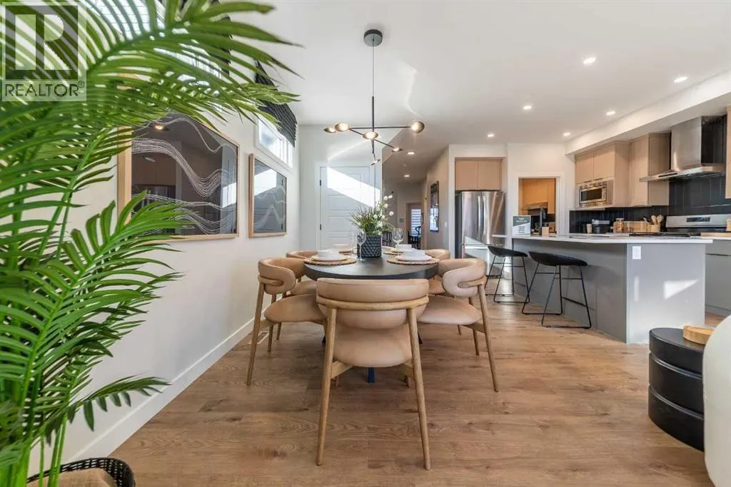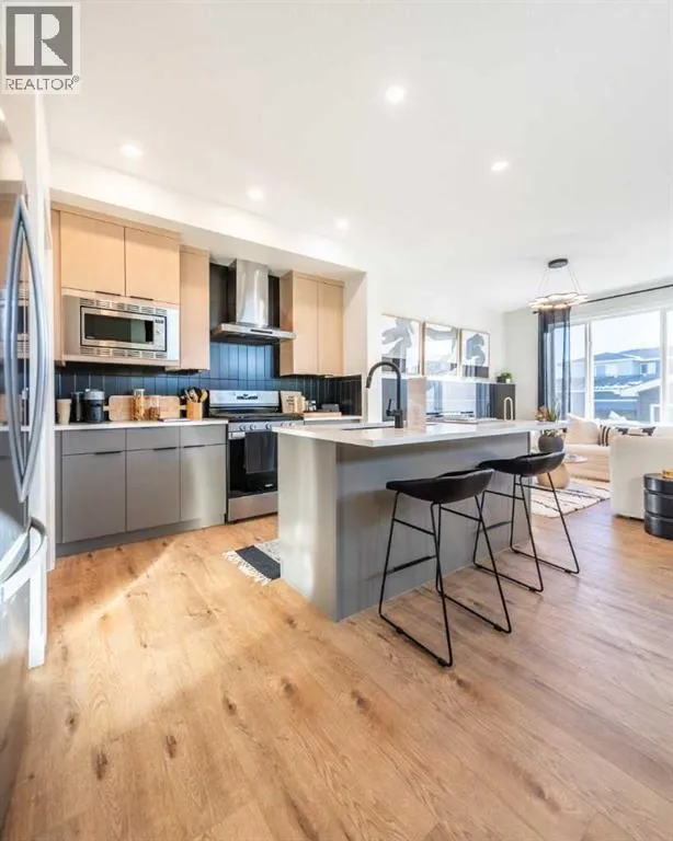 Introducing the Jade â a stunning laned home with incredible upgrades throughout! Built by a trusted builder with over 70 years of experience, this home showcases on-trend, designer-curated interior selections tailored for a custom feel. Featuring a full suite of smart home technology, this home includes a programmable thermostat, ring camera doorbell, smart front door lock, smart and motion-activated switchesâall seamlessly controlled via an Amazon Alexa touchscreen hub. This spacious home features a main floor bedroom and full bath. The chef-inspired kitchen boasts stainless steel appliances, a chimney hood fan, and a spice kitchen with a gas range. Stainless Steel Washer and Dryer and Open Roller Blinds provided by Sterling Homes Calgary at no extra cost! $2,500 landscaping credit is also provided by Sterling Homes Calgary. Quartz countertops with undermount sinks flow throughout, paired with durable LVP on the main floor and tile in all bathrooms. The great room is highlighted by an electric fireplace with floor-to-ceiling tile, adding elegance to the space. Upstairs, the vaulted ceiling in the bonus room with a skylight brings in abundant natural light. The luxurious 5-piece ensuite includes dual sinks, a standalone tub, a shower with tiled walls, and a large window. A walk-in closet in the primary bedroom and a bank of drawers in both upper floor bathrooms provide extra storage. With additional windows and thoughtful design, the Jade is the perfect blend of luxury and function! Plus, your move will be stress-free with a concierge service provided by Sterling Homes Calgary that handles all your moving essentialsâeven providing boxes! Photos are a representative. (id:27476)