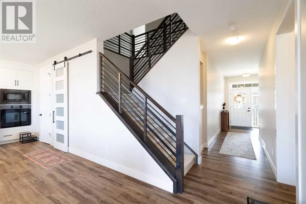 Welcome to your dream home in Southwinds, Airdrie! This brand-new 5-bedroom, 3.5-bathroom home sits on an oversized pie-shaped lot that backs directly onto a walking path and playgroundâan unbeatable location for families and outdoor enthusiasts.With over $115,000 worth of upgrades inside, youâll love the open-concept layout with luxury vinyl plank flooring, a main-floor bedroom with full bath, and a modern kitchen featuring high-end stainless steel appliances, sleek cabinetry, and a large island with breakfast bar. The spacious dining area flows seamlessly into the living spaceâperfect for hosting and everyday living.Upstairs offers a versatile bonus room, a luxurious primary suite with walk-in closet and spa-inspired ensuite, plus three additional bedrooms and another full bathâideal for large or multi-generational families.The unfinished basement with a separate entrance awaits your personal touchâcreate the perfect rec room, home gym, or additional living space tailored to your needs, including 9 feet ceilings on each floor.Enjoy direct access to green space from your expansive backyardâideal for kids, pets, and peaceful evening strolls. This home offers the perfect blend of style, space, and location in one of Airdrieâs most desirable communities.Donât miss this rare opportunityâbook your showing today! (id:27476)