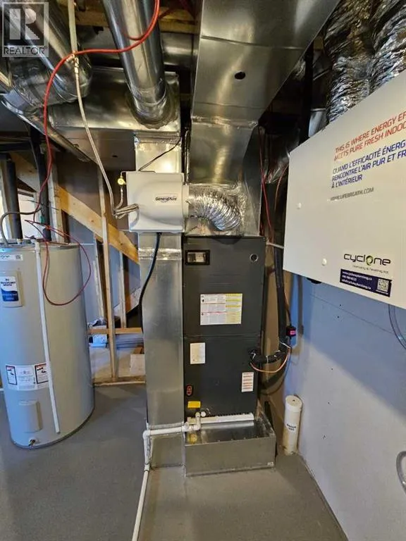 NET-Energuide ZERO Home in Airdrie's Bayside Estates, now for sale. This 2313 ft2 two story home is loaded with energy efficiency essentials, and rear attached garage. Blower Door Tested at just 0.74 Air Changes/Hour! 2" Rigid foam insulation from footing to the floor above on the foundation wall, 2x6" basement walls with R-22 batt insulation. Spray foam insulation under the concrete basement floor, and 2.0lb in between all joist ends. All walls above grade are double 2x4" walls, almost 9" thick of insulation! Attic insulation is R-60, with high heel trusses, to get that insulating value right out over the walls. Low flow plumbing ensure the least amount of water use possible. 200Amp panel with EV rough-in. 9.48KW, 24 Solar Panels generating power to the grid, and lessening the amount of power required from the grid. Two Electric furnaces controlled by two Amana Smart Thermostats attached to two separate heat pumps, and Heat Recovery ventilator. Great location, great home, low energy use. Seller may consider a rent to own. (id:27476)