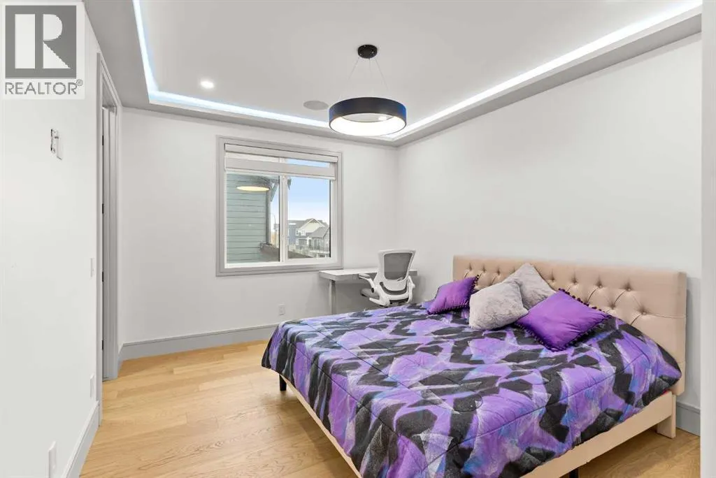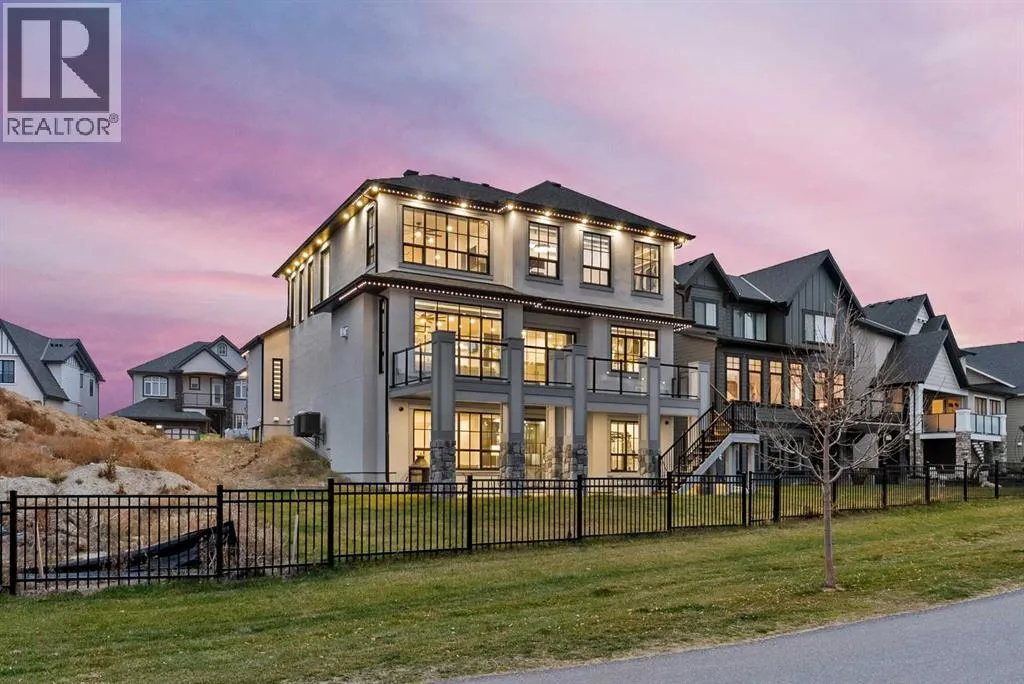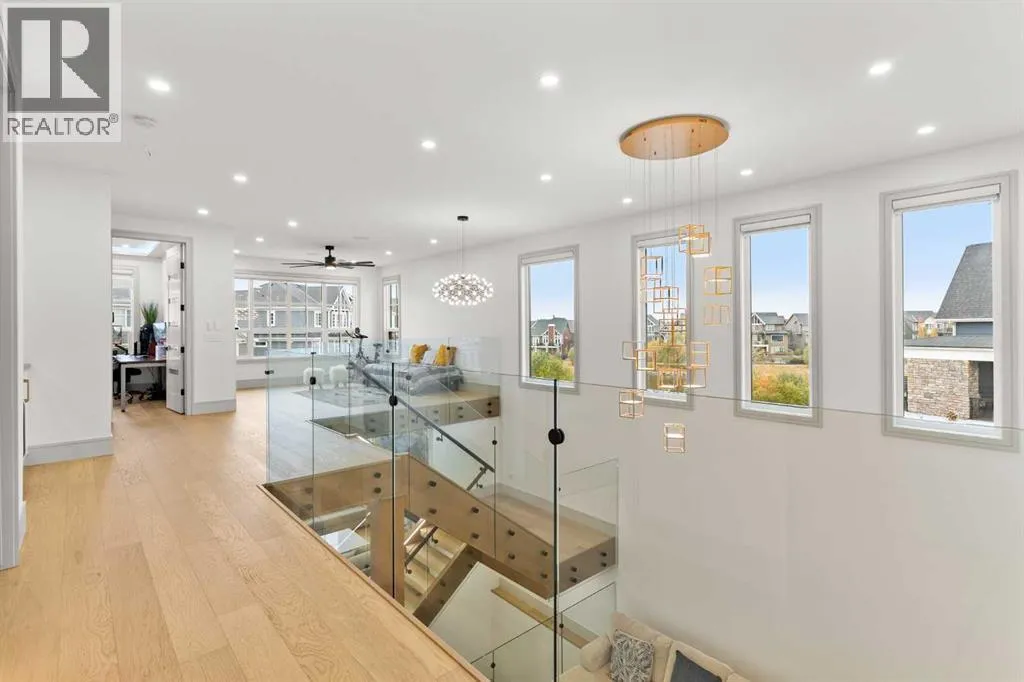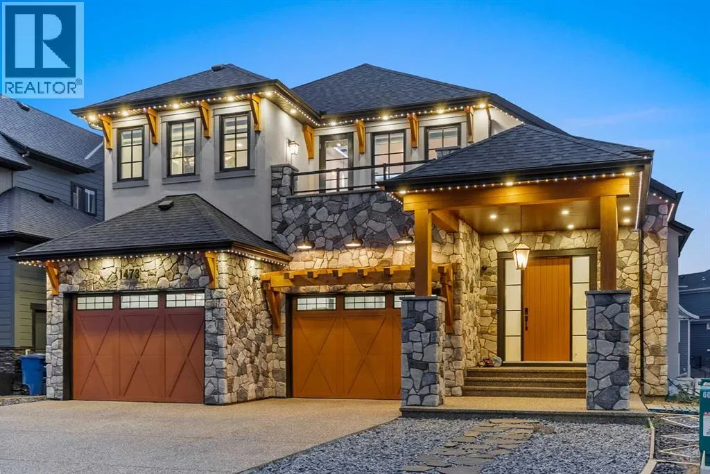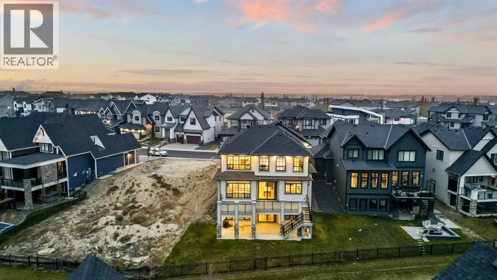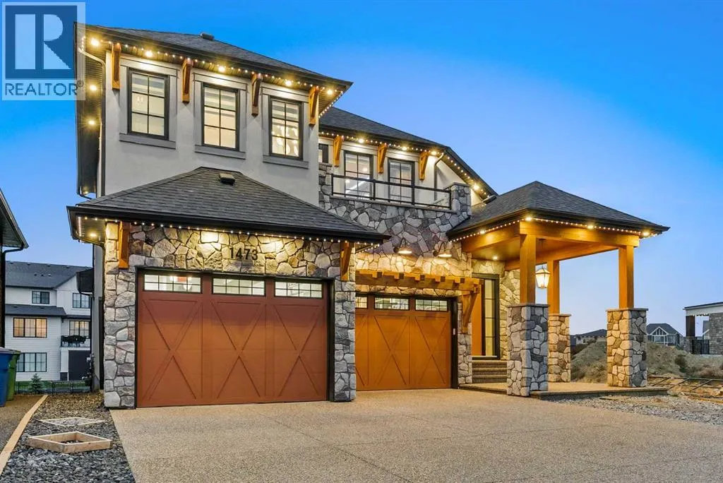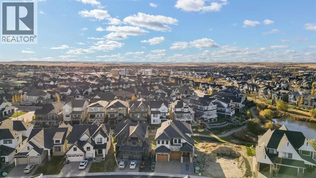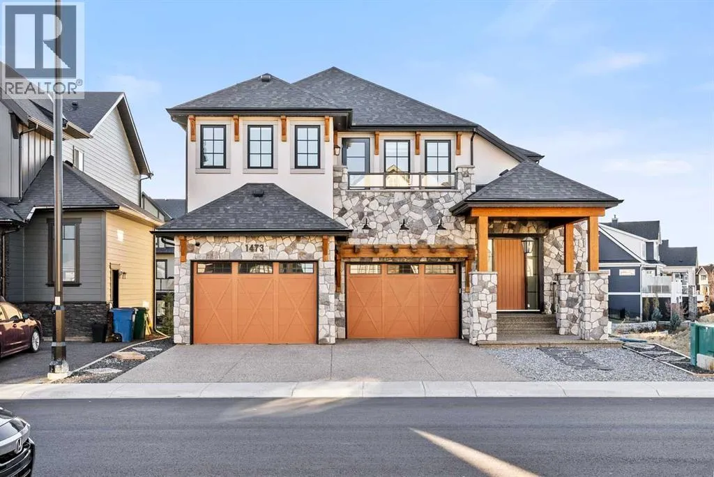 Welcome to 1473 Coopers Landing SW, an extraordinary residence backing onto a serene pond and pathway. This architectural gem boasts a total of impressive 5,528 square feet of thoughtfully designed living space, exemplifying the height of luxury. As you enter, youâre greeted by grand 10' ceilings on the main floor, featuring a sleek, modern flat paint finish. The main level flows seamlessly, including a Living Room, Formal Dining Room, Den/Office, Family Room, Nook, Main Kitchen, Spice Kitchen or Butlerâs Kitchen, and a Full Bath with a custom shower. A large low maintenance deck with plexiglass railings and stairs leading down to the backyard off the kitchen nook overlooks the numerous pathways and greenery that is a beautiful feature in Coopers Crossing. Daily life is made effortless with a convenient Mud Room and direct access to the garage. Ascending to the second floor on a one of a kind set of stairs, youâll find 9' ceilings and a versatile bonus room, ideal for a media space or home office. Four spacious bedrooms await, each with its own bathroom and walk-in closet. The luxurious custom ceiling perimeter with RGB LED lighting adds a touch of elegance. Donât overlook the intriguing Unfinished Hidden Room, a perfect canvas for your creative vision.The basement is an entertainer's dream, featuring a Rec Room, Nook, Gym, Wet Bar, and two additional bedrooms with their own full baths. A second laundry area adds to the convenience, ensuring that every need is met.Craftsmanship is unparalleled throughout, highlighted by upgraded plumbing fixtures from MOEN ALIGN in a beautiful brushed gold finish. A robust boiler system provides continuous hot water, complemented by in-floor heating in the basement(2 zones) and a hot water circulation pump for instant access at every faucet.The oversized triple tandem garage is thoughtfully roughed in for a gas heater and car charger, with hot and cold water facilities for added convenience. Outdoor elegance shines through with custom timber sourced from Revelstoke, BC, featuring a stunning timber-framed front porch and PARGOLA above the garage. The beautifully landscaped grounds include an exposed aggregate driveway, porch patio, and entry stairs.Technology is seamlessly integrated, featuring a wired security system, cameras, LCD screens, Eufy Smart Lock, dual-camera doorbell, and a speaker system throughout the home, ensuring security and entertainment are paramount.Experience warmth and sophistication with the 120â Electric Fireplace in the basement, the contemporary 60â Linear Gas Fireplace on the main floor, and the serene 72â Electric Fireplace in the bonus room. Every detail of this home reflects a commitment to comfort and luxury.Donât miss the chance to experience the epitome of luxury living in Coopers Crossing in Airdrie. Too many upgrades to list!!!. Schedule your private viewing todayâthis isnât just a house; itâs an extraordinary lifestyle. (id:27476)