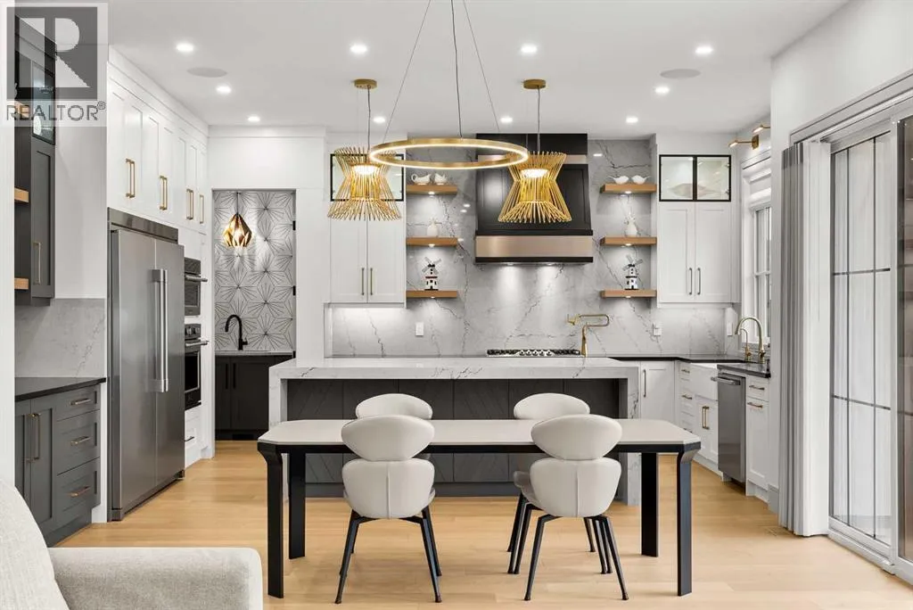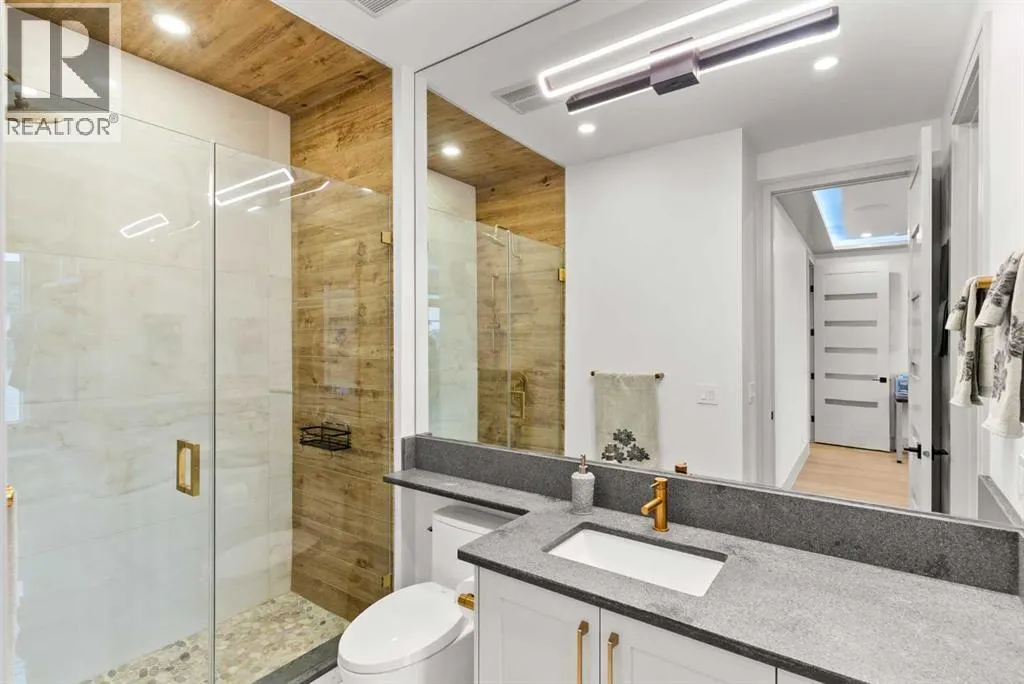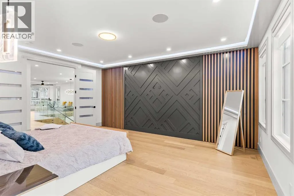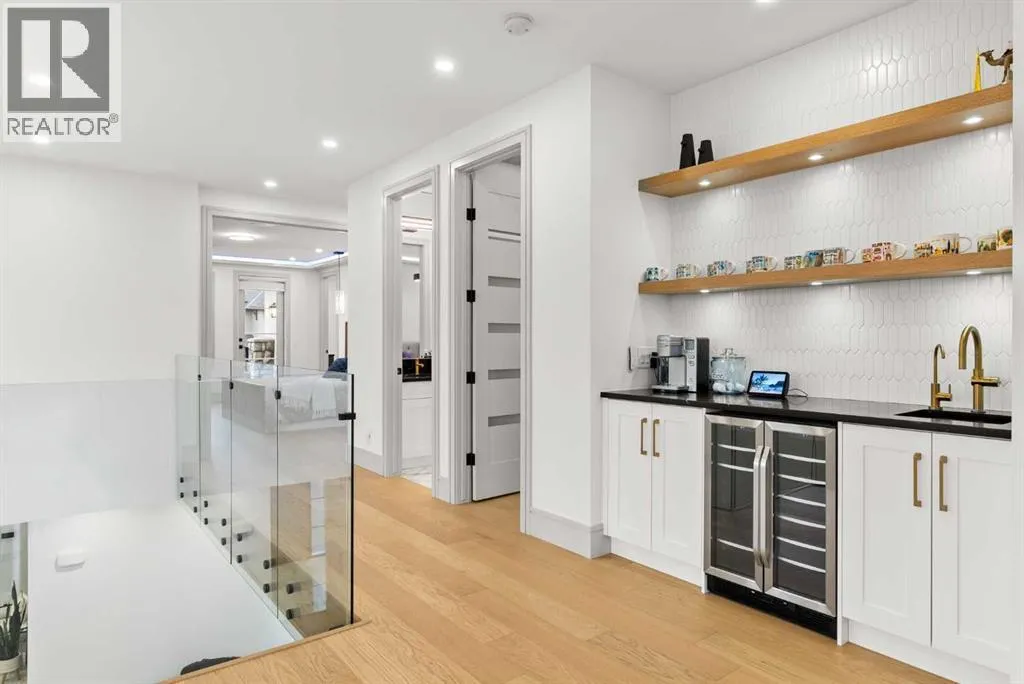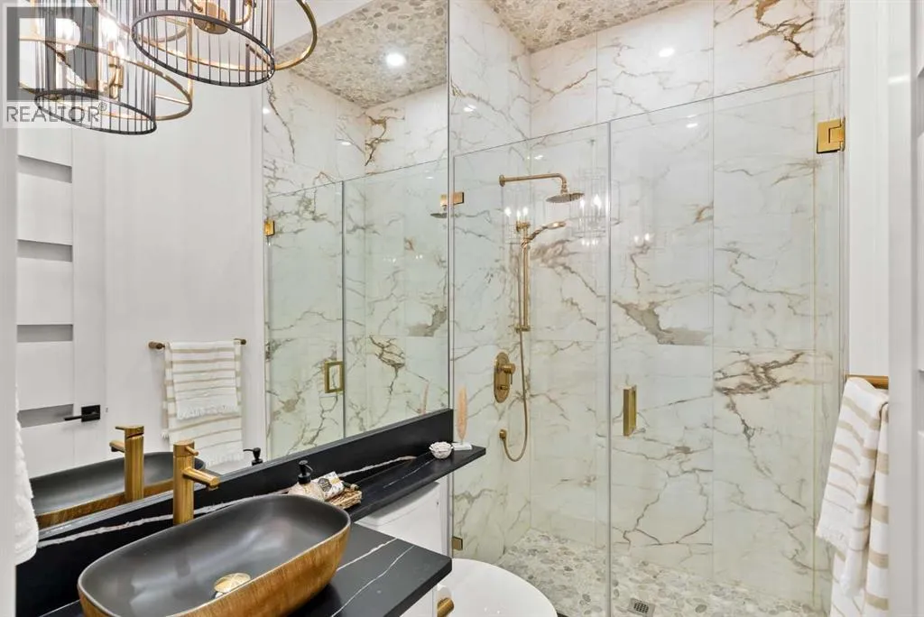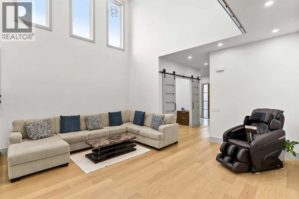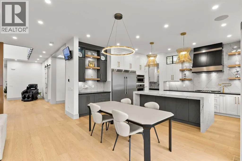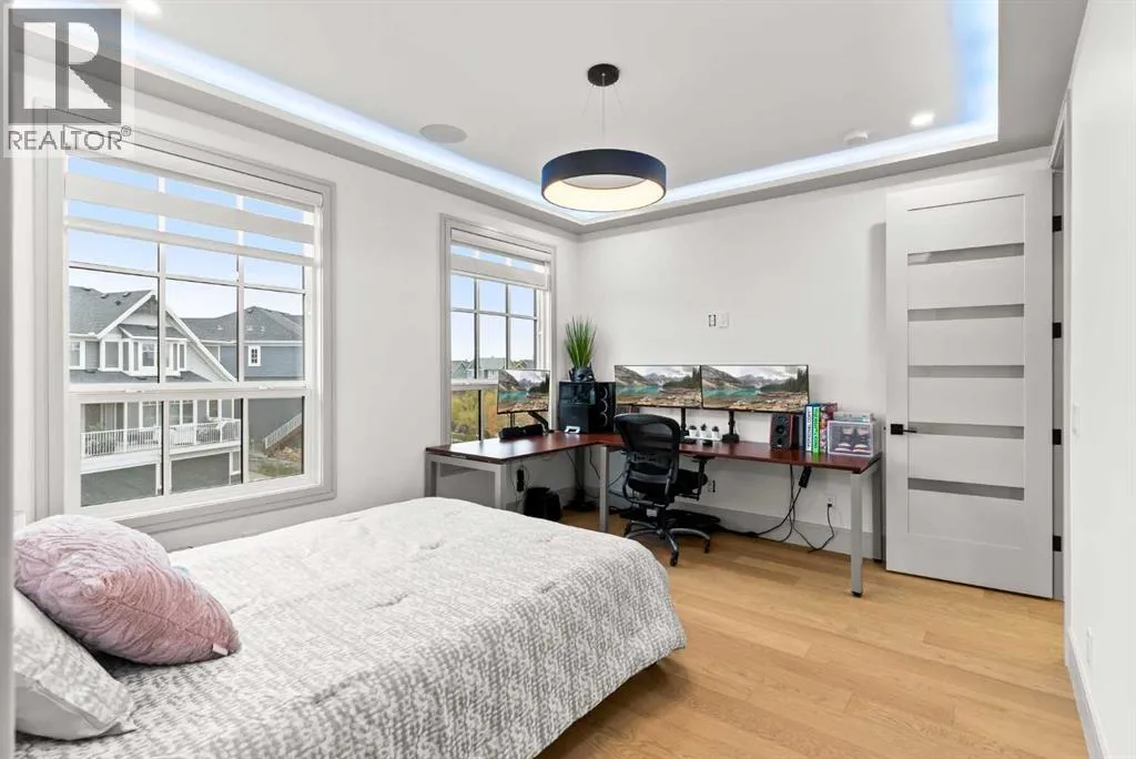 Welcome to 1473 Coopers Landing SW, an extraordinary residence backing onto a serene pond and pathway. This architectural gem boasts a total of impressive 5,528 square feet of thoughtfully designed living space, exemplifying the height of luxury. As you enter, youâre greeted by grand 10' ceilings on the main floor, featuring a sleek, modern flat paint finish. The main level flows seamlessly, including a Living Room, Formal Dining Room, Den/Office, Family Room, Nook, Main Kitchen, Spice Kitchen or Butlerâs Kitchen, and a Full Bath with a custom shower. A large low maintenance deck with plexiglass railings and stairs leading down to the backyard off the kitchen nook overlooks the numerous pathways and greenery that is a beautiful feature in Coopers Crossing. Daily life is made effortless with a convenient Mud Room and direct access to the garage. Ascending to the second floor on a one of a kind set of stairs, youâll find 9' ceilings and a versatile bonus room, ideal for a media space or home office. Four spacious bedrooms await, each with its own bathroom and walk-in closet. The luxurious custom ceiling perimeter with RGB LED lighting adds a touch of elegance. Donât overlook the intriguing Unfinished Hidden Room, a perfect canvas for your creative vision.The basement is an entertainer's dream, featuring a Rec Room, Nook, Gym, Wet Bar, and two additional bedrooms with their own full baths. A second laundry area adds to the convenience, ensuring that every need is met.Craftsmanship is unparalleled throughout, highlighted by upgraded plumbing fixtures from MOEN ALIGN in a beautiful brushed gold finish. A robust boiler system provides continuous hot water, complemented by in-floor heating in the basement(2 zones) and a hot water circulation pump for instant access at every faucet.The oversized triple tandem garage is thoughtfully roughed in for a gas heater and car charger, with hot and cold water facilities for added convenience. Outdoor elegance shines through with custom timber sourced from Revelstoke, BC, featuring a stunning timber-framed front porch and PARGOLA above the garage. The beautifully landscaped grounds include an exposed aggregate driveway, porch patio, and entry stairs.Technology is seamlessly integrated, featuring a wired security system, cameras, LCD screens, Eufy Smart Lock, dual-camera doorbell, and a speaker system throughout the home, ensuring security and entertainment are paramount.Experience warmth and sophistication with the 120â Electric Fireplace in the basement, the contemporary 60â Linear Gas Fireplace on the main floor, and the serene 72â Electric Fireplace in the bonus room. Every detail of this home reflects a commitment to comfort and luxury.Donât miss the chance to experience the epitome of luxury living in Coopers Crossing in Airdrie. Too many upgrades to list!!!. Schedule your private viewing todayâthis isnât just a house; itâs an extraordinary lifestyle. (id:27476)