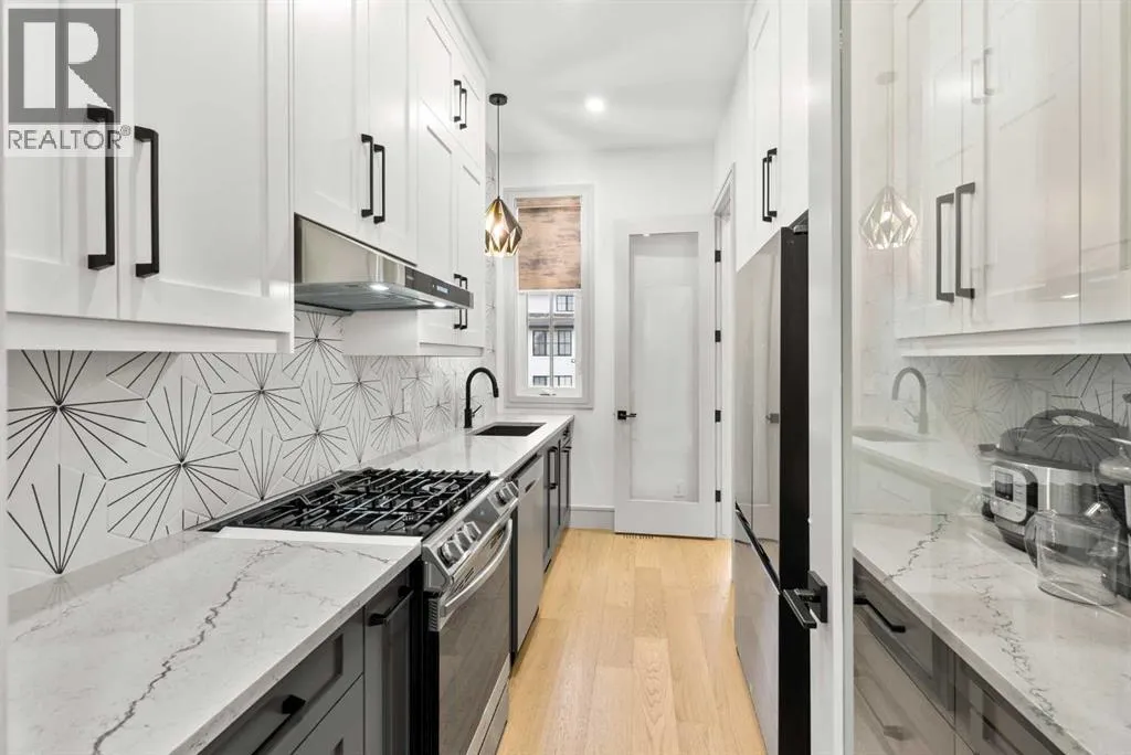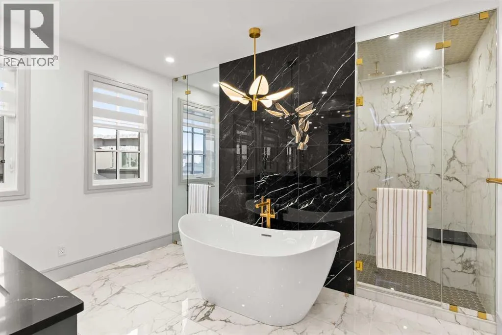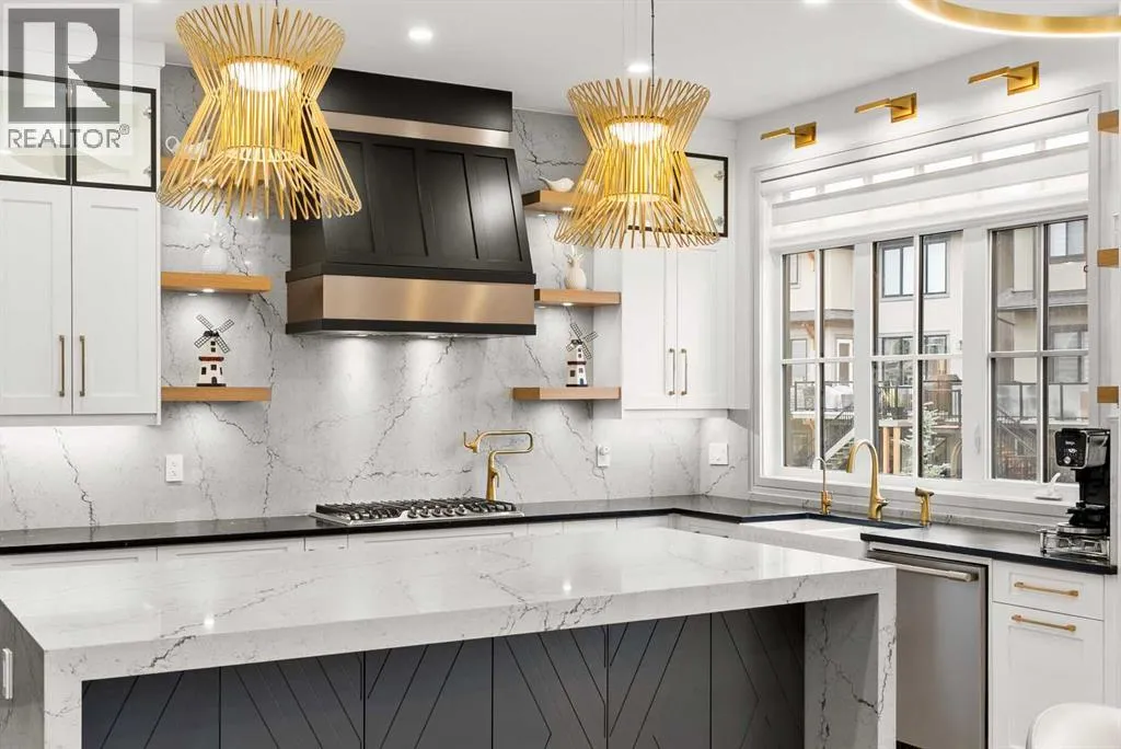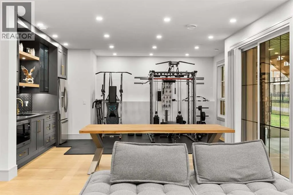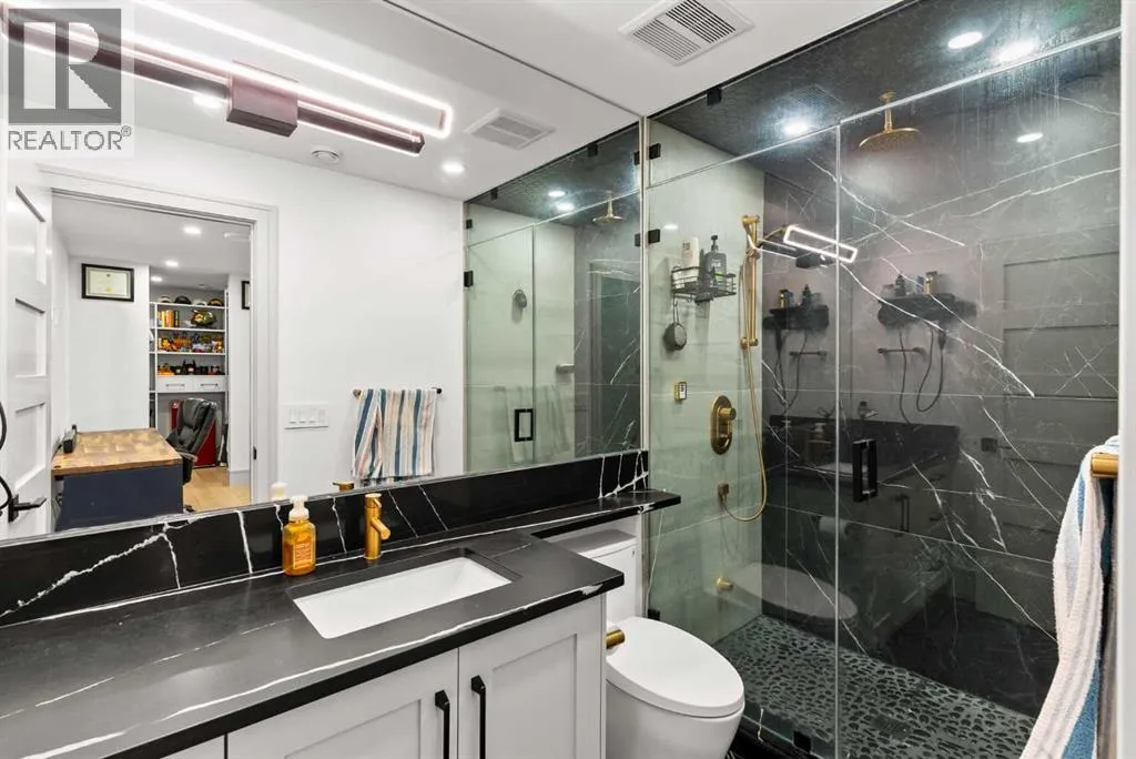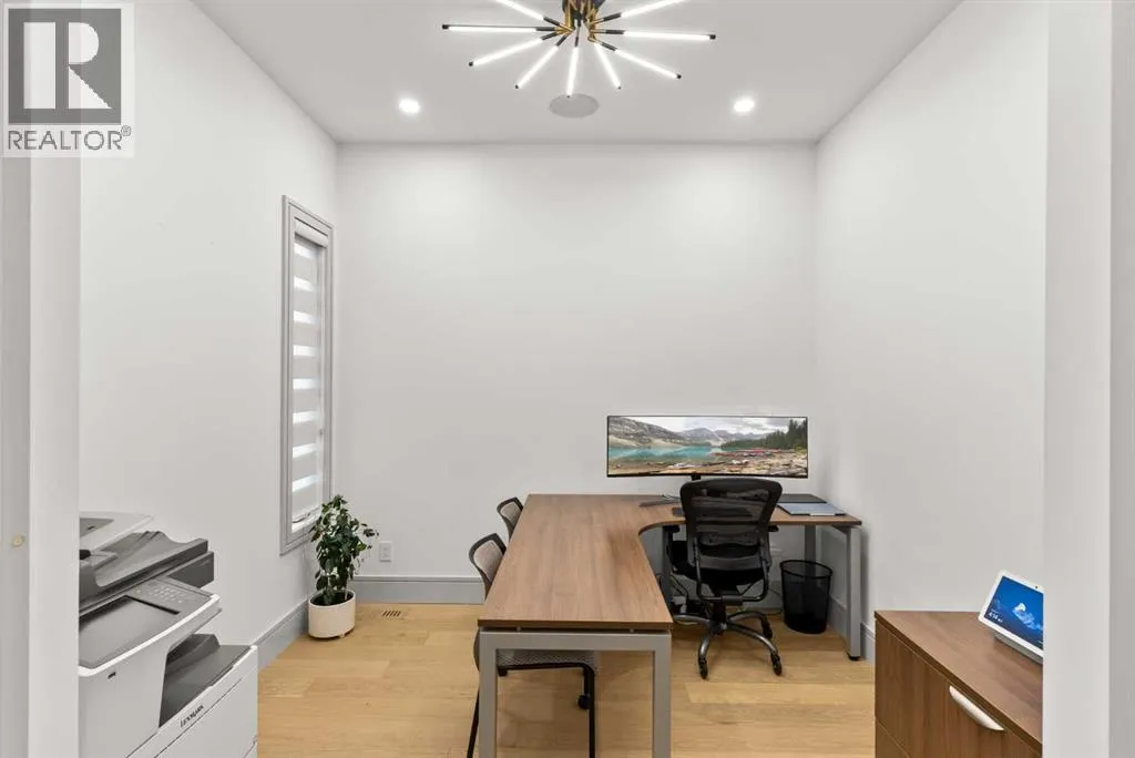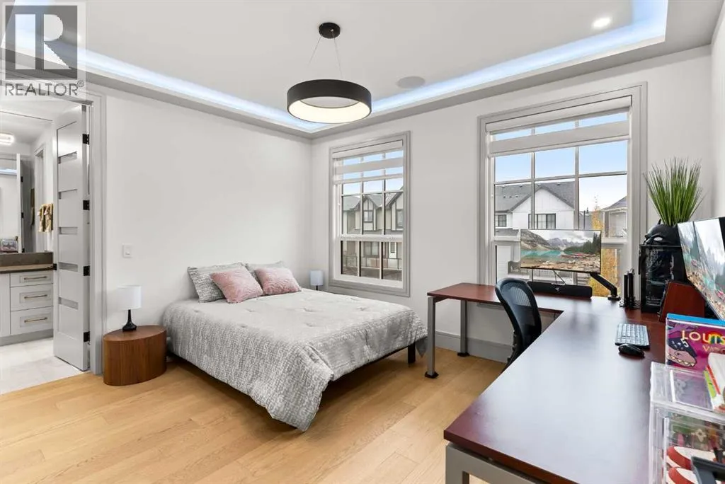 Welcome to 1473 Coopers Landing SW, an extraordinary residence backing onto a serene pond and pathway. This architectural gem boasts a total of impressive 5,528 square feet of thoughtfully designed living space, exemplifying the height of luxury. As you enter, youâre greeted by grand 10' ceilings on the main floor, featuring a sleek, modern flat paint finish. The main level flows seamlessly, including a Living Room, Formal Dining Room, Den/Office, Family Room, Nook, Main Kitchen, Spice Kitchen or Butlerâs Kitchen, and a Full Bath with a custom shower. A large low maintenance deck with plexiglass railings and stairs leading down to the backyard off the kitchen nook overlooks the numerous pathways and greenery that is a beautiful feature in Coopers Crossing. Daily life is made effortless with a convenient Mud Room and direct access to the garage. Ascending to the second floor on a one of a kind set of stairs, youâll find 9' ceilings and a versatile bonus room, ideal for a media space or home office. Four spacious bedrooms await, each with its own bathroom and walk-in closet. The luxurious custom ceiling perimeter with RGB LED lighting adds a touch of elegance. Donât overlook the intriguing Unfinished Hidden Room, a perfect canvas for your creative vision.The basement is an entertainer's dream, featuring a Rec Room, Nook, Gym, Wet Bar, and two additional bedrooms with their own full baths. A second laundry area adds to the convenience, ensuring that every need is met.Craftsmanship is unparalleled throughout, highlighted by upgraded plumbing fixtures from MOEN ALIGN in a beautiful brushed gold finish. A robust boiler system provides continuous hot water, complemented by in-floor heating in the basement(2 zones) and a hot water circulation pump for instant access at every faucet.The oversized triple tandem garage is thoughtfully roughed in for a gas heater and car charger, with hot and cold water facilities for added convenience. Outdoor elegance shines through with custom timber sourced from Revelstoke, BC, featuring a stunning timber-framed front porch and PARGOLA above the garage. The beautifully landscaped grounds include an exposed aggregate driveway, porch patio, and entry stairs.Technology is seamlessly integrated, featuring a wired security system, cameras, LCD screens, Eufy Smart Lock, dual-camera doorbell, and a speaker system throughout the home, ensuring security and entertainment are paramount.Experience warmth and sophistication with the 120â Electric Fireplace in the basement, the contemporary 60â Linear Gas Fireplace on the main floor, and the serene 72â Electric Fireplace in the bonus room. Every detail of this home reflects a commitment to comfort and luxury.Donât miss the chance to experience the epitome of luxury living in Coopers Crossing in Airdrie. Too many upgrades to list!!!. Schedule your private viewing todayâthis isnât just a house; itâs an extraordinary lifestyle. (id:27476)