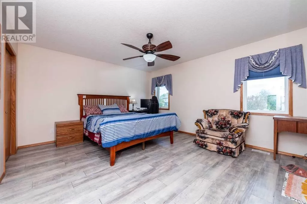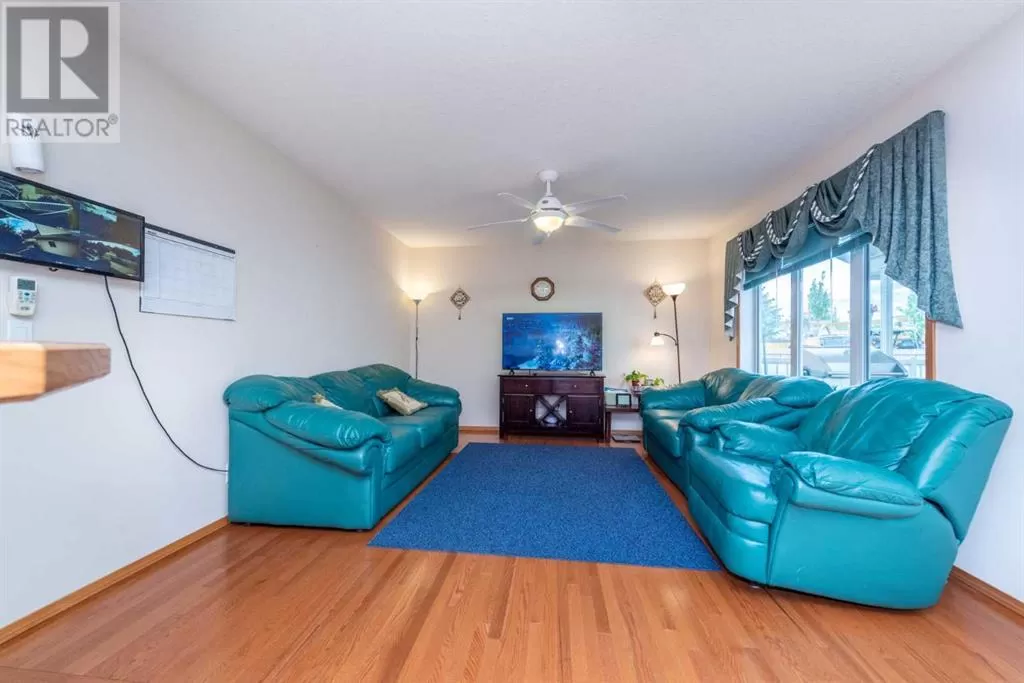 520 Tanner Drive SE Airdrie-Welcome home to the Community of Thorburn! WALK UP fully finished BASEMENT, with / PERMIT comes with SEPARATE ENTRANCE. Upstairs the beautiful BONUS ROOM comes with huge windows, corner fireplace & built in shelves ,vaulted ceiling Hardwood floors! This 2 Storey home has 4 BD, 4 Baths, South back yard. R40 insulation in walls sheeting on both sides Fire retardant ,knocked down ceilings. Den/office, pocket glass door, 2pc bathroom, storage room could be used for main floor laundry.Natural light from the large windows in the living room /kitchen/dining area. Kitchen has eating area, breakfast island 2 bar stools stay, lot's of Oak cupboards & wood work. Corner pantry with wood shelving, lots of pot drawers, extra counters & lots of cupboard space. Gleaming HARDWOOD floors and Vinyl plank flooring throughout the house, there is NO CARPET in this house. Covered Deck, BBQ hookup(BBQ stays)storage shed (has power) garden plots, Mature Landscaping and access to back lane. Upstairs Lg Primary bedroom, walk-in closet, closet organizers, 5pc ensuite sep / tub, shower, makeup area. The other 2 Large room have big closets. HUGE Oversized DOUBLE ATTACHED HEATED GARAGE 29x21 FITS A LONGBOX TRUCK, Back lane has access for a small RV parking, Stucco exterior, Security Cameras. House comes with A/C. Schools and Shopping close by. Close to EAST LAKE and lots of parks and pathways. Call to view today! (id:27476)