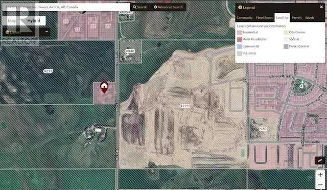 Excellent investment 4.64 Acres located in the fast growing city of Airdrie. Property is designated residential in an approved Community Area Structure Plan (CASP). The city wants multi family on the property with potential TOWNHOMES , APARTMENTS or possible MIXED USE. Close proximity to future High School and Rec Center to be constructed east of the property on Mattamy owned lands. House has an office on Main as well den and porch room ( not included in the main floor area measurement) not heated. Basement fully developed with 2 BR's 3 piece bath storage and large open lounging area with bar. Qualico currently adjacent to the property with Mattamy directly east on 24 St. currently being rough graded. (id:27476)