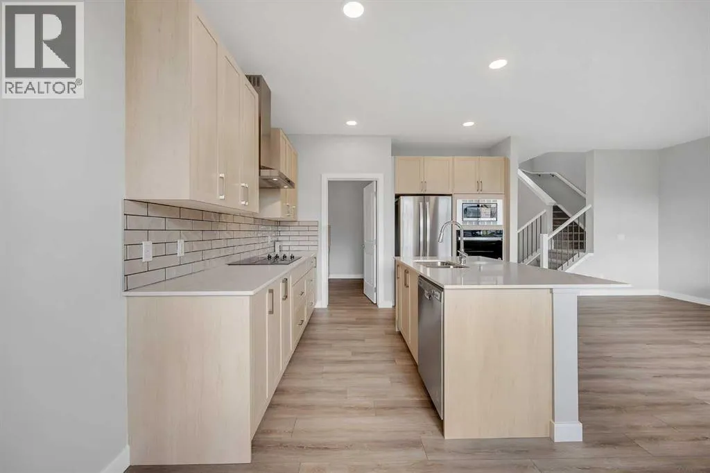 # Virtual Tour # 4 BED 3 FULL BATH | MAIN FLOOR BED ROOM,FULL BATH | SPICE KITCHEN | BACKING ONTO GREEN SPACE | SIDE ENTRANCE CONVENTIONAL LOT | Discover amazing value and the perfect blend of luxury and convenience in the sought-after community of Midtown. This 2 storey Solara model built by Shane Homes backs onto a green space and features 2,178 sq ft , 4 bedrooms, 3 full bathrooms, and an attached double garage. The open main floor features 9â ceilings throughout, a spacious kitchen with a central island providing seating for 3, stainless steel appliances and a spice kitchen with gas range; a breakfast nook with access to the west-facing backyard and deck with Bbq gas line ; a living room with an electric fireplace and floating wood hearth; a main floor bedroom which can be used as an office; 3 pc full bathroom with shower. The upper level which features a spacious primary bedroom with a walk-in closet, 5 pc ensuite with dual sinks, soaker tub, separate shower and toilet with door; 2 additional good-sized bedrooms both with walk-in closets; a central bonus room, a 4 pc main bathroom, and a separate laundry room with additional shelves for linen storage.Discover a world of possibilities with this spacious unfinished basement, offering a blank canvas ready for your personal touch. With clear 9-foot ceilings and a completely open layout free from posts or obstructions, this space allows for maximum design flexibility. Unlock the potential of this versatile area and transform it into the basement of your dreams. Situated in a prime location, this home provides easy access to a variety of amenities, multiple schools, regional pathway system, green spaces, and the downtown core making it an ideal choice for a family friendly residence. Do not miss the opportunity to make this exceptional property your own! (id:27476)
