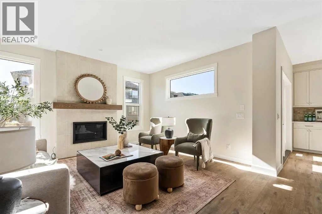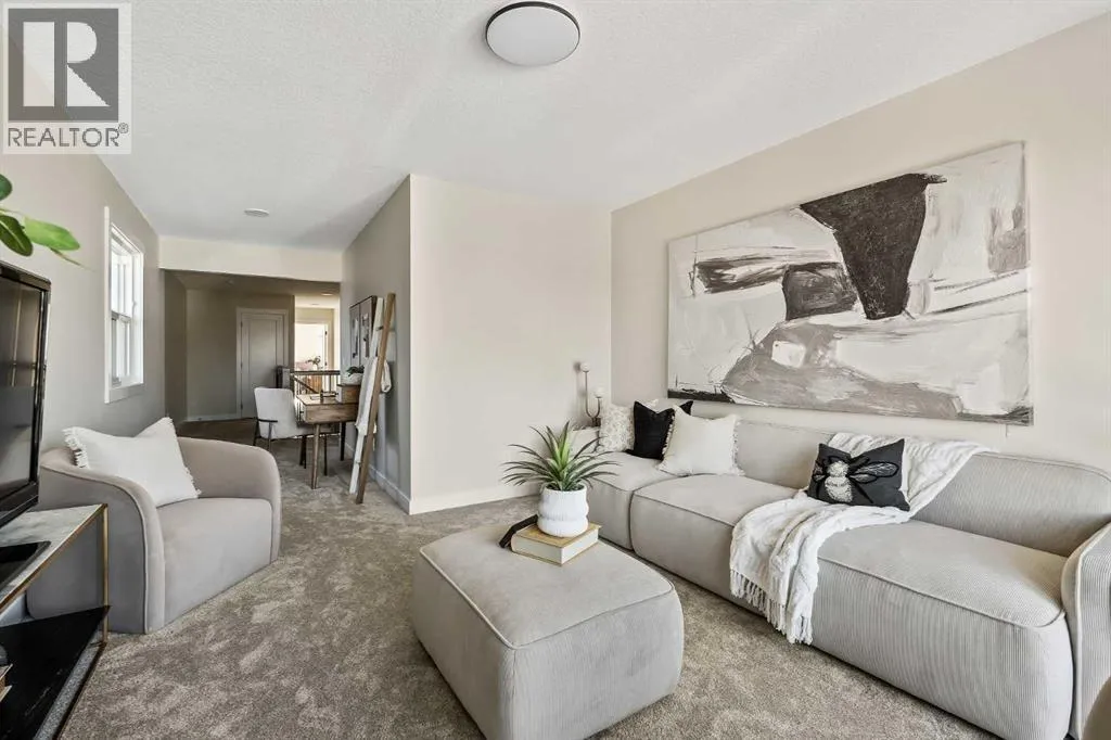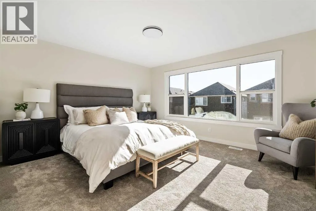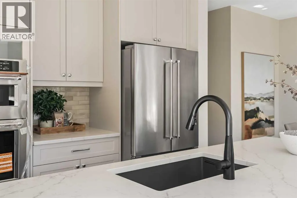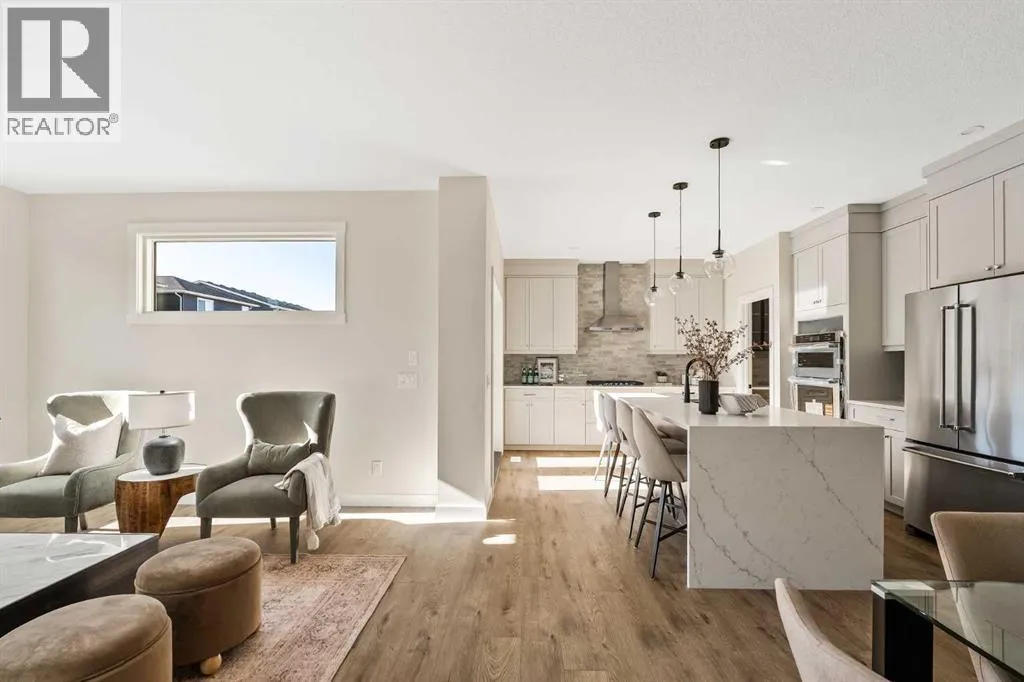 The beautiful Dawson model is a brand new home that features 2 living areas, 3 bedrooms, 2.5 bathrooms and nearly 2,300 square feet of developed living space + an undeveloped basement that awaits your imagination! Located in the heart of Chinook Gate and ideally situated on a large conventional lot with a south-facing backyard, this new home is perfect for a growing family. The double attached garage leads to an expansive mud room that has access to the front of the home and the large walk-through pantry/coffee bar that leads into the kitchen - adding to everyday convenience. The gourmet kitchen is complete with a cooktop, chimney hood fan, built-in wall oven & microwave, and features a central island with additional seating space. The kitchen overlooks the dining area and living room - making this the perfect family home or entertainment space! A central cantilevered gas fireplace in the main level great room is perfect for cozy winter nights. Double patio doors and windows on either side of the fireplace allow for the south-facing backyard sunshine to flow throughout the main living area all day long. The main level is complete with a large foyer, 2 pc powder room and two sets of double closets for ample storage. On the upper level, the bonus room is at the front of the home, overlooking the front street and providing the perfect tv space. The large primary suite is at the back of the home, overlooking the backyard, and is complete with walk-in closet and a 5 pc ensuite including a walk-in tiled shower, soaker tub, double sinks and a private water closet. Two more generous-sized bedrooms, each complete with their own walk-in closets, a full bathroom and laundry room complete the upper level. The undeveloped basement is a clean slate with bathroom rough-ins in place, making future development that much easier! Situated on a conventional lot (not a zero lot-line) that is over 3,700 ft2 in size, with a south-facing backyard, this beautiful new home is perfect for a g rowing family! This brand new home includes builder warranty + Alberta New Home Warranty - allowing you to purchase with peace of mind in the new community of Chinook Gate. (id:27476)