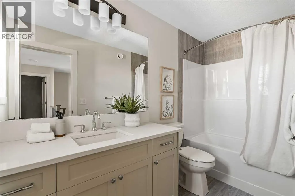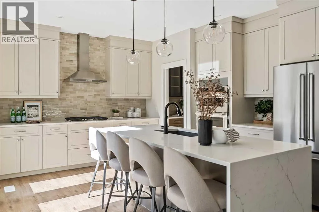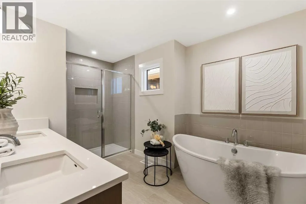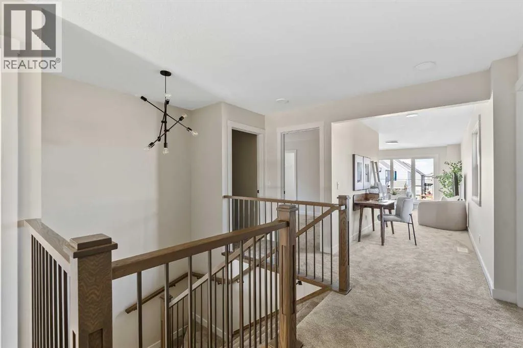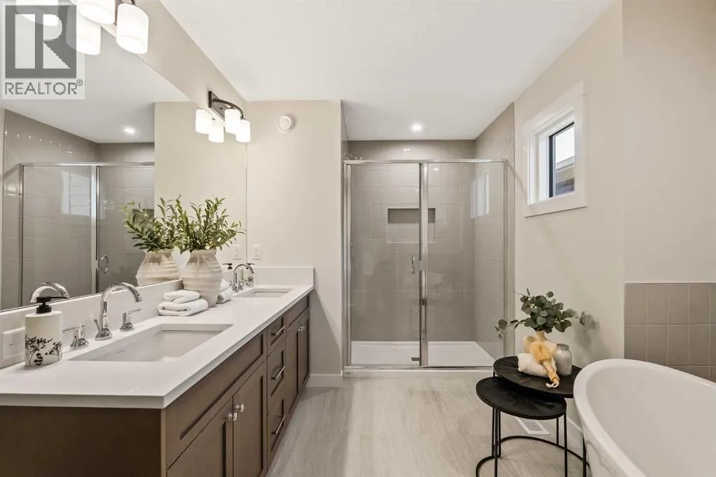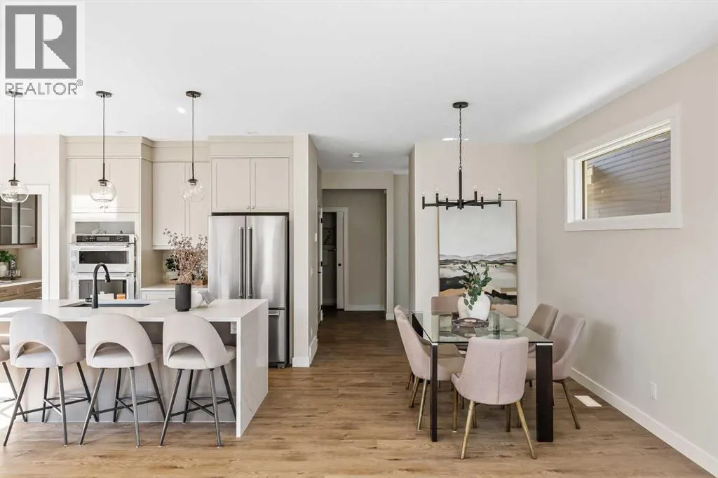 The beautiful Dawson model is a brand new home that features 2 living areas, 3 bedrooms, 2.5 bathrooms and nearly 2,300 square feet of developed living space + an undeveloped basement that awaits your imagination! Located in the heart of Chinook Gate and ideally situated on a large conventional lot with a south-facing backyard, this new home is perfect for a growing family. The double attached garage leads to an expansive mud room that has access to the front of the home and the large walk-through pantry/coffee bar that leads into the kitchen - adding to everyday convenience. The gourmet kitchen is complete with a cooktop, chimney hood fan, built-in wall oven & microwave, and features a central island with additional seating space. The kitchen overlooks the dining area and living room - making this the perfect family home or entertainment space! A central cantilevered gas fireplace in the main level great room is perfect for cozy winter nights. Double patio doors and windows on either side of the fireplace allow for the south-facing backyard sunshine to flow throughout the main living area all day long. The main level is complete with a large foyer, 2 pc powder room and two sets of double closets for ample storage. On the upper level, the bonus room is at the front of the home, overlooking the front street and providing the perfect tv space. The large primary suite is at the back of the home, overlooking the backyard, and is complete with walk-in closet and a 5 pc ensuite including a walk-in tiled shower, soaker tub, double sinks and a private water closet. Two more generous-sized bedrooms, each complete with their own walk-in closets, a full bathroom and laundry room complete the upper level. The undeveloped basement is a clean slate with bathroom rough-ins in place, making future development that much easier! Situated on a conventional lot (not a zero lot-line) that is over 3,700 ft2 in size, with a south-facing backyard, this beautiful new home is perfect for a g rowing family! This brand new home includes builder warranty + Alberta New Home Warranty - allowing you to purchase with peace of mind in the new community of Chinook Gate. (id:27476)