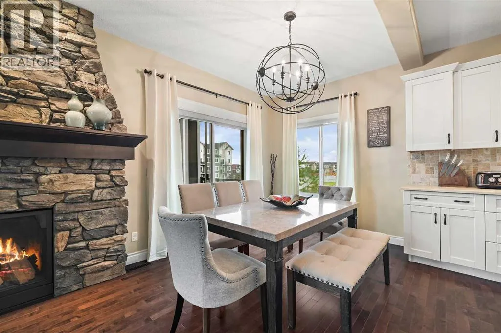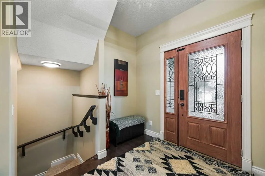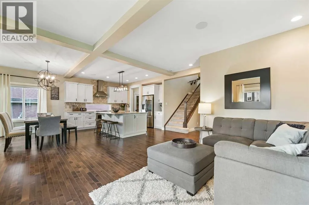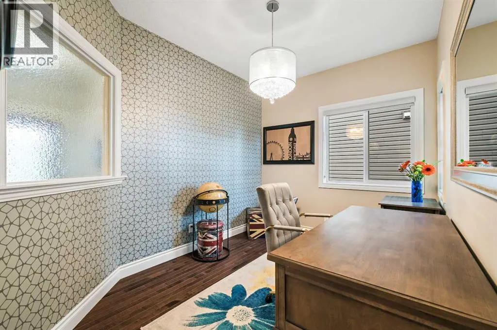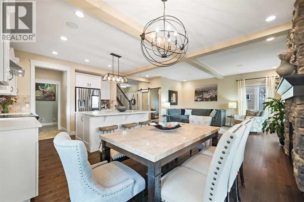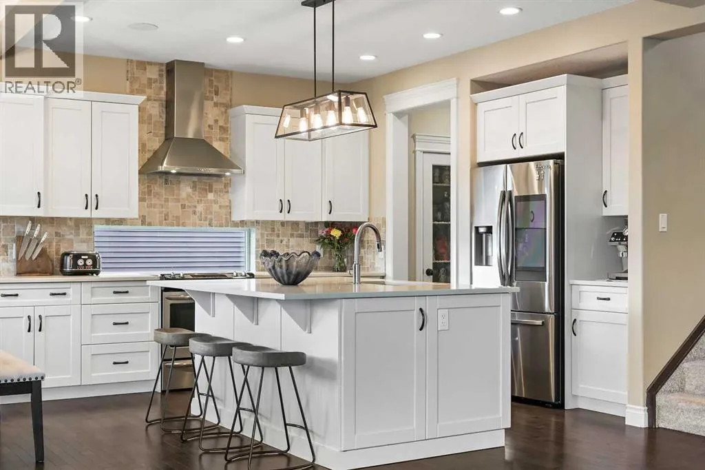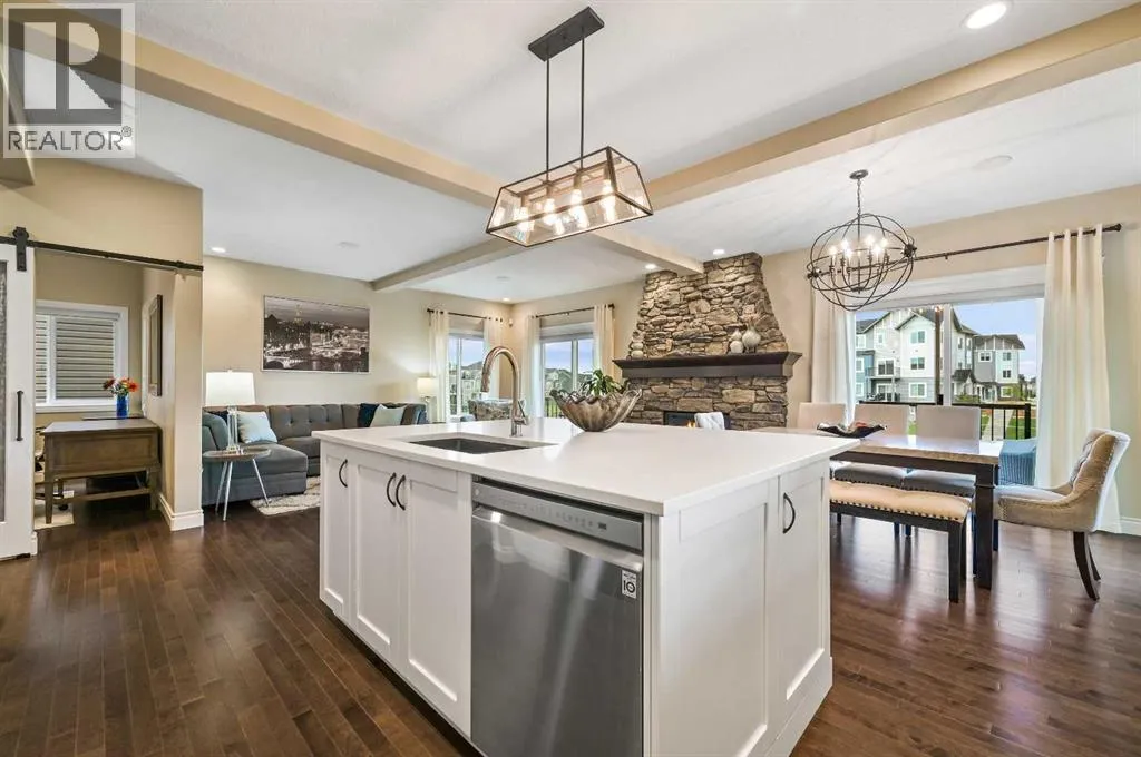 Welcome to this WATERFRONT luxury home on an oversized 7290 sq ft lot in Bayside Estates that offers a lifestyle like no other in Airdrie. With incredible craftsmanship & arguably Airdrie's best location backing onto the Bayside Estates canal with it's own private dock to offer fishing, kayaking, skating & it's a former McKee showhome! The main floor is thoughtfully designed with an open concept layout & hardwood throughout that perfectly complements the large bright windows which fill the room with tons of natural sunlight. The living room hosts a floor to ceiling stone gas fireplace feature, modern built in shelving/cabinetry and this flows seamlessly into the dining room (with a view of the canal) & an upgraded kitchen that rocks white cabinetry, stainless steel appliances (wifi enabled fridge is new!) & beautiful quartz countertops. The main floor also has a large office, a garage entryway with built-in seating/storage, a half bathroom & a large balcony with two sets of sliding doors to step out & enjoy the view because this one is 10/10 if you are searching for waterfront living in Airdrie! The upstairs greets you with a large bonus room with a built-in desk on the side & adjacent you'll be pleased with the spacious primary bedroom retreat overlooking the canal including a private primary bedroom balcony that provides epic sunsets & views of the canal! The spa-like ensuite bathroom with a deep soaker tub, dual sink vanity & a tiled shower includes the walk-in closet with custom built-in closet shelving. The spacious 2nd and 3rd upstairs bedrooms are conveniently located next to the 2nd full bathroom which is adjacent to the upstairs laundry room. The walkout basement with two more sets of sliding doors hosts a large family room with a pool table area & a custom bar with a wine fridge perfect for movie nights, as an exercise space & entertaining. Adjacent you'll find the 4th bedroom that has a unique space finished underneath the stairs that is perfect as a chil dren's playroom & another full bathroom. The mechanical in this home is excellent with a full built in media system including built in speakers throughout the home, Sonos & a boiler system to offer in-floor heat throughout the basement. Since it was a former show home the garage is completely finished with in-floor heat, light fixtures, ceiling texture, built in speakers & a back bay perfect for parking motorcycles, bikes or as a workshop space. Once the sun sets you'll be pleased to enjoy another upgraded feature of this property by turning on the Gemstone Brand architectural outdoor lighting. Location is the most important rule in real estate & this property knocks it out of the park with an extra wide lot backing the water that you will rarely find in Bayside - As a bonus there are also underground sprinklers! This home is the definition of a home that shows 10/10 and it must be viewed to fully appreciate its incredible craftsmanship & the waterfront lifestyle offered. (id:27476)