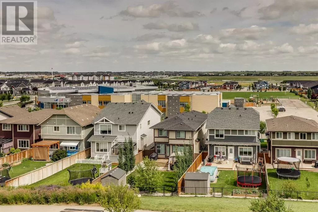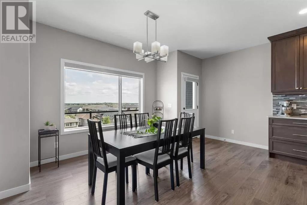 Beautifully appointed & ideally located, this 6-bedroom walkout home with a LEGAL suite, dream garage & premium upgrades delivers upscale comfort, functional design & long-term versatility. Backing onto a scenic pathway leading to Northcott Prairie School & a peaceful pond, this home blends family-friendly convenience with elevated style. Smart lights & switches are installed throughout, with cameras & door sensors on all entry points. Wide plank flooring, curved staircase & railings, bullnose corners, a soft neutral palette & expansive windows create a warm, welcoming atmosphere. The open layout encourages connection, from quiet evenings by the gas fireplace to lively gatherings in the oversized dining area. The modern kitchen inspires culinary creativity with full-height cabinetry, glass backsplash, gas cooktop, built-in wall oven, under-cabinet lighting rough-in & a statement island for casual meals. A walk-through butlerâs pantry adds efficiency with a second gas stove, prep sink & extra storage. Two spotlight-lit alcoves add stylish display options. Step outside to the full-width upper deck with glass railings, gas & water lines & take in tranquil views. A private den provides a quiet space for work or study. Upstairs, a spacious bonus room invites family downtime, while four large bedrooms ensure room for all. The elegant primary retreat includes a walk-in closet & spa-inspired ensuite with dual sinks, soaker tub & glass shower. A secondary bedroom with private 3-pc ensuite is perfect for guests or teens, while a shared 4-pc bath & upper laundry add daily ease. The finished walkout level adds incredible flexibility with a bright, open-concept legal suite featuring two bedrooms, a full kitchen with gas rough-in, professional metallic epoxy floors, under-cabinet lighting rough-in, separate laundry, 3-pc bath & private entryâideal for multi-gen living or long-term guests. Outside, the yard features a covered lower patio with rough-in for a hot tub, both gas & wat er lines, garden beds & direct access to the pathway network. The charming front porch boosts curb appeal & makes a perfect morning coffee spot. The garage is a standout with gas line for future heater, hexagon LED lighting, pro-grade floor tiles, overhead storage & handy man door. Just a 5-min walk to school & 18-min stroll to shops, with easy access to QEII, CrossIron Mills & Calgaryâthis is a rare chance to live beautifully in a prime Airdrie location. (id:27476)