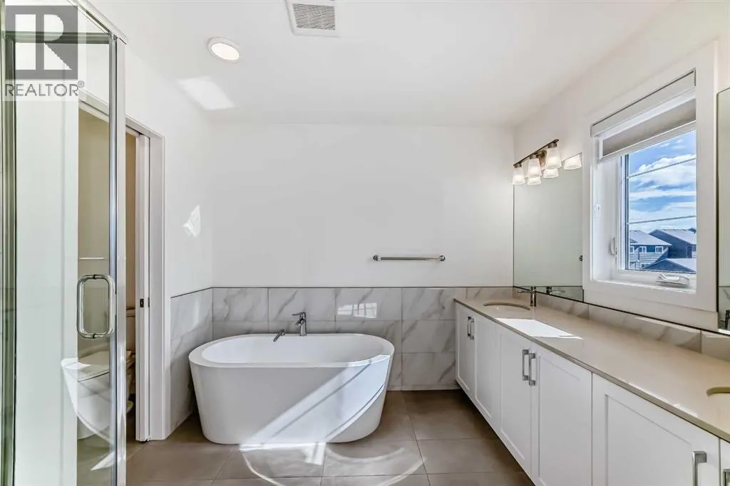 This one-year new, custom-built executive home (3 & 1 bed) is ideally situated on a desirable corner lot just a half block from a serene park area in the welcoming community of Lanark. Designed for modern living, the home features an inviting open-concept layout and high-end finishes throughout. Step into a spacious foyer that opens into a bright and airy living room, perfect for entertaining or relaxing. The chef-inspired kitchen boasts a large center island, sleek quartz countertops, stainless steel appliances, and a walk-through pantry that connects to a convenient mudroom and a truly oversized double attached garage (21' x 24'). The sunlit dining area is perfect for everyday meals, and a stylish 2-piece powder room completes the main floor. Upstairs, enjoy a cozy bonus room with stunning mountain views from the large window. The luxurious primary suite offers a spacious retreat, complete with a spa-like 5-piece ensuite featuring double sinks, a soaker tub, and a separate glass shower. Two additional well-sized bedrooms are directly connected by a functional Jack and Jill bathroom. The professionally developed basementâcompleted by the builderâoffers even more living space with a spacious family room, an additional large 4th bedroom, and a full bathroom. Don't miss the opportunity to live in this beautifully appointed home in a vibrant, family-oriented neighborhood. (id:27476)