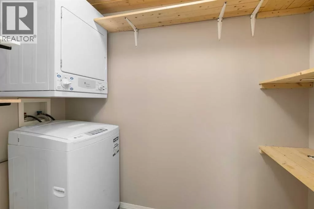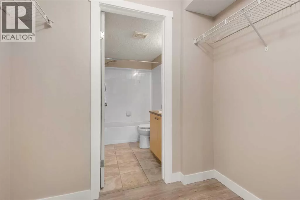 BEAUTIFUL LOCATION - PERFECT LAYOUT - TITLED UNDERGROUND PARKING Welcome to your dream condoâwhere modern style meets everyday comfort in over 850 SF of beautifully designed living! Perfectly located in the heart of Airdrie, youâre just steps from shopping, schools, parks, and all the essentials, so youâre always close to what matters. Inside, enjoy a bright, open-concept layout with vinyl plank flooring and a fresh coat of paint that ties it all together. Start your mornings or wind down your evenings on the spacious balconyâyour personal retreat for coffee, fresh air, or a good book. The gorgeous kitchen steals the spotlight with loads of counter and cabinet space, making cooking at home a joy. The large primary bedroom is a cozy haven with its walk-through closet and private 4-piece ensuite, while the second bedroom is just as versatileâperfect for guests, a home office, or whatever fits your lifestyle, with another full 4-piece bath right next door. A laundry/storage room with built-in shelving keeps things tidy and organized without a fuss. Plus an underground titled parking spot for year round hassle free parking! With its unbeatable location, thoughtful layout, and fresh modern feel, this condo has everything you need to live comfortably in styleâbook your private showing today! (id:27476)