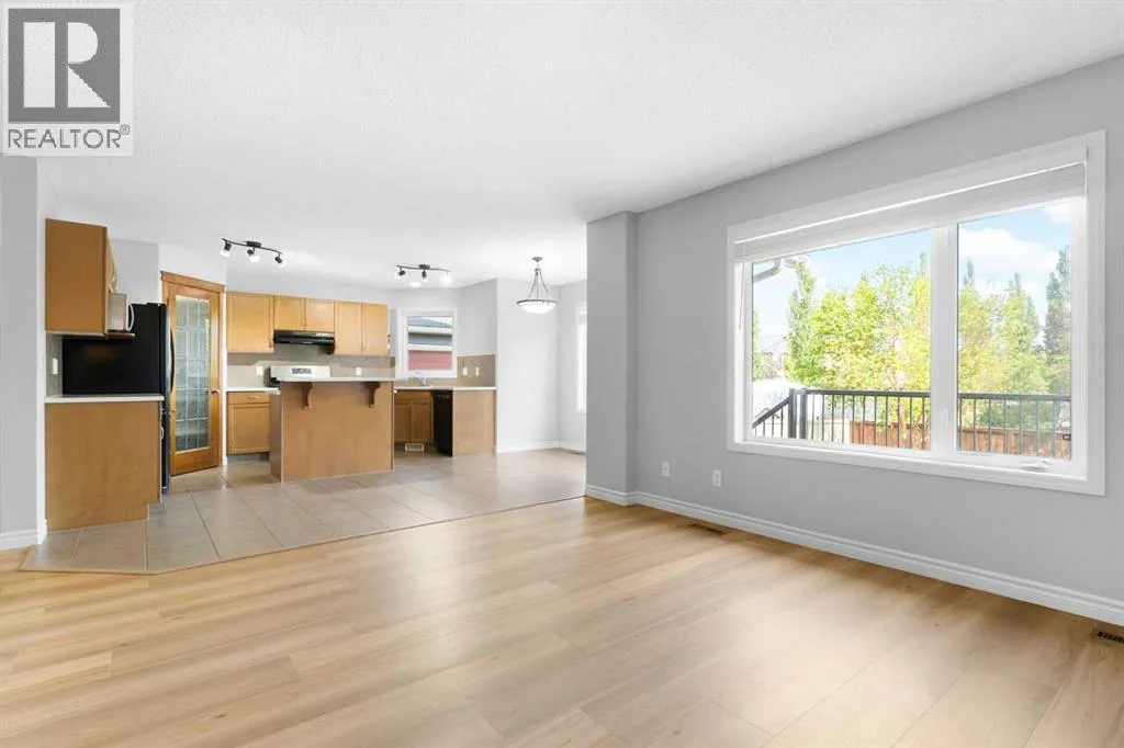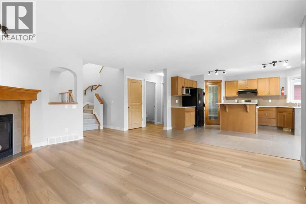 Discover this beautifully updated 3-bedroom, 2.5-bathroom home offering 1,641 sq ft of thoughtfully designed living space, situated on a generous lot in the sought-after community of Prairie Springs. With impressive curb appeal and a double front-attached garage, this home blends functionality and modern style in one perfect package. Step inside to find a freshly painted interior, complemented by brand-new laminate flooring and plush new carpeting throughout, creating a warm and inviting atmosphere. The open-concept main level features a bright and spacious living area, ideal for both relaxing and entertaining. The cozy corner gas fireplace creates a warm and inviting focal point in the living room. At the heart of the home, the kitchen has been tastefully upgraded with stunning new quartz countertops, a gas stove, ample cabinetry and a corner pantryâperfect for the home chef. Enjoy family meals in the adjoining dining area with easy access to the large backyard. Upstairs, youâll find three generous bedrooms, including a spacious primary, complete with a walk-in closet and a beautifully refreshed ensuite bathroom featuring matching quartz surfaces. Two additional bedrooms and a full 4-piece bathroom offer plenty of room for family. Convenience meets practicality with main floor laundry and access to the garage, while the unfinished basement provides limitless potentialâwhether youâre dreaming of a rec room, additional bedrooms, or a custom home gym. Step outside and enjoy the outdoors in your large, fully fenced backyard, surrounded by mature trees and featuring garden boxes for the green thumb in the family. The chain link fencing keeps the space open and bright while providing safety for kids and pets. Both front and rear decks have been freshly stained, making them perfect spots for summer BBQs. With recent updates throughout and a fantastic layout, this move-in-ready home offers comfort, style, and room to growâall within close proximity to schools, parks, shopp ing, and walking trails. IMMEDIATE POSSESSION AVAILABLE. Donât miss your chance to own this upgraded gem in a family-friendly neighborhood. Book your private showing today! (id:27476)