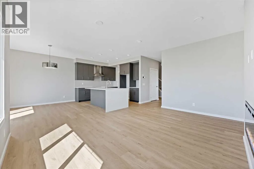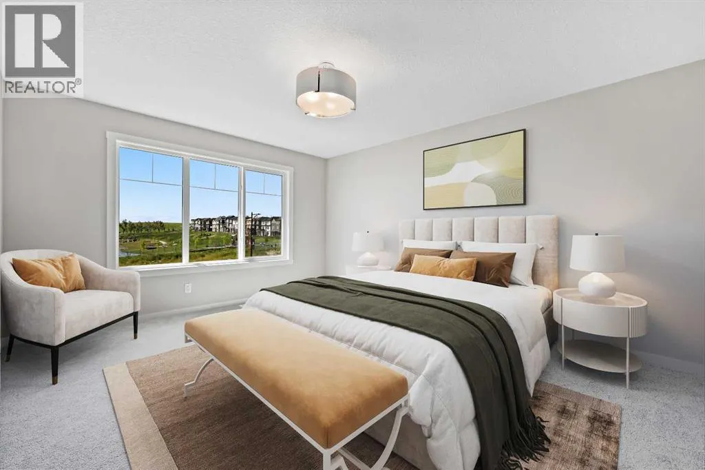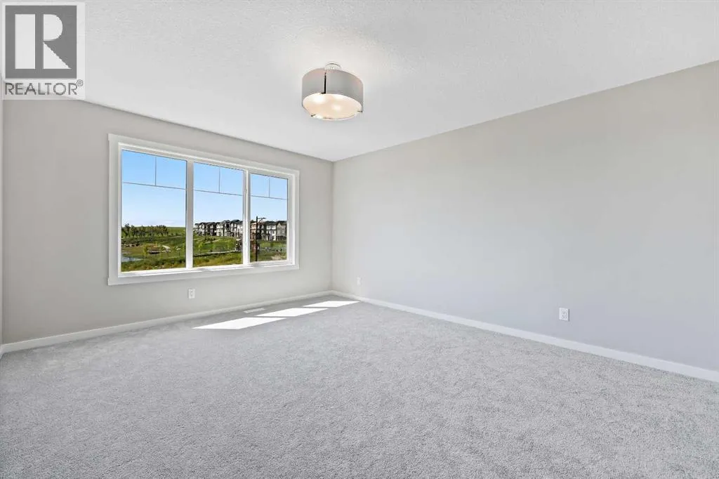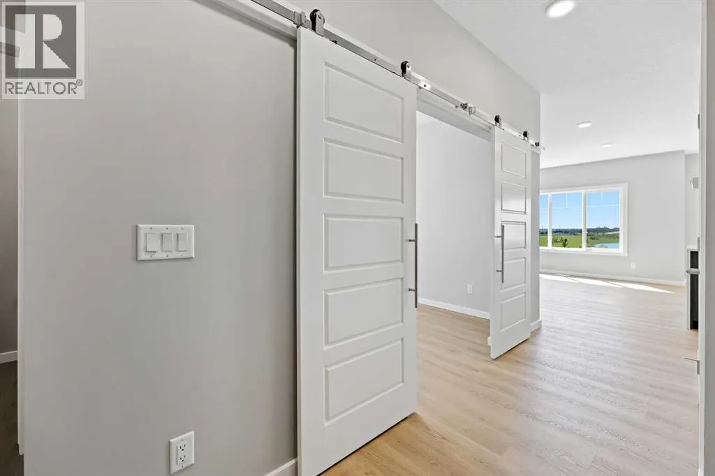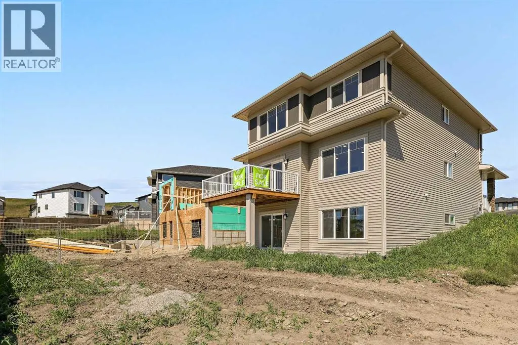 Experience refined living in the serene and sought-after community of Key Ranch, Airdrie. This exquisite 2-storey residence is perfectly positioned on a generous traditional lot with no rear neighbours, offering both privacy and south facing views. A sun-drenched backyard is the ultimate retreat, featuring a lower-level walkout with a separate entrance and patio, and an expansive main-floor deck, ideal for effortless entertaining or quiet morning coffee. Inside, the home welcomes you with 9-foot knockdown ceilings and a versatile main-floor flex room, perfect for a stylish home office. The gourmet chefâs kitchen is a true showpiece, appointed with a designer chimney hood fan, full-height soft-close cabinetry, striking quartz countertops, and an undermount sink, blending form and function in perfect harmony. The primary suite is a private sanctuary, offering a impressive triple entry design into the spa-inspired 5-piece ensuite with dual vanities, a free-standing soaker tub, an oversized walk-in shower with full tile surround, and a private water closet. Both the walk-in pantry and primary closet are outfitted with custom melamine shelving, elevating organization to a new level of sophistication. The upper floor also boasts a massive bonus room, two additional bedrooms, a stylish 4-piece bath, and a well-appointed spacious laundry room. Designed with energy efficiency in mind, this home features triple-pane windows, a high-efficiency furnace, hot water tank, and an HRV system, ensuring optimal comfort in every season. (id:27476)