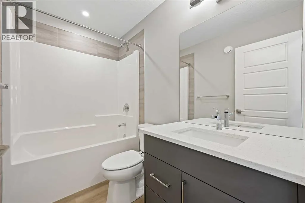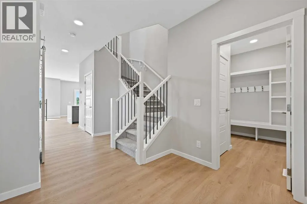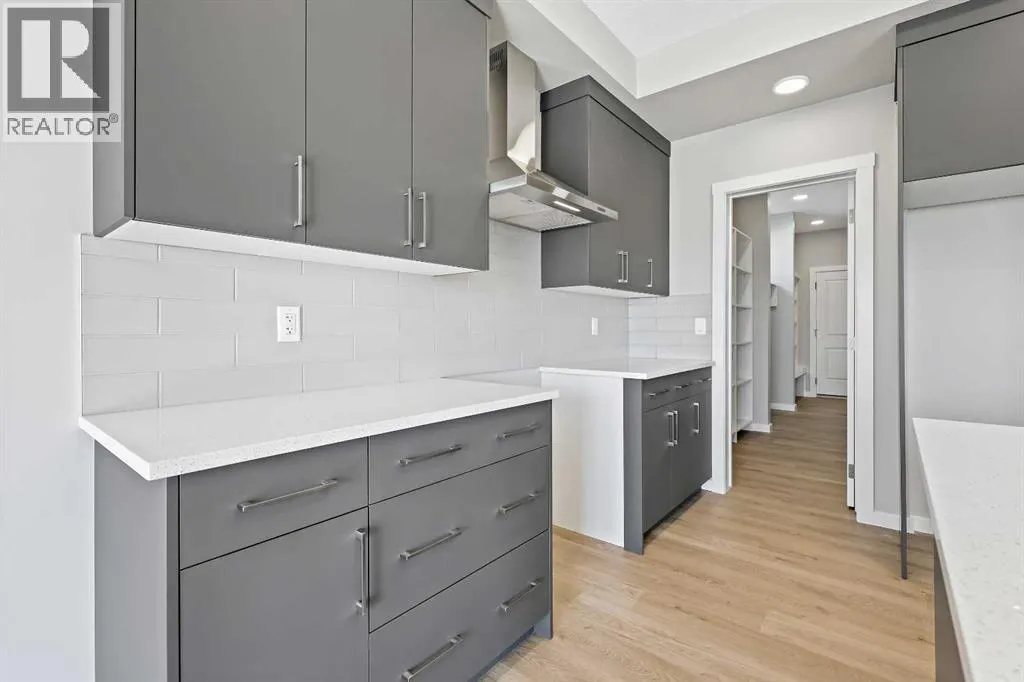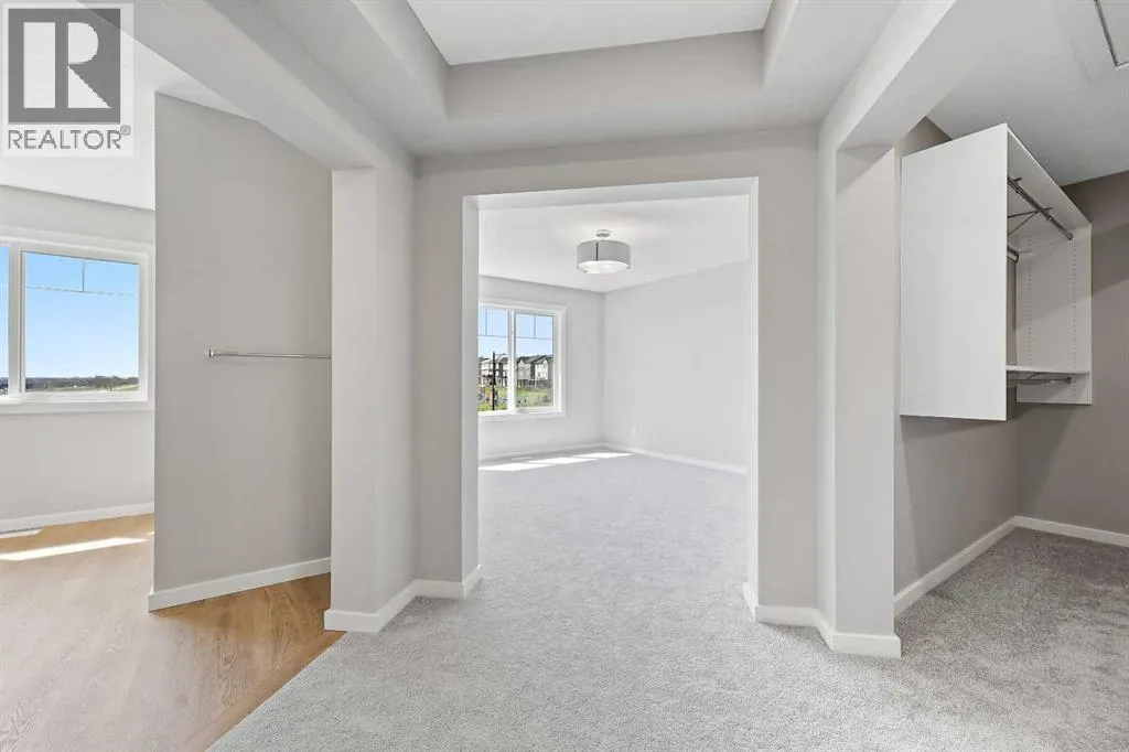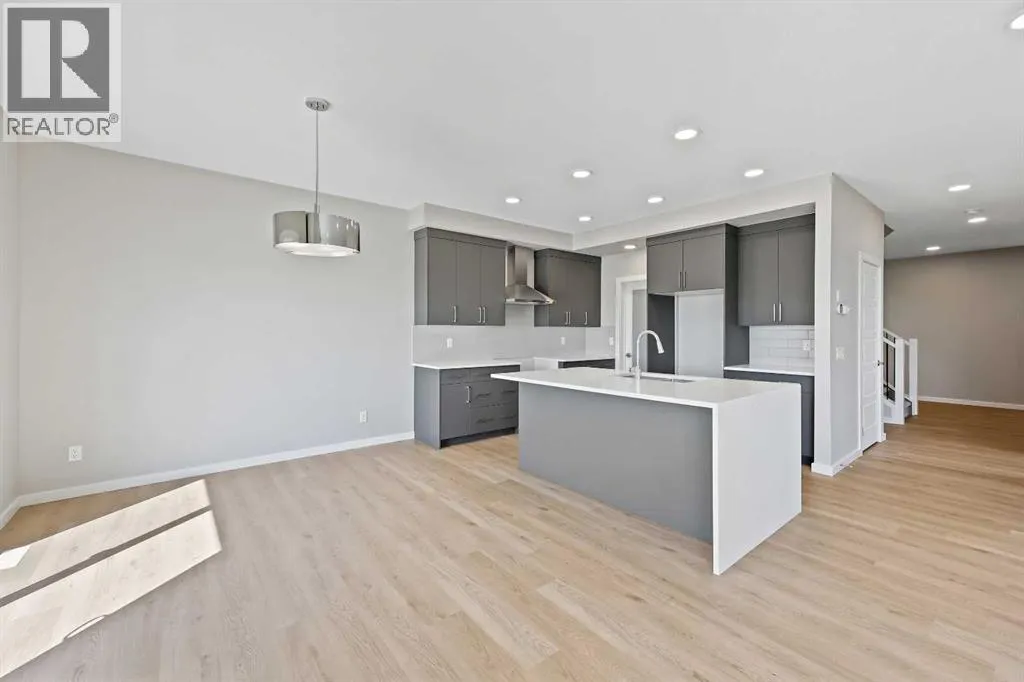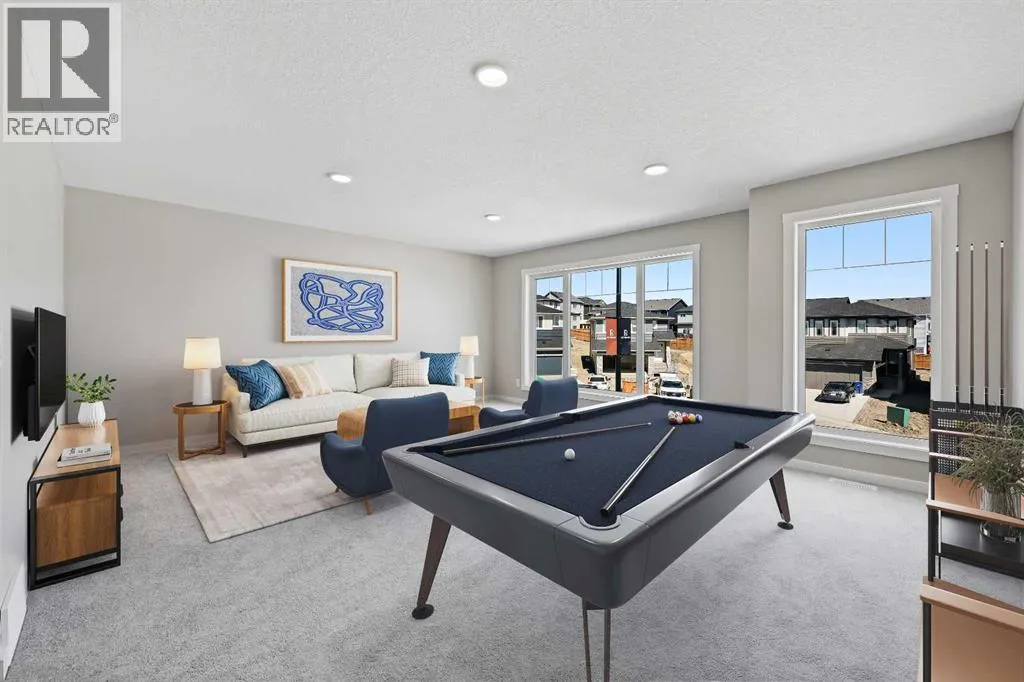 Experience refined living in the serene and sought-after community of Key Ranch, Airdrie. This exquisite 2-storey residence is perfectly positioned on a generous traditional lot with no rear neighbours, offering both privacy and south facing views. A sun-drenched backyard is the ultimate retreat, featuring a lower-level walkout with a separate entrance and patio, and an expansive main-floor deck, ideal for effortless entertaining or quiet morning coffee. Inside, the home welcomes you with 9-foot knockdown ceilings and a versatile main-floor flex room, perfect for a stylish home office. The gourmet chefâs kitchen is a true showpiece, appointed with a designer chimney hood fan, full-height soft-close cabinetry, striking quartz countertops, and an undermount sink, blending form and function in perfect harmony. The primary suite is a private sanctuary, offering a impressive triple entry design into the spa-inspired 5-piece ensuite with dual vanities, a free-standing soaker tub, an oversized walk-in shower with full tile surround, and a private water closet. Both the walk-in pantry and primary closet are outfitted with custom melamine shelving, elevating organization to a new level of sophistication. The upper floor also boasts a massive bonus room, two additional bedrooms, a stylish 4-piece bath, and a well-appointed spacious laundry room. Designed with energy efficiency in mind, this home features triple-pane windows, a high-efficiency furnace, hot water tank, and an HRV system, ensuring optimal comfort in every season. (id:27476)