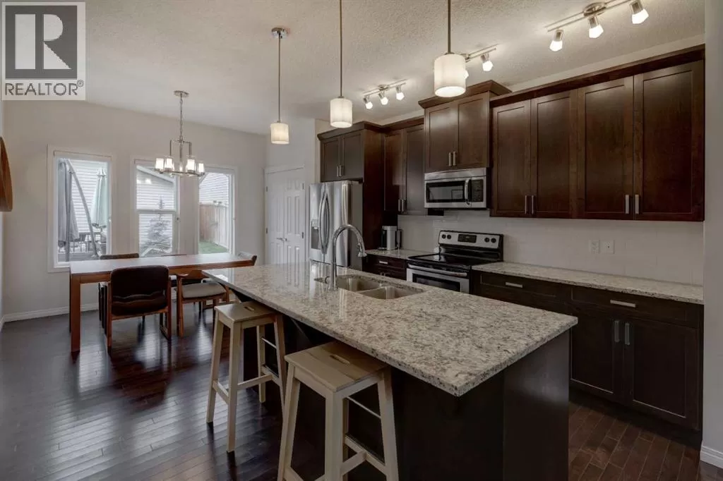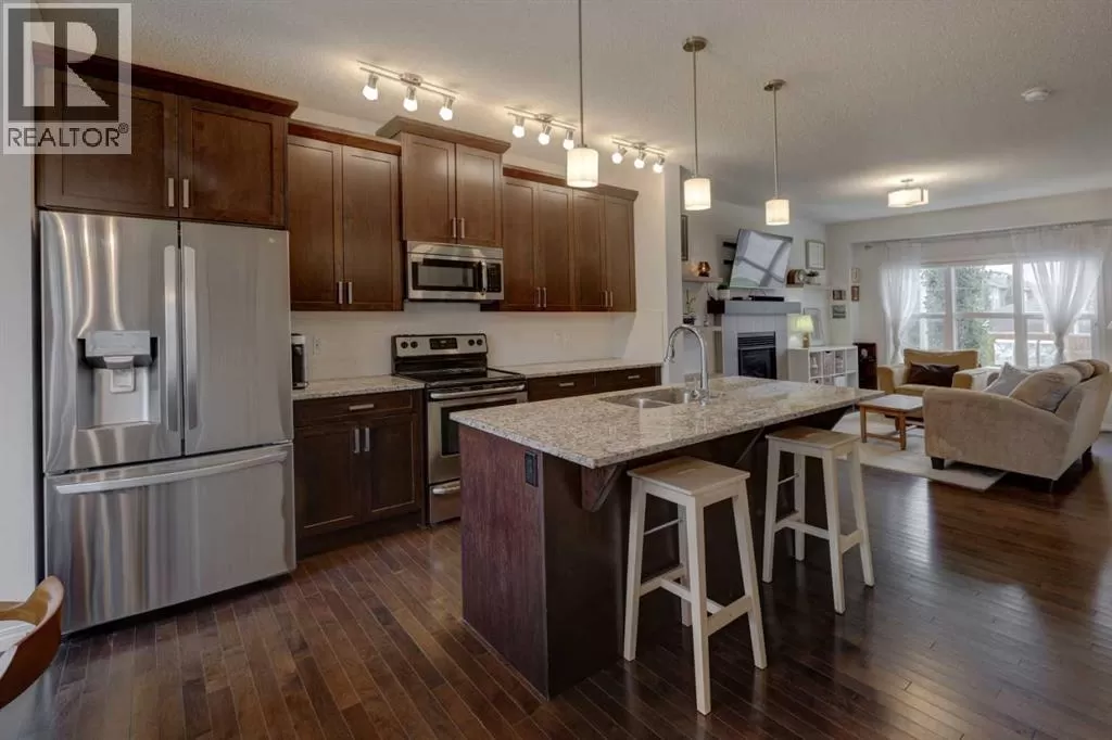 Welcome to 149 Hillcrest Avenue! This stunning 2-storey detached home offers over 2,000 sq ft of beautifully developed living spaceâdesigned for both family living and entertaining. The bright, open-concept main floor is flooded with natural light from large windows and features a spacious family room, a cozy dining area, a stylish half bath, and direct access to the oversized double detached garage. The chefâs kitchen is a true showstopper with upgraded cabinetry, abundant storage, under-cabinet lighting, high-end stainless steel appliances, granite countertops, extra pot lighting, and a generous islandâperfect for cooking and gathering. Upstairs, youâll find a luxurious primary retreat with a walk-in closet and 4-piece ensuite, along with two additional bedrooms, a second full bath, and a convenient laundry room. The finished basement offers a large family/recreation space with a sunshine window (ideal for an additional bedroom), a workout area, plenty of storage, and a rough-in for a future bathroom. Notable upgrades include 8â interior doors on the main level, hardwood floors, elegant railings, and professional landscaping in both the front and sunny south-facing backyard. The oversized garage is finished with durable epoxy floors. All of this within walking distance to Northcott Prairie School (Kâ8), parks, playgrounds, and Coopers Plaza Promenade for dining, shopping, and everyday essentials. (id:27476)