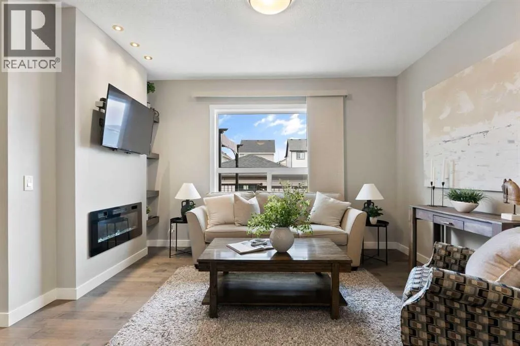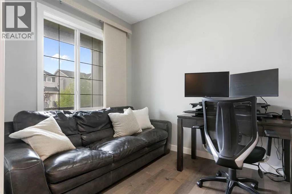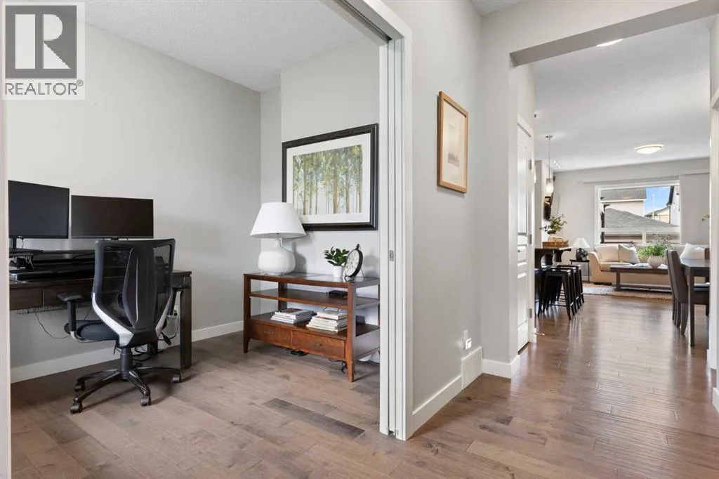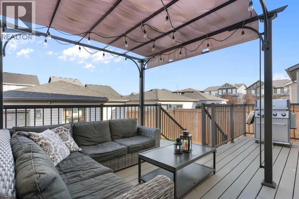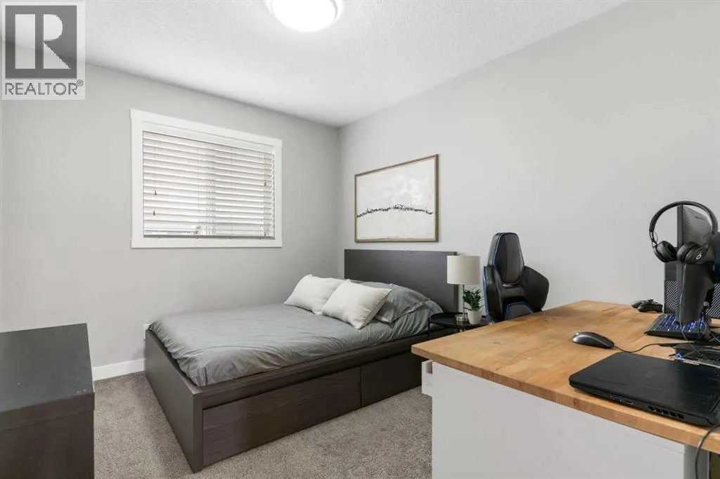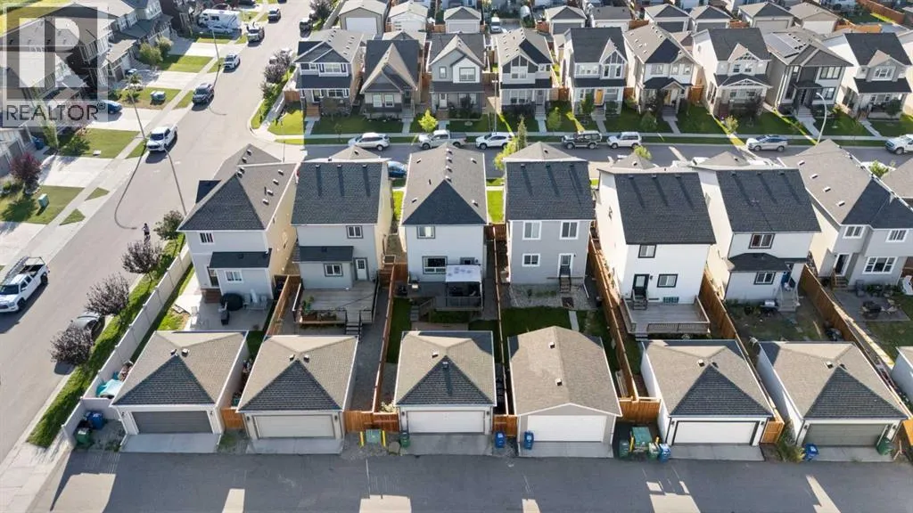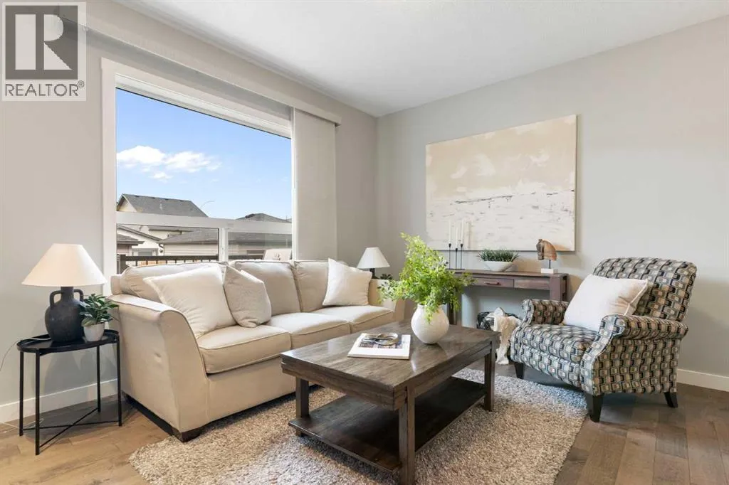 Hello Gorgeous! Welcome to Hillcrest! This custom detached home is beautifully designed with thoughtful upgrades across all three levels, offering over 2,300 sq. ft. of fully developed living space. From the moment you step inside, youâll notice the attention to detail that makes this property both stylish and functional. The main floor spans over 805 sq. ft. and features engineered hardwood flooring, with tile in the bathroom for durability. A private office with glass French doors is perfect for working from home, while the living room is anchored by a sleek electric fireplace for cozy evenings. The kitchen will impress with granite countertops, a gas range, stainless steel hood fan, fridge, and dishwasherâblending elegance and practicality for everyday cooking or entertaining. Upstairs, youâll find three generously sized bedrooms each offer spacious walk-in closets, while the bathrooms boast tile flooring, granite countertops, and an upgraded main bath complete with an extended soaker tub and glass shower, plus upgraded carpet throughout. A convenient second-floor laundry room, equipped with a brand-new Samsung washer and dryer, makes everyday chores a breeze. The fully developed basement adds another 711 sq. ft. of versatile living. Finished with laminate flooring, it includes a built-in bookstand, electric fireplace, and a wired entertainment area ready for your home theater setup. A large office space, plus a full secondary kitchen with quartz countertops, microwave, and fridge, expand your options for hosting or multi-generational living. The basement also includes a spacious closet, ample storage, and a full bathroom finished in tile. Outside, enjoy both a composite rear deck and a lower wood deck overlooking the green space, complete with a fire pit for outdoor gatherings. The extended garage provides excellent storage and easily accommodates two large SUVs or trucks. This property combines custom craftsmanship, modern finishes, and flexible living spacesâm aking it an incredible place to call home. Hillcrest is a fantasic family-friendly community - this home is surrounded by walking paths, parks, playgrounds, and stunning mountain views. Everyday conveniences are just minutes away with schools, shops, dining, and quick access to Calgary all within easy reach. Hillcrest combines modern amenities with small-town charm, making it the perfect place to put down roots â book your showing today! (id:27476)
