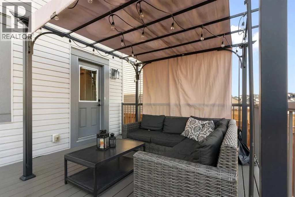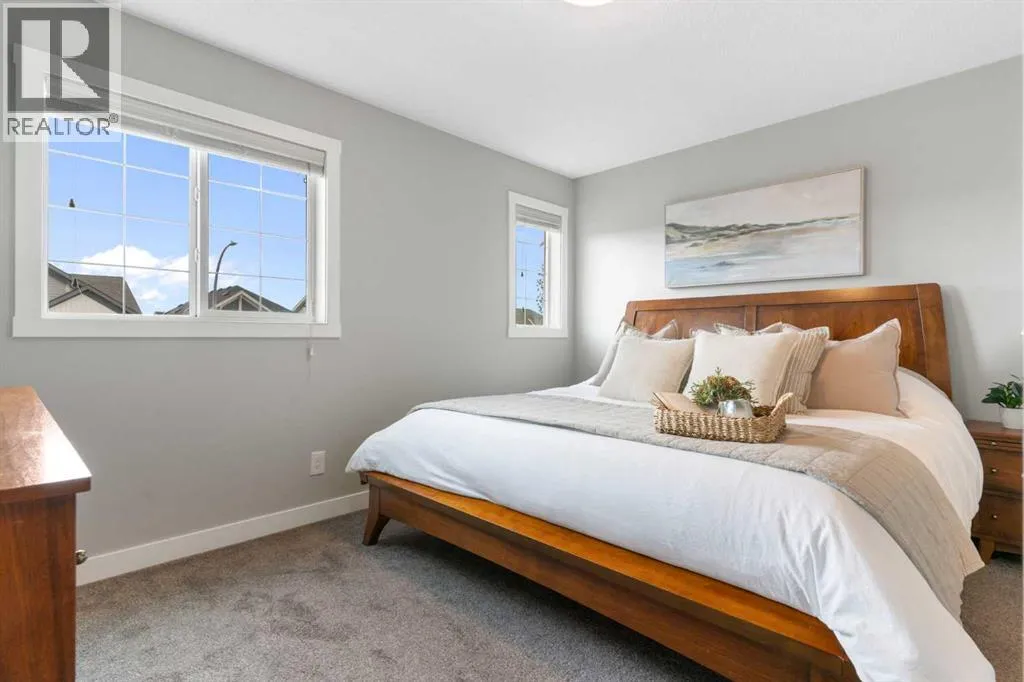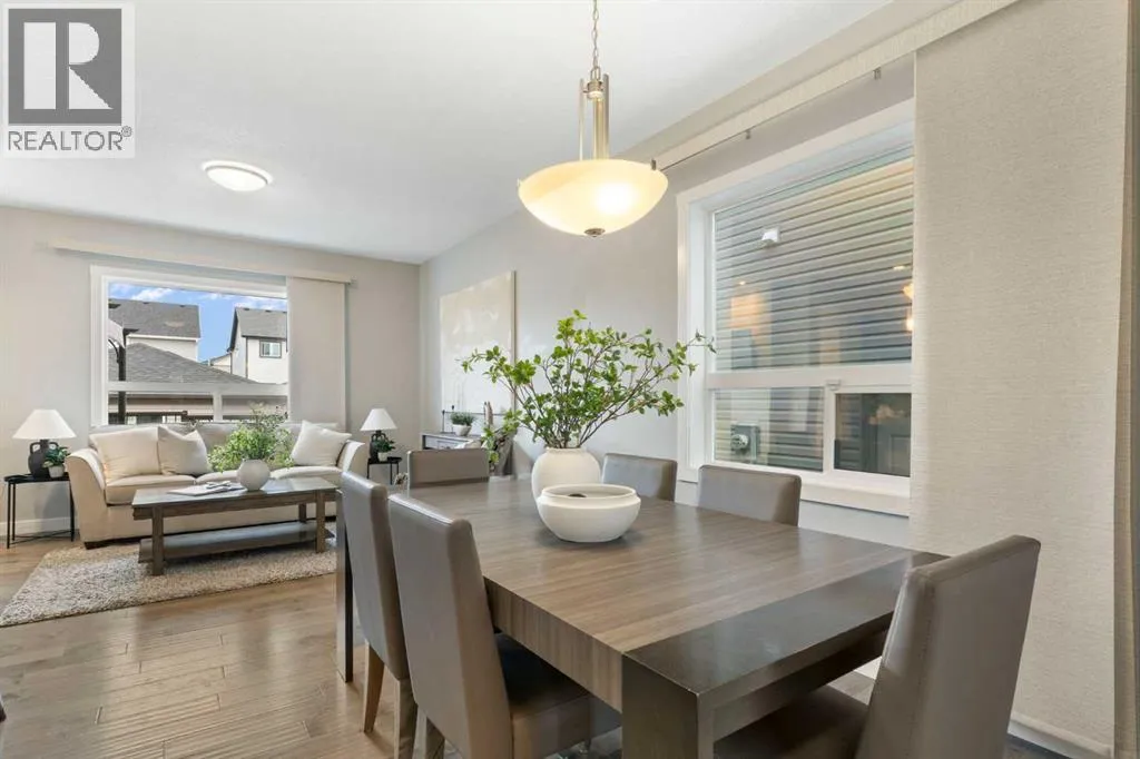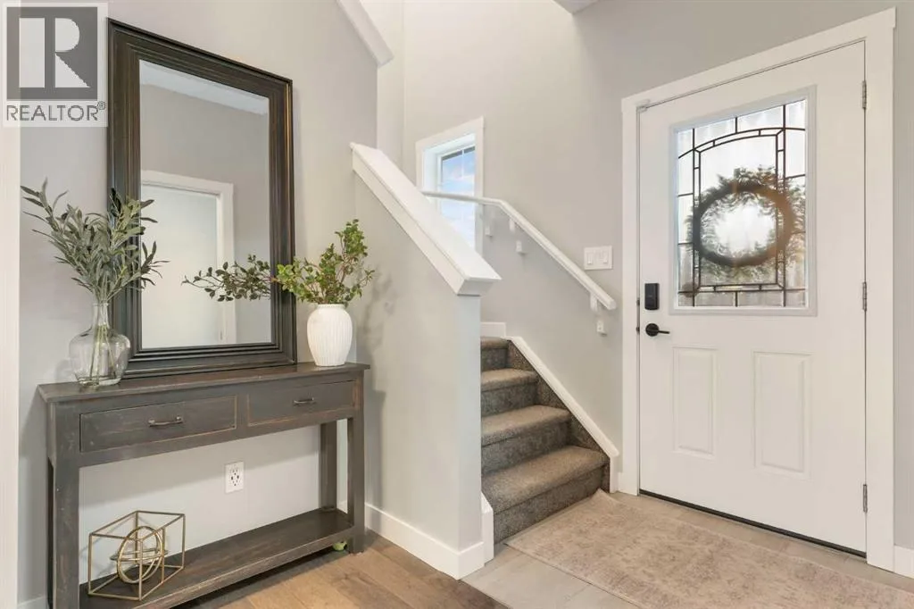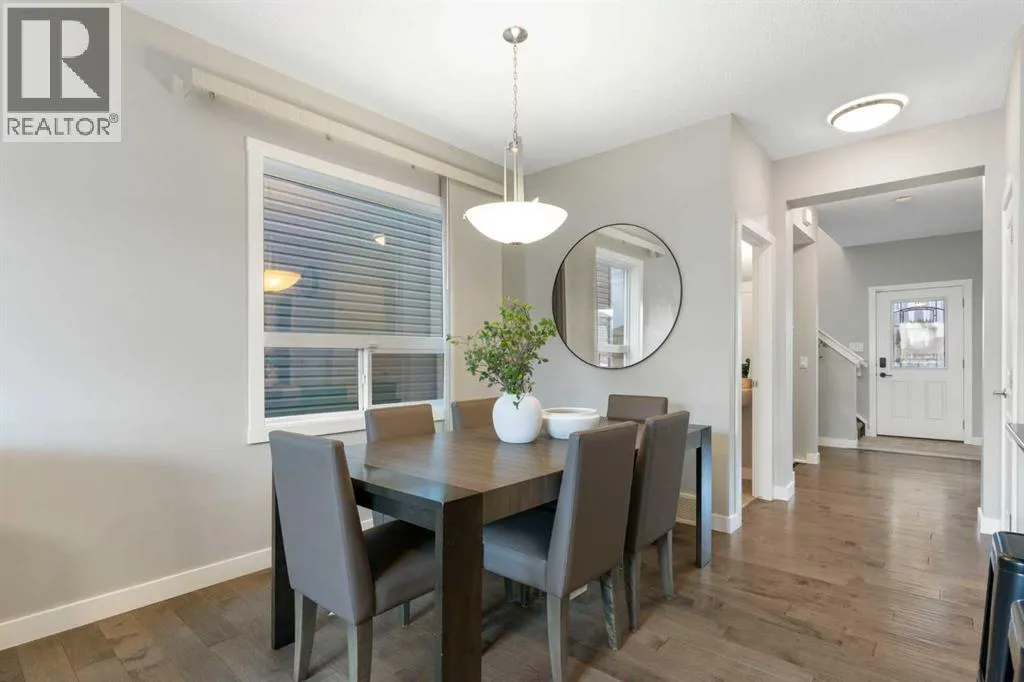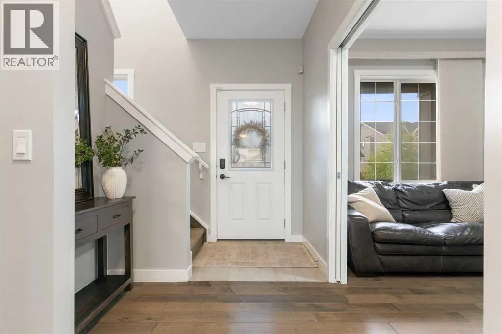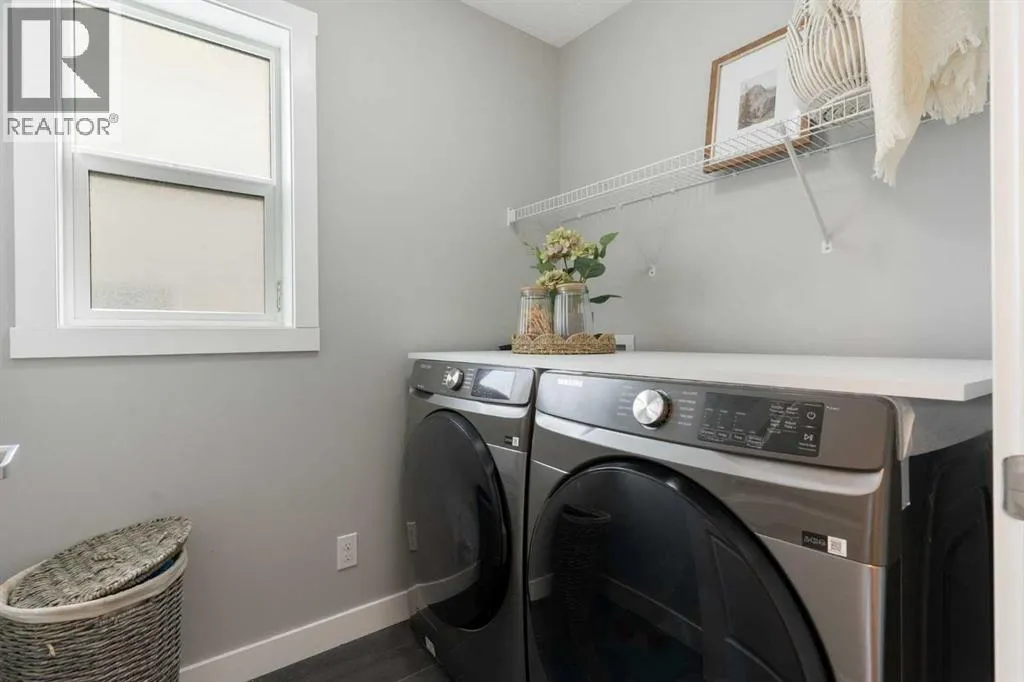 Hello Gorgeous! Welcome to Hillcrest! This custom detached home is beautifully designed with thoughtful upgrades across all three levels, offering over 2,300 sq. ft. of fully developed living space. From the moment you step inside, youâll notice the attention to detail that makes this property both stylish and functional. The main floor spans over 805 sq. ft. and features engineered hardwood flooring, with tile in the bathroom for durability. A private office with glass French doors is perfect for working from home, while the living room is anchored by a sleek electric fireplace for cozy evenings. The kitchen will impress with granite countertops, a gas range, stainless steel hood fan, fridge, and dishwasherâblending elegance and practicality for everyday cooking or entertaining. Upstairs, youâll find three generously sized bedrooms each offer spacious walk-in closets, while the bathrooms boast tile flooring, granite countertops, and an upgraded main bath complete with an extended soaker tub and glass shower, plus upgraded carpet throughout. A convenient second-floor laundry room, equipped with a brand-new Samsung washer and dryer, makes everyday chores a breeze. The fully developed basement adds another 711 sq. ft. of versatile living. Finished with laminate flooring, it includes a built-in bookstand, electric fireplace, and a wired entertainment area ready for your home theater setup. A large office space, plus a full secondary kitchen with quartz countertops, microwave, and fridge, expand your options for hosting or multi-generational living. The basement also includes a spacious closet, ample storage, and a full bathroom finished in tile. Outside, enjoy both a composite rear deck and a lower wood deck overlooking the green space, complete with a fire pit for outdoor gatherings. The extended garage provides excellent storage and easily accommodates two large SUVs or trucks. This property combines custom craftsmanship, modern finishes, and flexible living spacesâm aking it an incredible place to call home. Hillcrest is a fantasic family-friendly community - this home is surrounded by walking paths, parks, playgrounds, and stunning mountain views. Everyday conveniences are just minutes away with schools, shops, dining, and quick access to Calgary all within easy reach. Hillcrest combines modern amenities with small-town charm, making it the perfect place to put down roots â book your showing today! (id:27476)