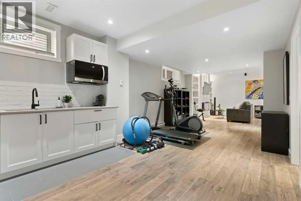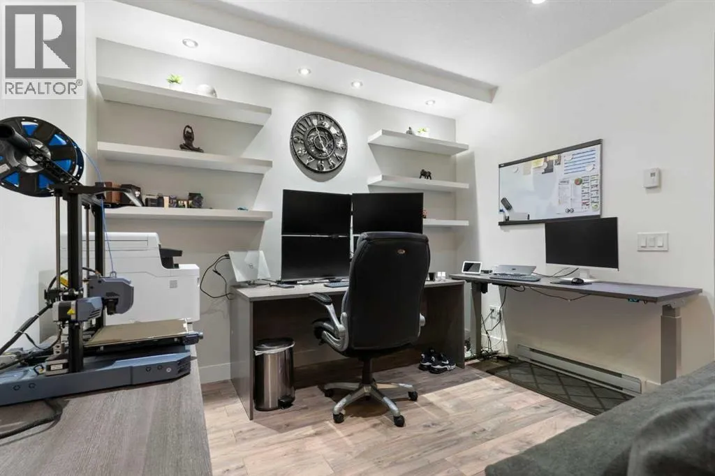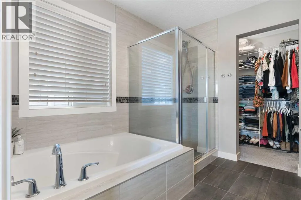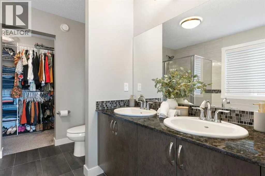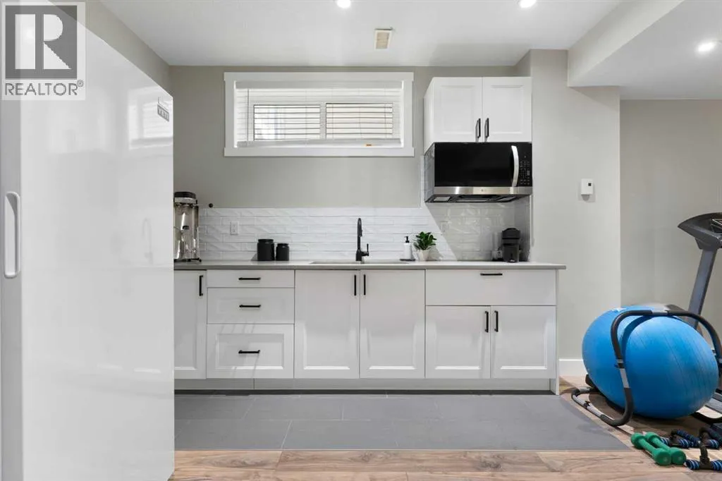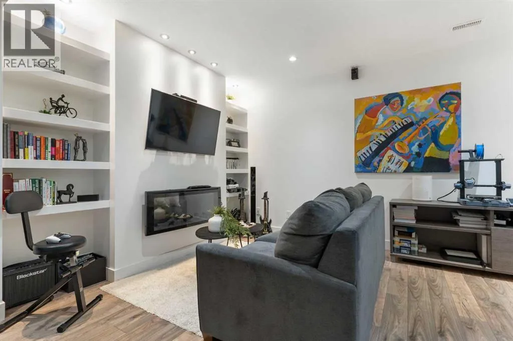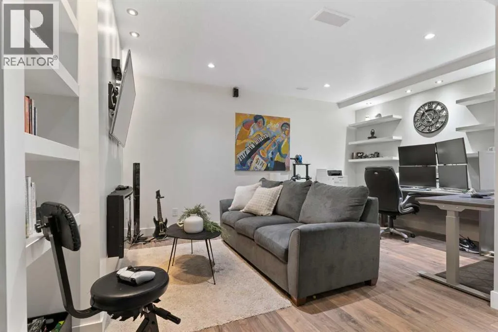 Hello Gorgeous! Welcome to Hillcrest! This custom detached home is beautifully designed with thoughtful upgrades across all three levels, offering over 2,300 sq. ft. of fully developed living space. From the moment you step inside, youâll notice the attention to detail that makes this property both stylish and functional. The main floor spans over 805 sq. ft. and features engineered hardwood flooring, with tile in the bathroom for durability. A private office with glass French doors is perfect for working from home, while the living room is anchored by a sleek electric fireplace for cozy evenings. The kitchen will impress with granite countertops, a gas range, stainless steel hood fan, fridge, and dishwasherâblending elegance and practicality for everyday cooking or entertaining. Upstairs, youâll find three generously sized bedrooms each offer spacious walk-in closets, while the bathrooms boast tile flooring, granite countertops, and an upgraded main bath complete with an extended soaker tub and glass shower, plus upgraded carpet throughout. A convenient second-floor laundry room, equipped with a brand-new Samsung washer and dryer, makes everyday chores a breeze. The fully developed basement adds another 711 sq. ft. of versatile living. Finished with laminate flooring, it includes a built-in bookstand, electric fireplace, and a wired entertainment area ready for your home theater setup. A large office space, plus a full secondary kitchen with quartz countertops, microwave, and fridge, expand your options for hosting or multi-generational living. The basement also includes a spacious closet, ample storage, and a full bathroom finished in tile. Outside, enjoy both a composite rear deck and a lower wood deck overlooking the green space, complete with a fire pit for outdoor gatherings. The extended garage provides excellent storage and easily accommodates two large SUVs or trucks. This property combines custom craftsmanship, modern finishes, and flexible living spacesâm aking it an incredible place to call home. Hillcrest is a fantasic family-friendly community - this home is surrounded by walking paths, parks, playgrounds, and stunning mountain views. Everyday conveniences are just minutes away with schools, shops, dining, and quick access to Calgary all within easy reach. Hillcrest combines modern amenities with small-town charm, making it the perfect place to put down roots â book your showing today! (id:27476)