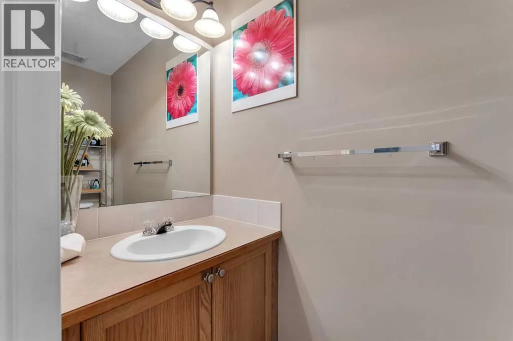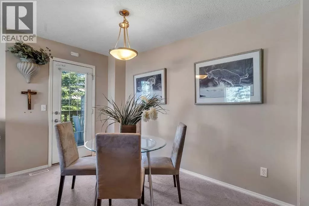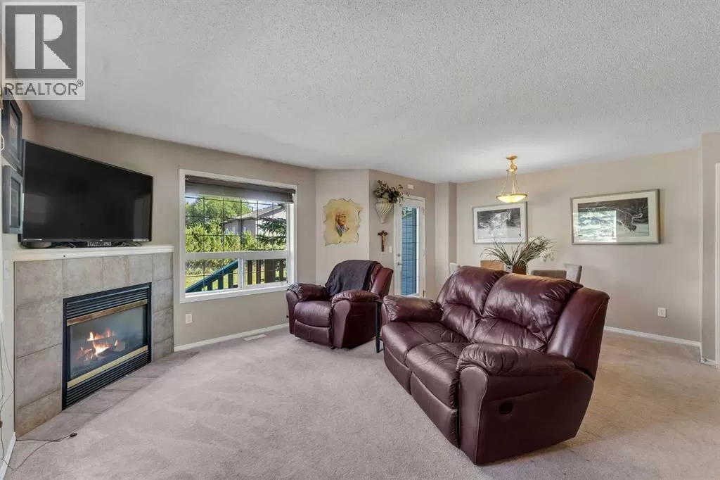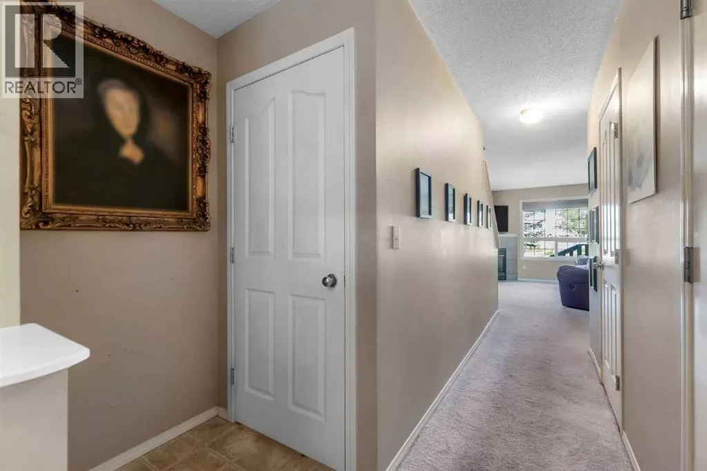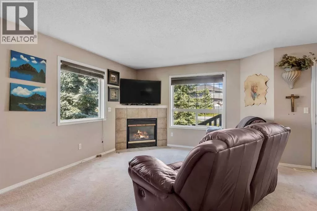 This is a heck of an opportunity to own an end unit townhome with a GARAGE backing onto greenspace. Situated in the Canals, this well run complex is quiet and peaceful. With quick access to walking paths along the Canals, you'll love the serenity of this location. Driving up, you'll appreciate the privacy of the location, and the proximity of visitor parking for guests. Inside, the open concept plan creates a comfortable atmosphere. Large windows along the back usher in natural light and a corner gas fireplace adds a cozy element. A two piece bath and convenient access to the single attached garage can be found on this level. Upstairs, you'll discover two huge primary bedrooms separated by a flex space and a 4 piece bath. The basement is partially developed with an open rec space. There is also storage and laundry. The back deck is a lovely shaded space to enjoy pretty views and birdsong. This is a pet friendly complex with up to two dogs/two cats allowed with board approval. An additional stall can be rented for $75 through the management company. (id:27476)