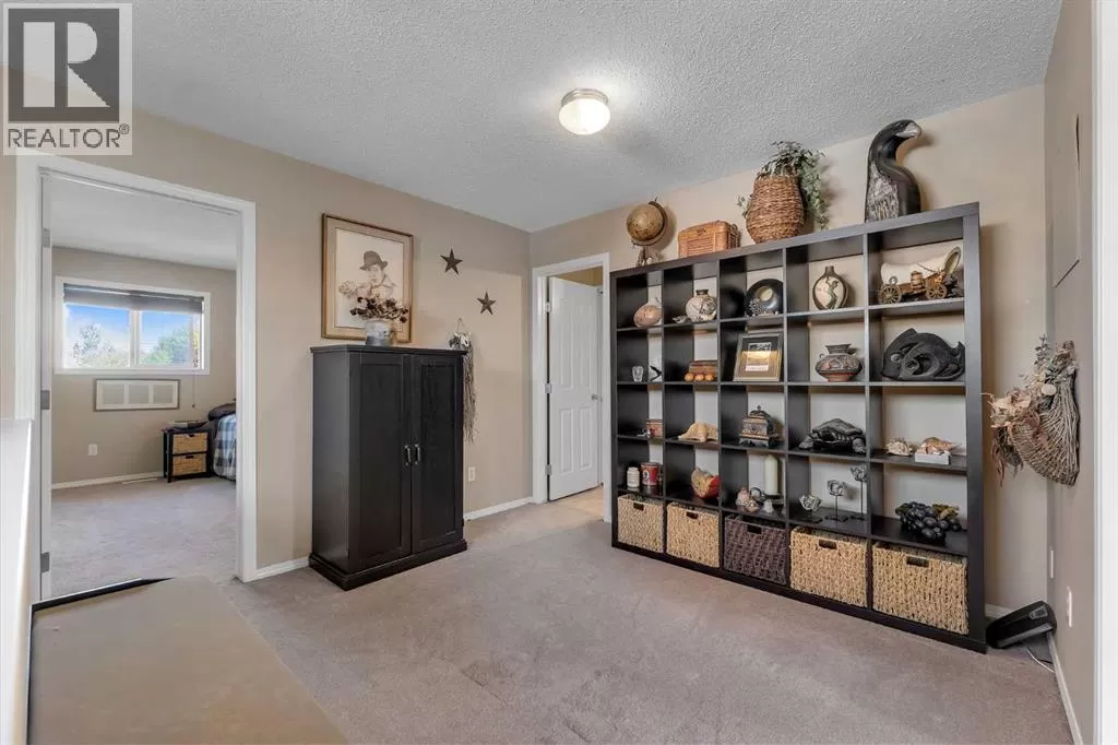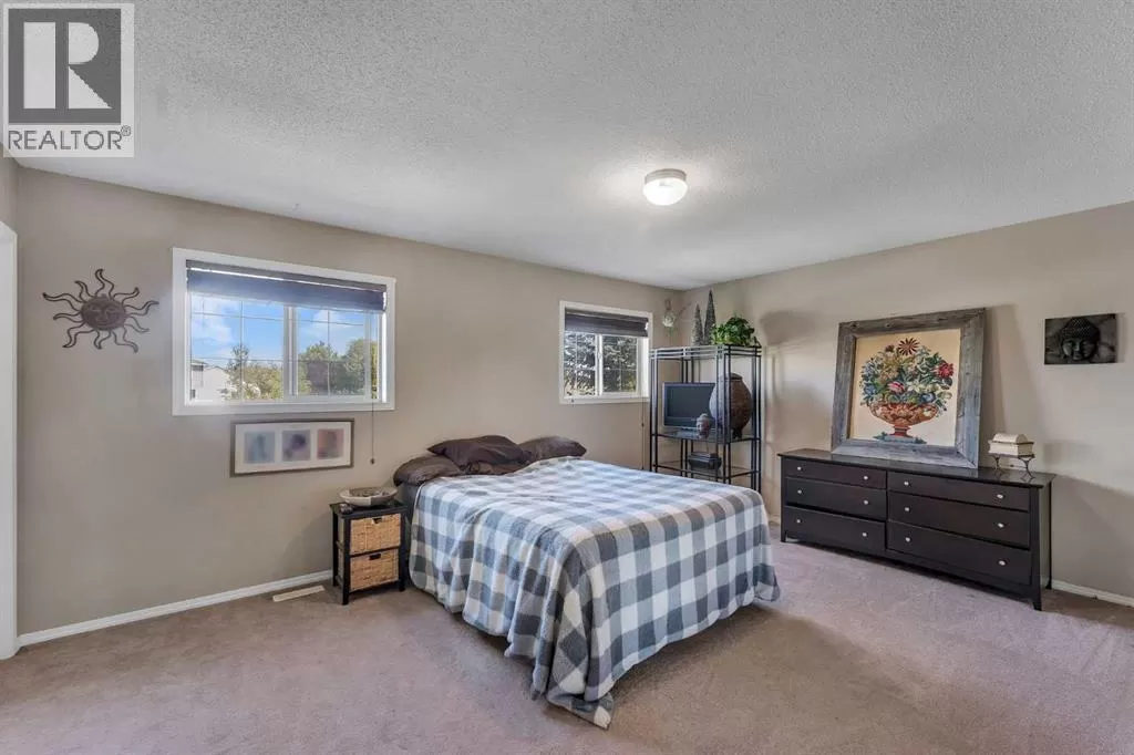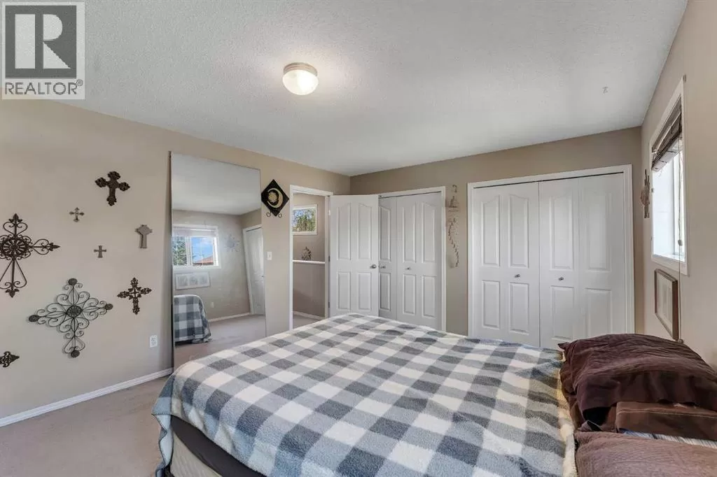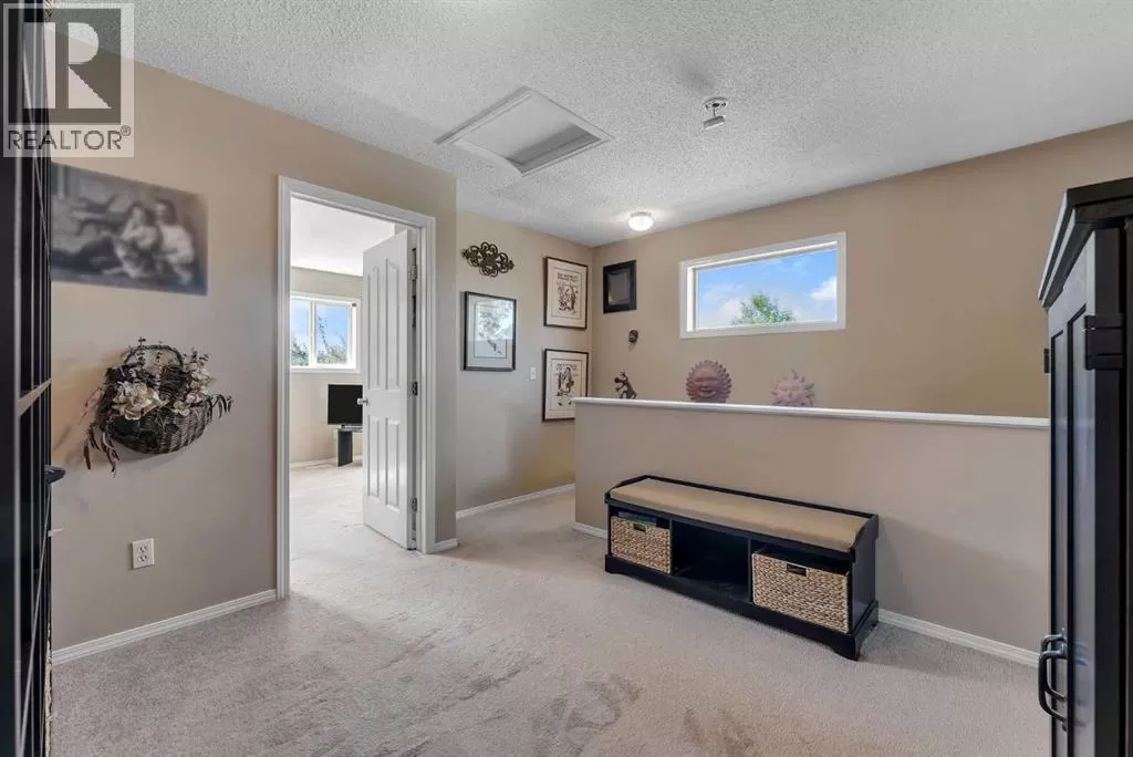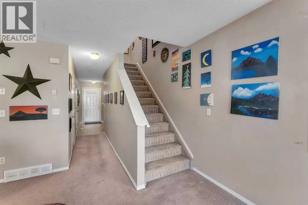 This is a heck of an opportunity to own an end unit townhome with a GARAGE backing onto greenspace. Situated in the Canals, this well run complex is quiet and peaceful. With quick access to walking paths along the Canals, you'll love the serenity of this location. Driving up, you'll appreciate the privacy of the location, and the proximity of visitor parking for guests. Inside, the open concept plan creates a comfortable atmosphere. Large windows along the back usher in natural light and a corner gas fireplace adds a cozy element. A two piece bath and convenient access to the single attached garage can be found on this level. Upstairs, you'll discover two huge primary bedrooms separated by a flex space and a 4 piece bath. The basement is partially developed with an open rec space. There is also storage and laundry. The back deck is a lovely shaded space to enjoy pretty views and birdsong. This is a pet friendly complex with up to two dogs/two cats allowed with board approval. An additional stall can be rented for $75 through the management company. (id:27476)
