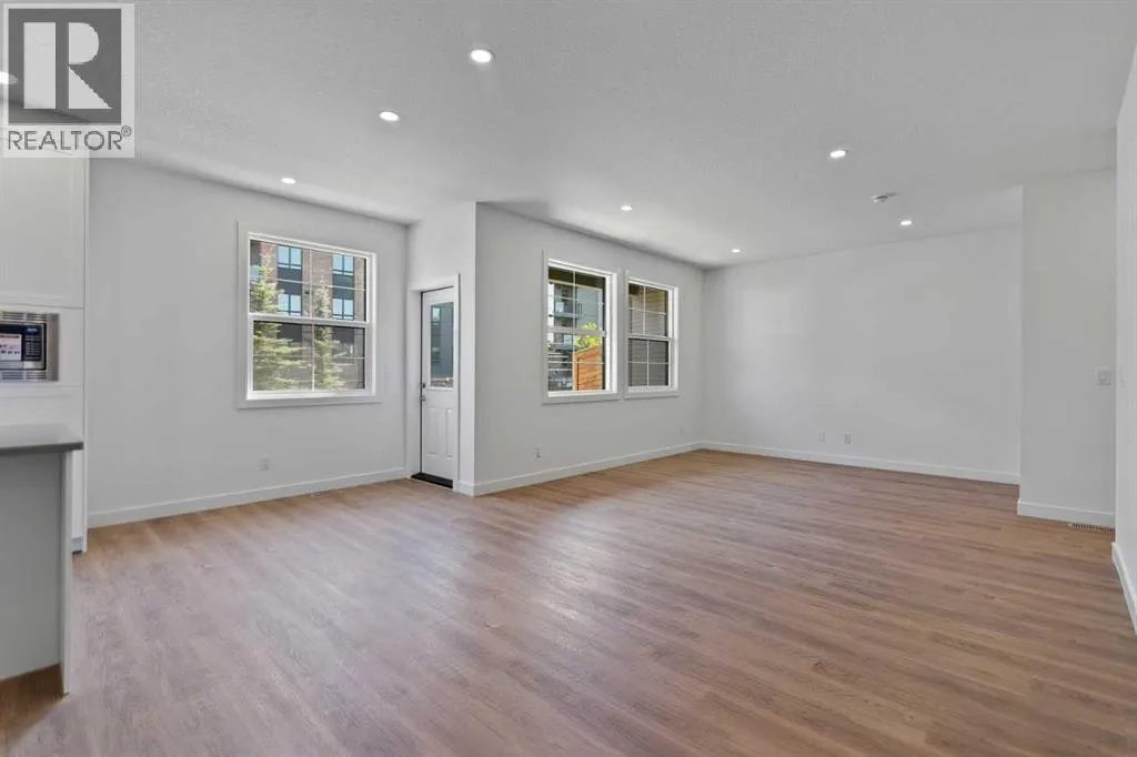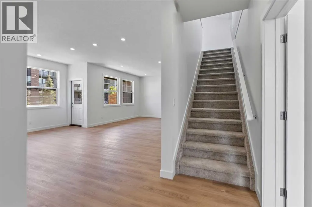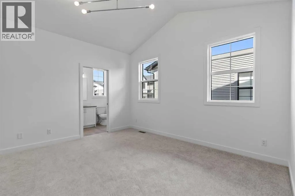 Welcome to luxury and convenience in the heart of Airdrieâs award-winning community of Cooperâs Crossing. This beautifully crafted corner-unit duplex townhome is one-of-a-kindâfeaturing the highly sought-after primary bedroom on the main floor, perfectly blending everyday comfort with smart design.Step inside to discover a bright, functional main level that boasts: A stylish gourmet kitchen with an oversized island and stainless steel appliances. A cozy family room designed for gathering and relaxation.nYour private main-floor retreat with vaulted ceilings and a spa-inspired ensuiteUpstairs, a sun-soaked bonus room offers the perfect space to unwind, work from home, or enjoy family time. Just off the bonus area, youâll find two additional bedrooms, a full bathroom, and a convenient upstairs laundry space (note: no in-unit washer and dryer).Enjoy the added luxury of 9-foot ceilings on both the main floor and the basement, creating a spacious and airy atmosphere throughout. The basement also includes two bathroom rough-ins, offering the opportunity to design a future layout with two additional bedrooms.Summer evenings are best spent on your covered west-facing balconyâwith a gas line for your BBQ and peaceful views of landscaped green space.Additional highlights include:Front Double attached garageModern, contemporary exteriors with fully landscaped yardsEnjoy a true Lock & Leave lifestyleâwith condo fees of just $347/month that cover exterior home insurance, snow removal, lawn care, landscaping, irrigation, reserve fund contributions, and even city garbage and waste removalAnd hereâs what makes this home truly special: This is the only duplex unit available among the triplex townhomes in the communityâan exclusive opportunity you wonât find again.No stress. No fuss. Just effortless, carefree living in one of Airdrieâs most desirable neighborhoods.Book your exclusive tour today. (id:27476)