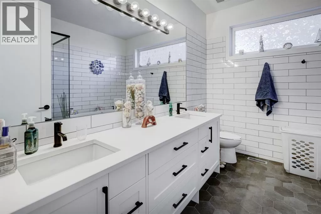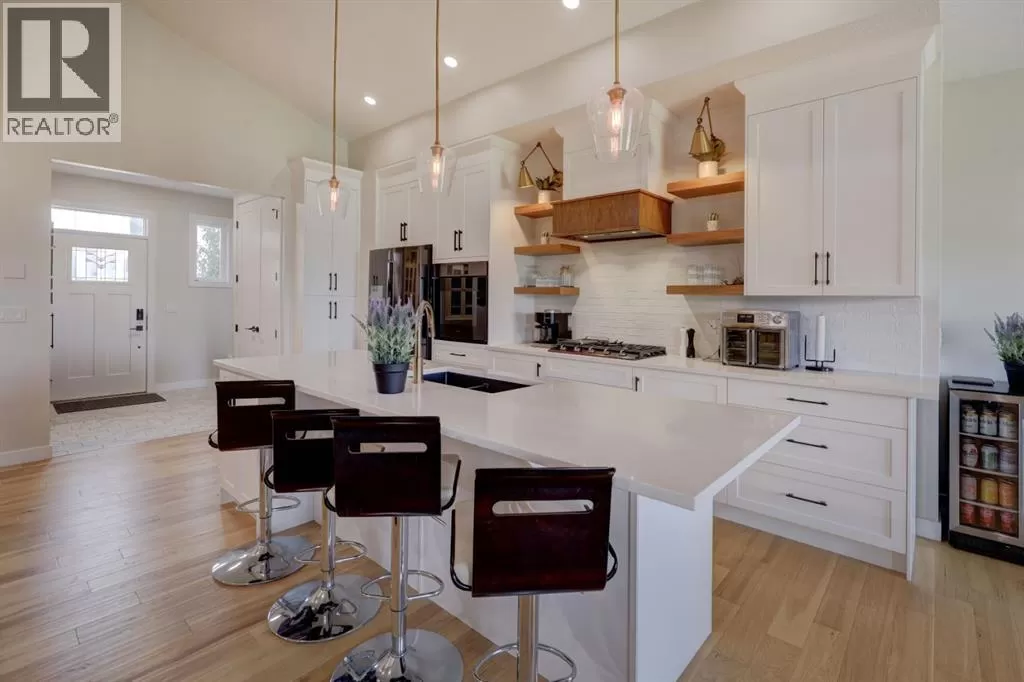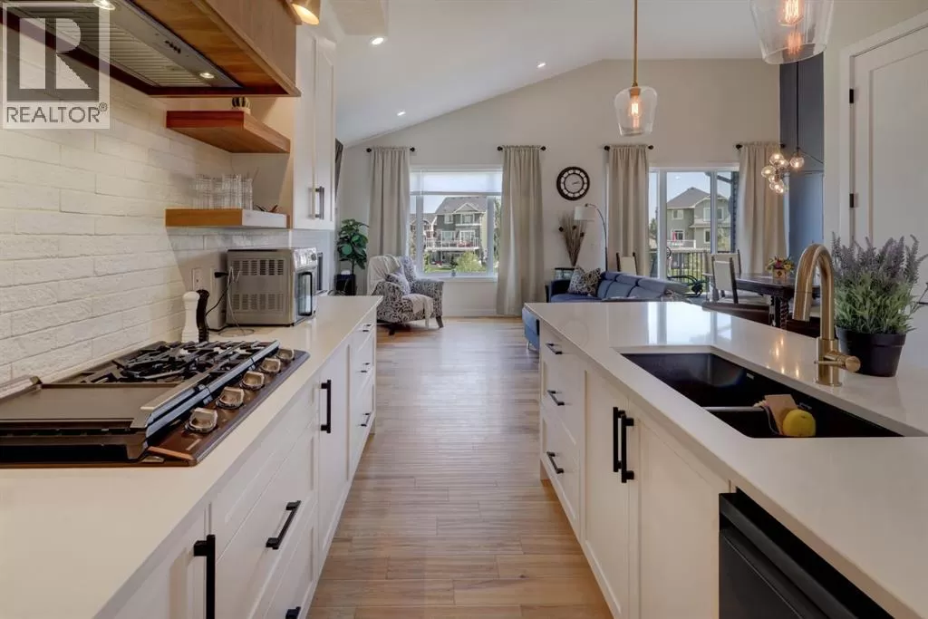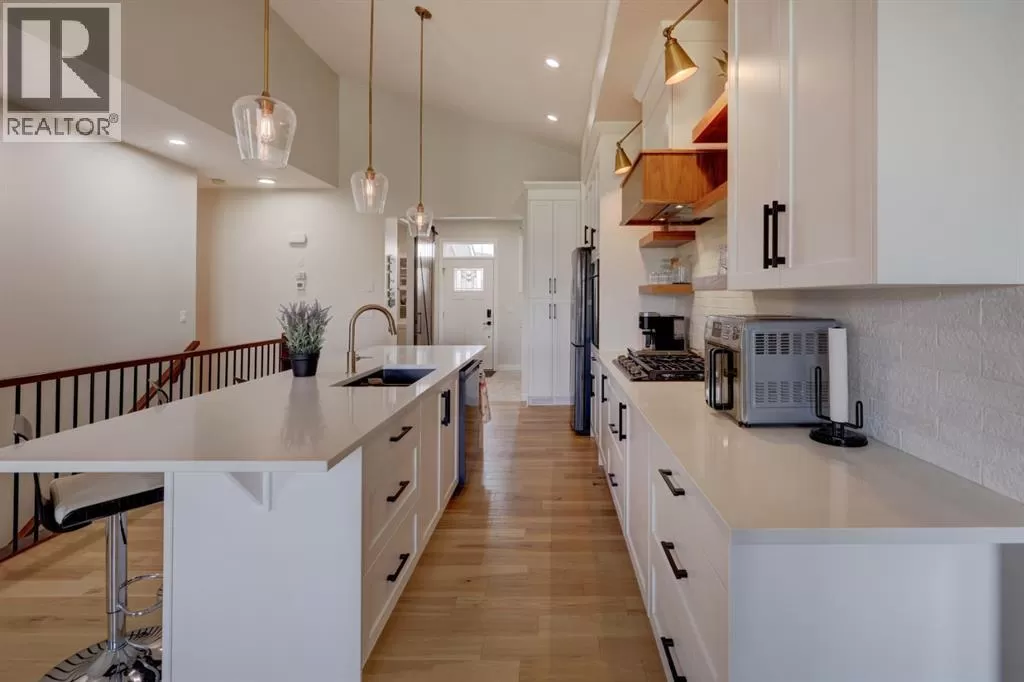 Beautifully Upgraded Bungalow on the Canals! This rare 4 bedroom, 4 bathroom home with a main floor office offers over 3000sqft of thoughtfully designed living space and a desirable west facing backyard overlooking the water. Step inside to find soaring vaulted ceilings, expansive windows that capture the canal views, warm hardwood floors, custom lighting and an abundance of built-inâs throughout. the freshly painted main floor showcases a dream kitchen with quartz countertops, SS appliance package, a statement hood fan, large Island, walk in pantry plus an additional wall pantry. The open concept design flows seamlessly into the dinning and living areas, while patio doors lead to the spacious upper deck complete with gas and water lines. The primary retreat enjoys peaceful canal views, double door entry, walk in closet and a luxurious 5pc ensuite. Another bedroom, a full bathroom, custom mud room and an upgraded laundry room with new cabinetry, pull out racks and countertop compete the main level. The fully finished lower level is perfect for entertaining or relaxing, featuring a large Rec room with wet bar, west facing windows and walkout access to the covered patio and fire pit area. Two additional bedrooms are located downstairs including one with a private ensuite, plus a versatile flex room with barn doors, ideal for a gym, office or hobby space. Upgrades includes new appliances, some new cabinetry throughout, main floor lighting and LED pot lights, new A/C, new water softener and more! This Canal front property combines modern updates with exceptional functionality and is an absolute must see! Book a showing today (id:27476)
