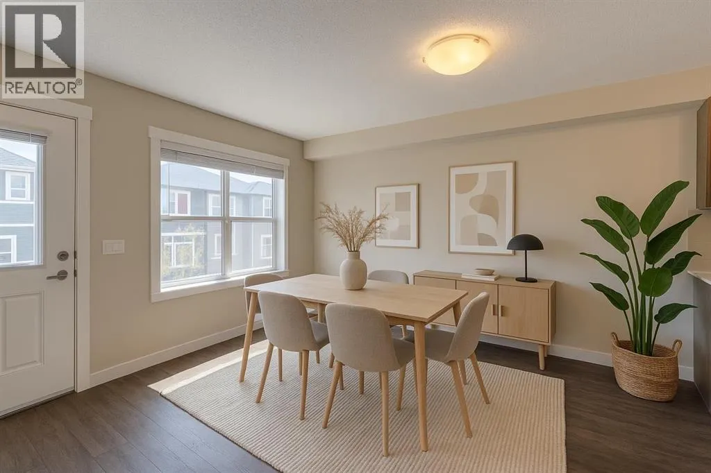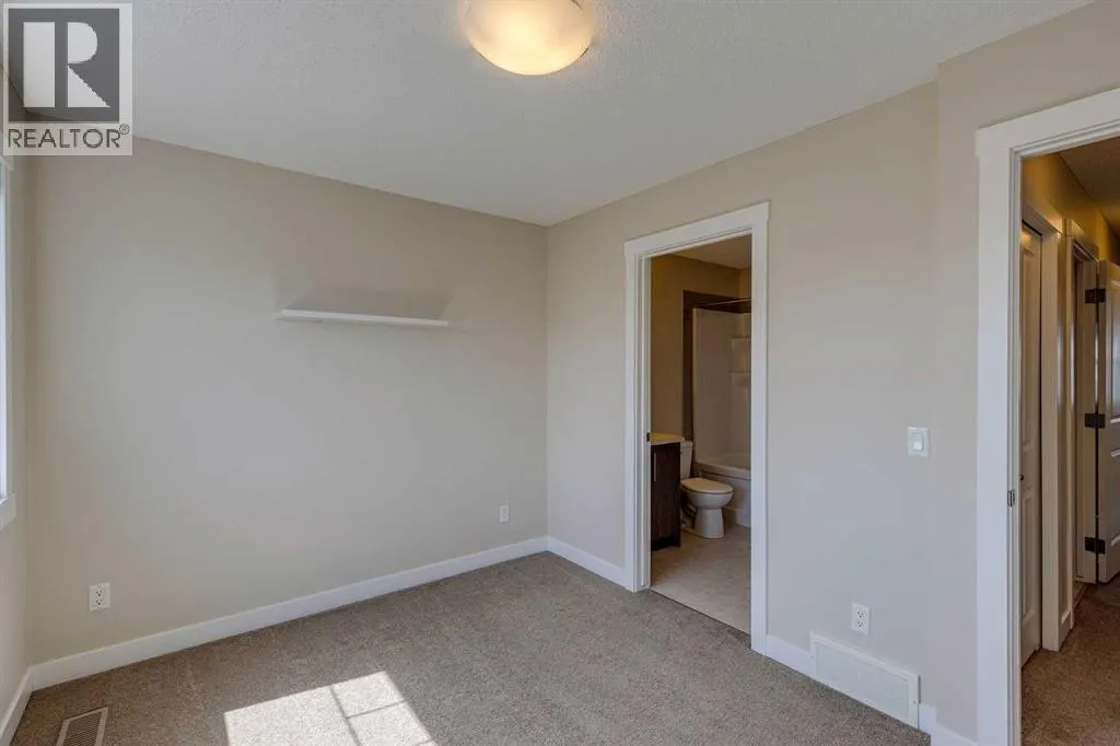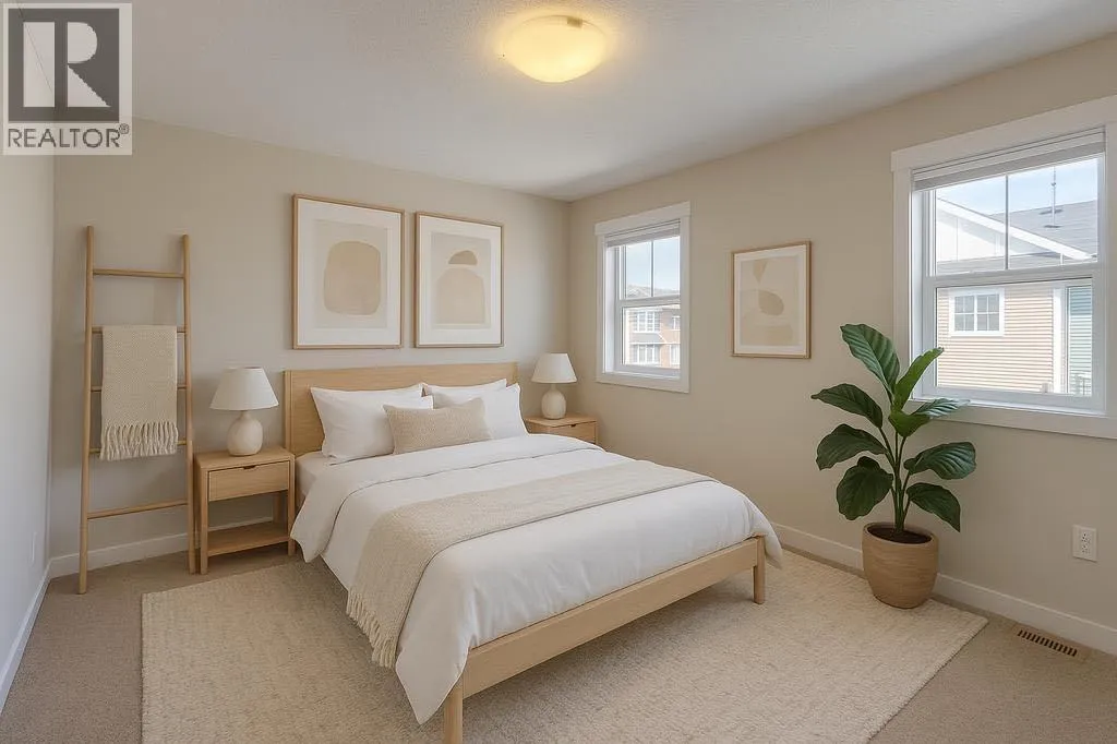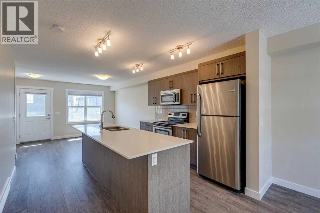 Welcome to this turn-key, move-in ready condo located in the desirable community of Kingâs Heights in Airdrie. Designed with style and function in mind, the modern centre kitchen is a true highlight featuring quartz countertops, a large eat-up island, stainless steel appliances, an upgraded refrigerator, pendant lighting, and wood-grain laminate flooring throughout the main level.The open-concept design is bright and inviting with large windows that flood the space with natural light, while the back deck provides the perfect setting for summer barbecues or quiet evenings outdoors. Upstairs youâll find the convenience of upper-floor laundry along with two spacious primary suites, each offering a walk-in closet and its own four-piece ensuite bathroom.The attached garage adds everyday convenience with a walk-out to a private concrete patio and outdoor space.Set in Kingâs Heights, this home offers the perfect balance of comfort and location, with easy access to parks, pathways, schools, shopping, dining, and commuter routes. Donât miss this opportunity to own in one of Airdrieâs most sought-after communities! (id:27476)