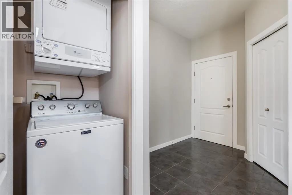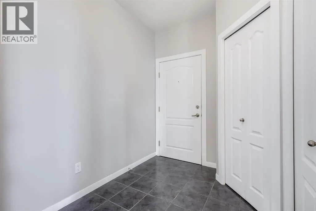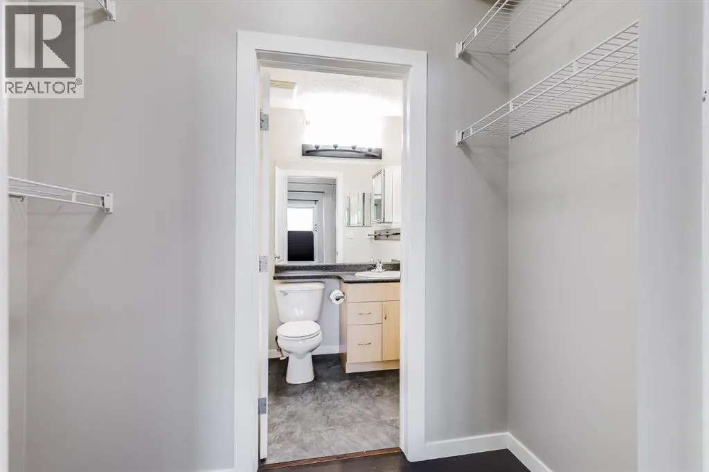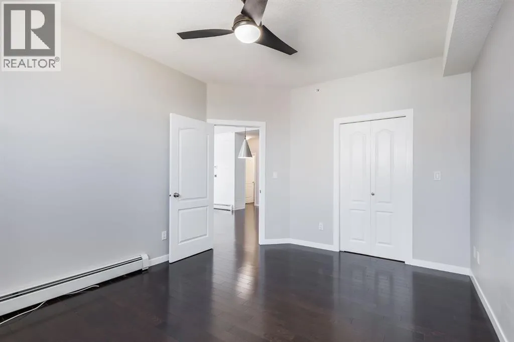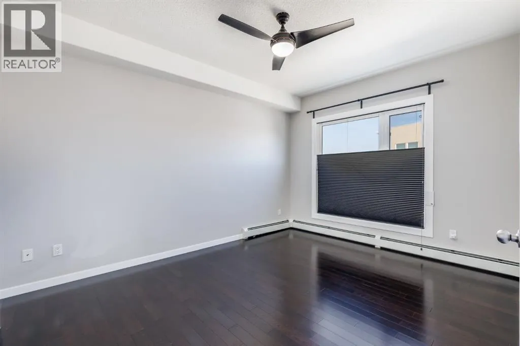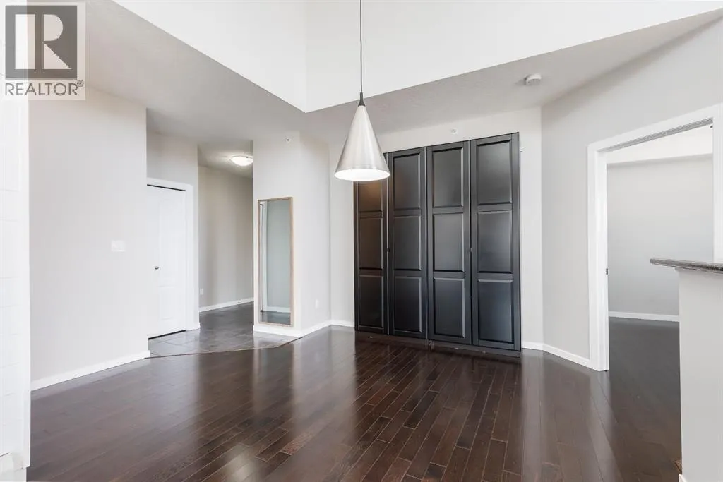NEW PRICE NOV 3rd ** RARE OPPORTUNITY to own this Gorgeous Top Floor, Corner Unit with Soaring Cathedral Ceilings, Large Private Deck, and has an Underground Parking Stall. ** This Fantastic 2 Bedroom, 2 Bathroom Condo has 960 sqft of Amazing Living Space and is Ready for a QUICK POSSESSION. When you enter this Condo, you will immediately notice the Private Foyer that has a Large Storage Room off the entry. The HARDWOOD FLOORS welcome you to the Main area that has the EXPANSIVE 18' HIGH CATHEDRAL CEILING that allows lots of Natural Light from the Extra Windows. The Living Room has a great Shiplap Wall and Opens to the Oversized Deck that is private and has great space for your Patio Furniture. The Kitchen has a Large Island and Newer Stainless Steel Appliances, and opens to the Dining Area that has a Built in Wall Unit for extra storage. The Primary Bedroom is 14'1" x 11'3" and has a Walk through Closet to the 4 pc Ensuite. Bedroom 2 is 10'3" x 12'1", is located on the opposite end of the Condo and includes a Murphy Bed for your Guests with the 4 pc Main Bathroom steps away. There is also a Laundry Room. The Condo includes an Underground Parking Stall. This Great Complex is located beside Genesis Place which is perfect for Lifestyle Living if you are active and want swim, skate, work out in the Gym, or partake in the many classes provided. It is also close to Transportation, and Dining. Condo fees include all your utilities except electricity. Pets are allowed with Board Approval. (id:27476)