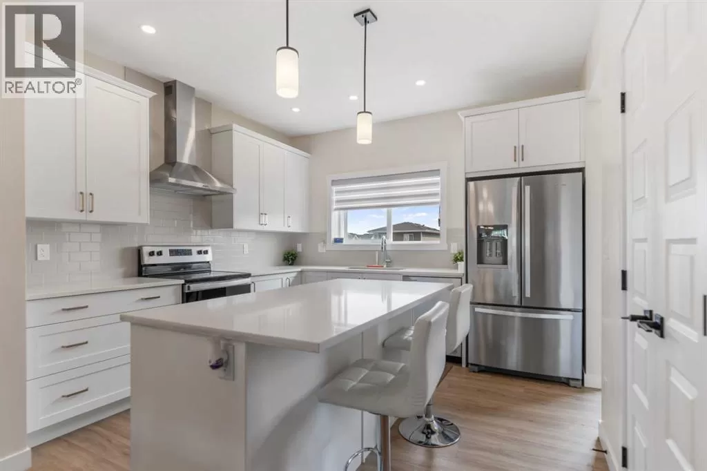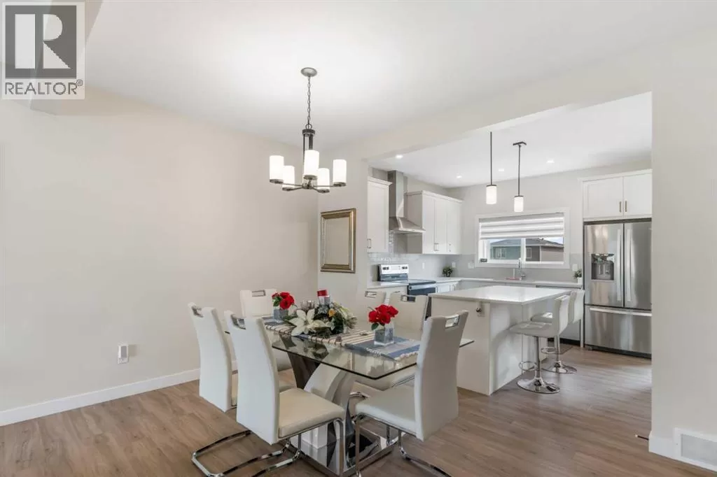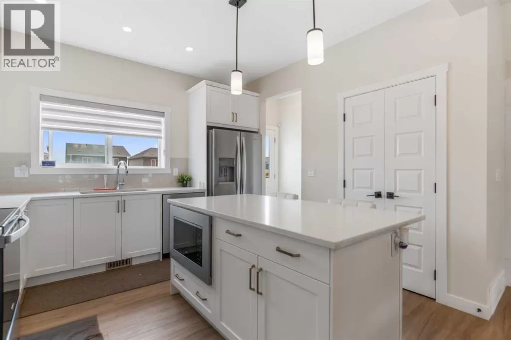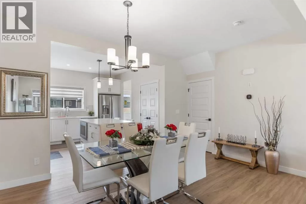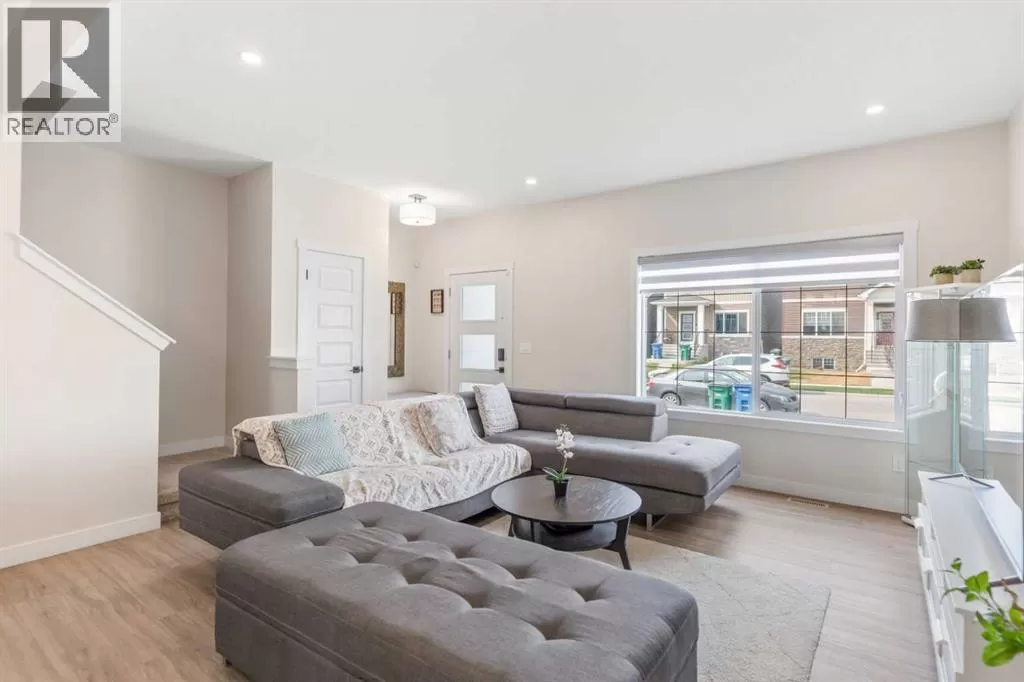 Airbnb Income Property â Fully Furnished Option Available! This 2024-built detached home in Bayview, Airdrie is already producing steady short-term rental income, making it an ideal turnkey investment opportunity or a first time Homebuyer.Offering 1,480 sq. ft. of modern living space with 3 bedrooms and 2.5 baths, this nearly new home combines elegant finishes, a functional layout, and excellent cash flow potential. The seller is willing to include all furnishings, allowing investors to step directly into a fully operational income-producing property from day one. Inside, the open-concept main floor features 9 ft knockdown ceilings, recessed lighting, and luxury vinyl plank flooring. The gourmet kitchen is equipped with quartz countertops, a central island with seating and premium stainless steel appliances including a built-in microwave and range hood. The spacious living and dining areas flow seamlessly to the backyard, perfect for entertaining. Upstairs, the primary suite offers a large window, walk-in closet, and 4-piece ensuite with a double vanity and walk-in shower. Two additional bedrooms, a 3-piece bath with soaking tub, and a convenient upper-floor laundry room complete the level. The sunshine basement offers excellent future potential with rough-in for a bathroom and layout for two additional bedrooms. Added features include a Smart Home Package with thermostat, video doorbell, and smart locks, plus a double car concrete pad ready for a future detached garage. Located in family-friendly Bayview, this home is just 10 minutes from CrossIron Mall and 15 minutes from Calgary International Airport, with schools, parks, and playgrounds nearby. A rare opportunity for both investors and homeowners seeking value, comfort, and long-term potential. (id:27476)