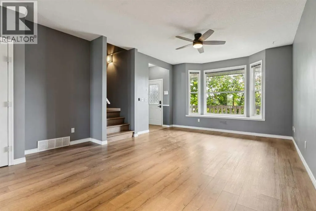 PRICE DECREASE!! Welcome to #104 2001 Luxstone Blvd SW in Airdrieâs desirable Luxstone community! This well-kept townhouse offers excellent value, with 3 bedrooms, 2.5 bathrooms, and a fully finished basement. The main level features a living room with a bay window, half bathroom, and a kitchen with generous cabinetry. This opens onto a bright dining room, overlooking the backyard and beautiful shared green space. Heading upstairs, you will find a spacious south-facing primary bedroom, two additional bedrooms across the hall, and a convenient centrally located full bathroom.The fully finished basement provides additional living space that would be perfect for a family room, office, guest area, or home gym. In addition, the basement offers an additional room, full bathroom, laundry room, and plenty of storage space. This home features a front porch surrounded by trees as well as a back deck, and a backyard complete with its own private storage shed. Directly out front are two assigned parking stalls. With low condo fees and a prime location near parks, schools, shopping centres, as well as quick highway access, this home delivers unbeatable value, in this vibrant, family-friendly community. Donât miss your chance to make this beautiful home your own! (id:27476)