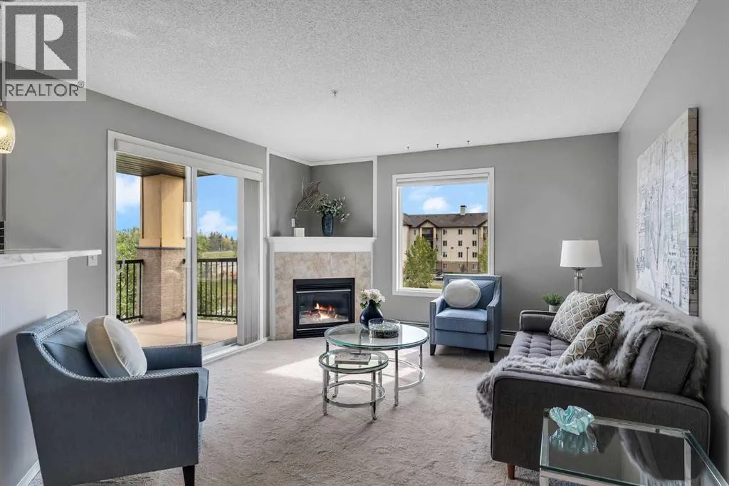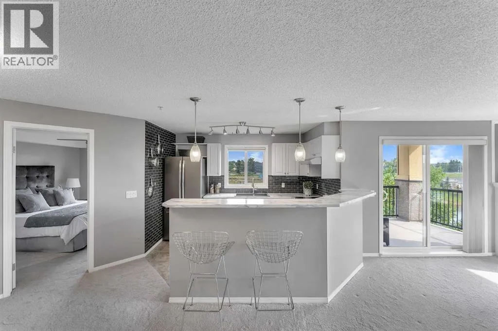 Picture coming home to this bright, open concept condo, the perfect retreat after a long day. You will notice the large entry way upon entering and the abundance of light pouring in. This condo has a large open concept kitchen, perfect for cooking at home and lots of space for dining and entertaining guests. You also have 2 large bedrooms and 2 bathrooms on opposite sites of the home, thoughtfully positioned on opposite sides of the unit for optimal privacy. This condo truly has it all! Brand NEW CARPET throughout, FRESH PAINT, bright open concept living space, TITLED UNDERGROUND PARKING and a large CORNER BALCONY over looking the pond. Located in the downtown area of Airdrie, you'll love the convenience of being just steps away from coffee shops, grocery stores, gyms, schools, restaurants, and more. Donât miss your chance to own this turnkey home in a prime location. (id:27476)