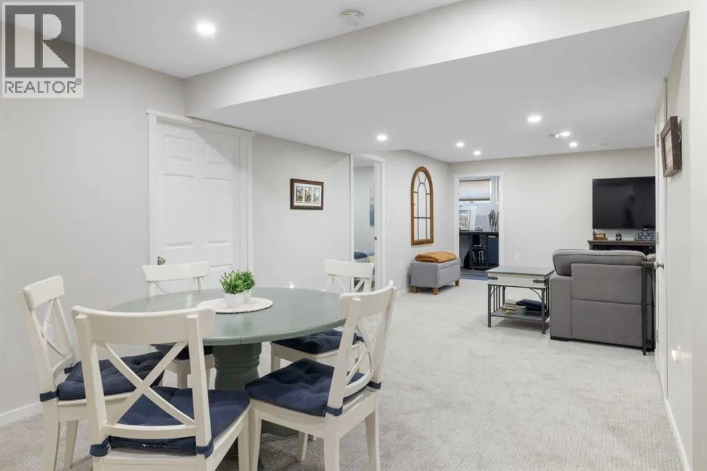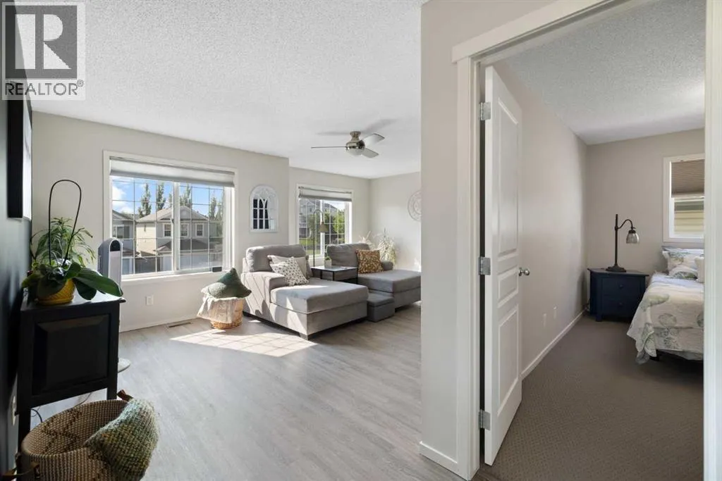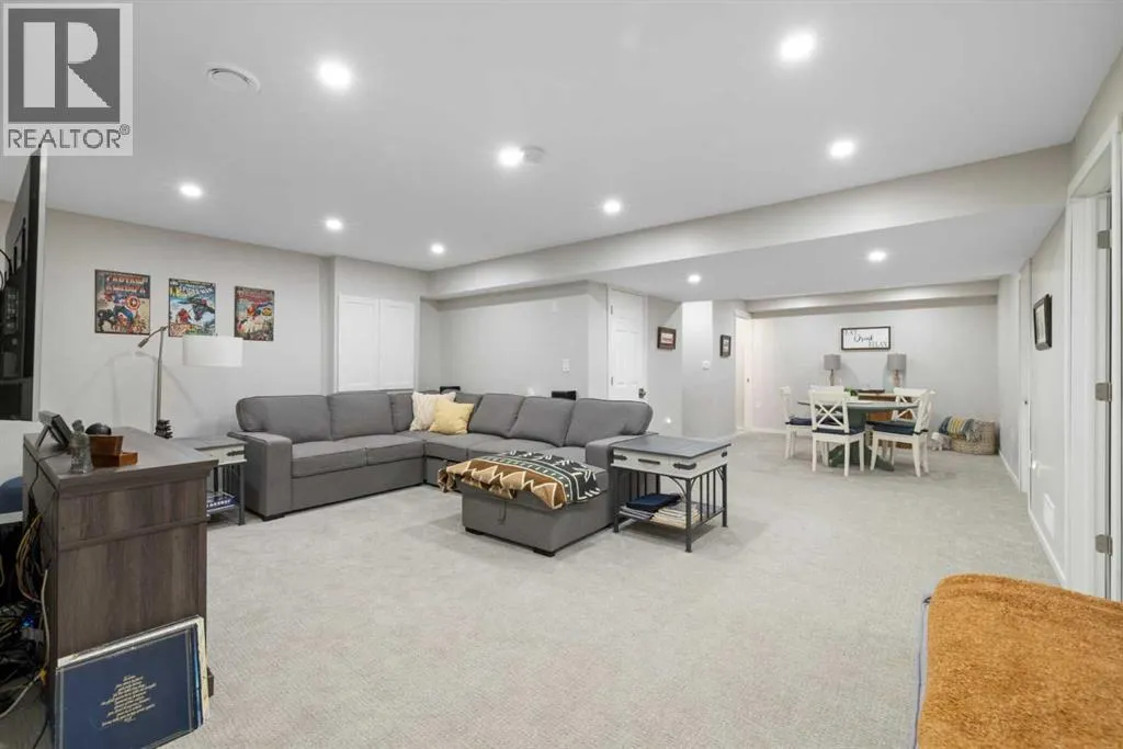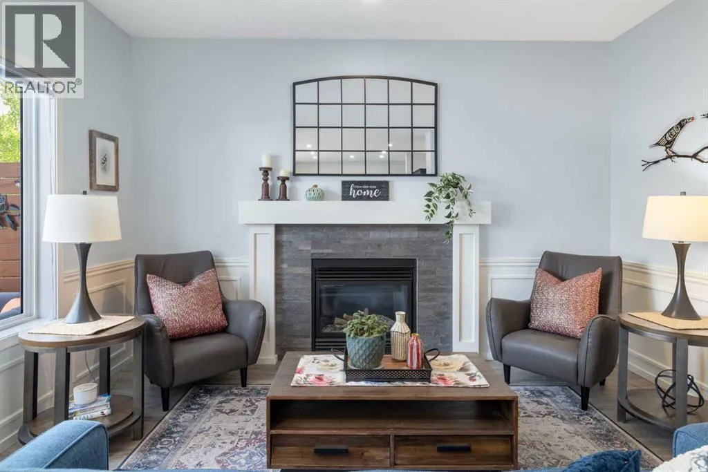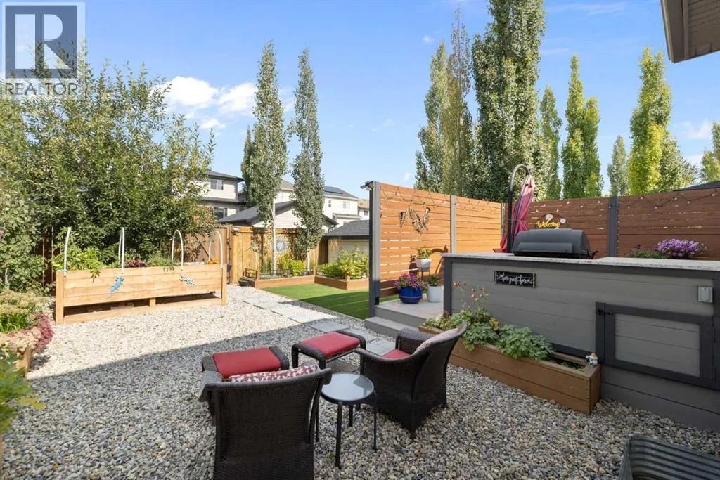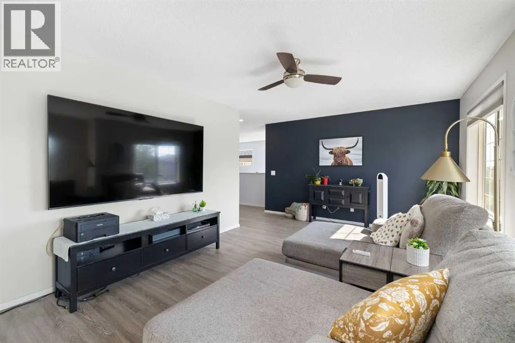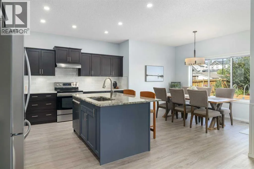 Welcoming and Well-Appointed family home, close to School, Parks, & Pathways. Step inside to a bright foyer with vinyl plank flooring, setting the tone for a home that balances comfort and function. The main floor offers a versatile office with a barn door, a stylish 2-piece bath with pocket door. Spacious great room features a gas fireplace with surround and mantle. The kitchen is designed for both cooking and gathering, with vinyl plank floors, granite counters, stainless steel appliances (including fridge with bottom freezer, electric stove, hood fan, and dishwasher), and a walk-through pantry that connects to the garage, laundry area with cabinets above the washer/dryer, and additional hallway storage. The adjoining breakfast nook boasts a large window overlooking the yard and opens through double doors onto the deck. The bonus room faces south, filled with natural light and is finished with vinyl plank flooring & ceiling fan. The primary suite includes carpet, ceiling fan, two walk-in closets, and a luxurious 5-piece ensuite with double vanity, soaker tub, and shower. Two additional bedrooms (both carpeted) share a 4-piece main bath with quartz counters and vinyl plank flooring. The lower level is fully developed (with permits) with a cozy family room (pot lighting, smooth ceiling, carpet), an additional bedroom, a full bathroom with shower and ceiling-high surround, plus a hobby area with built-in wall cabinets. Outdoors, the backyard is designed for easy enjoyment with artificial grass, a privacy-fenced deck, built-in BBQ with electrical hookup, water barrel, standalone planter, shed, and mature trees. Double Attached garage. The front of the home showcases a charming wood porch. Enjoy the the perfect location in this easy maintenance lifestyle in this move-in-ready home. (id:27476)