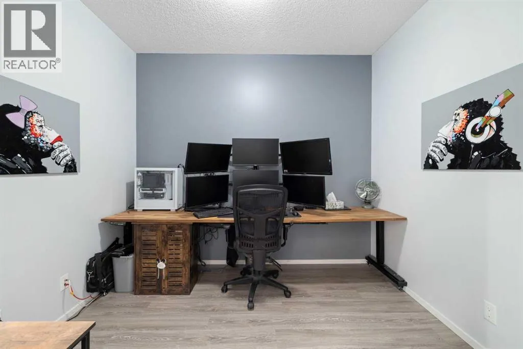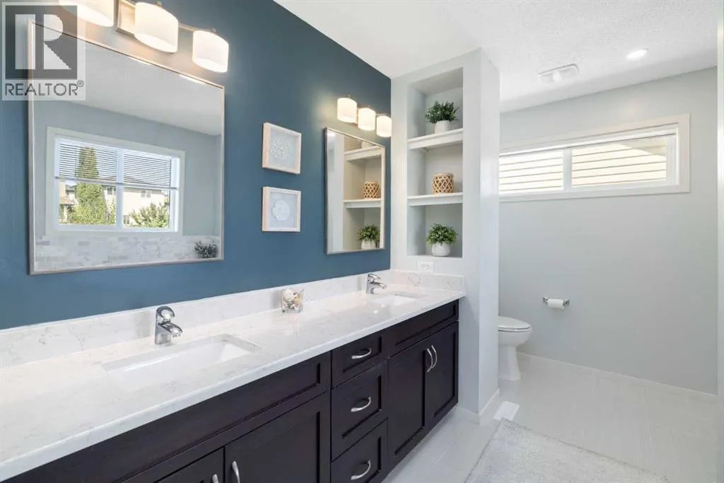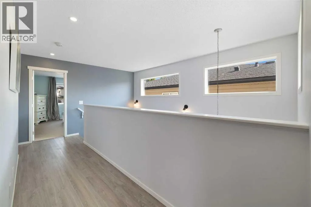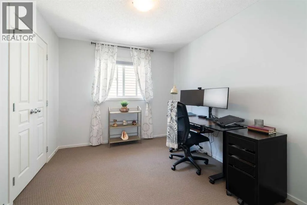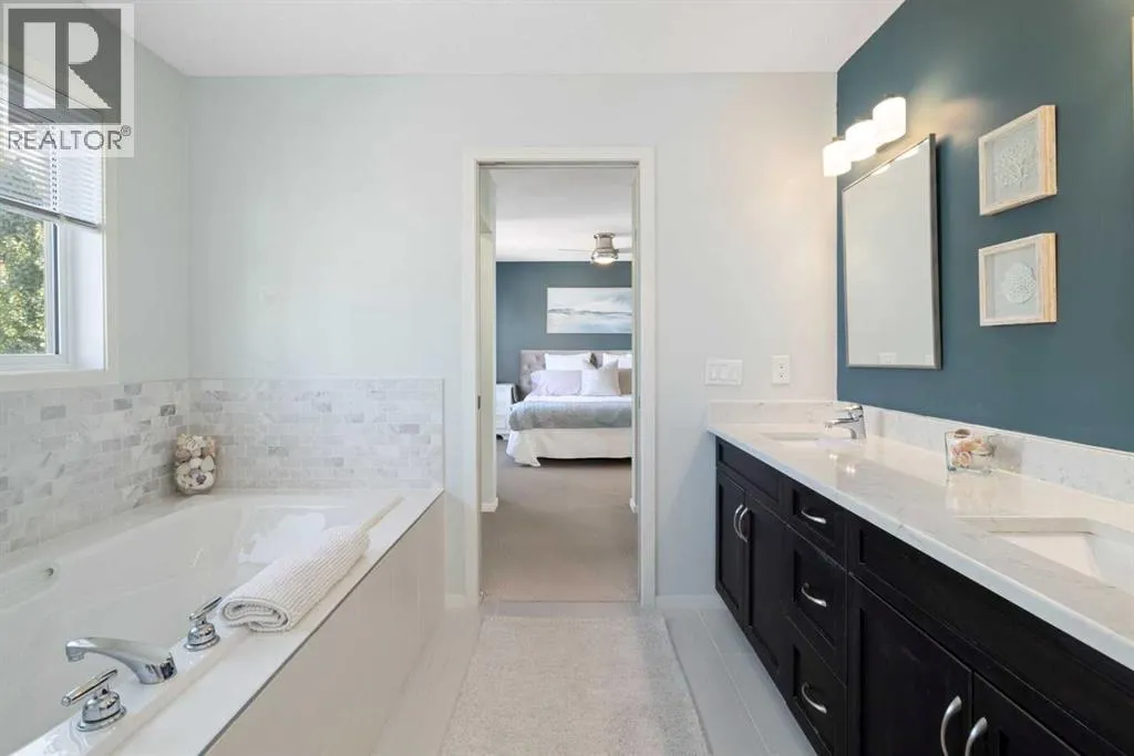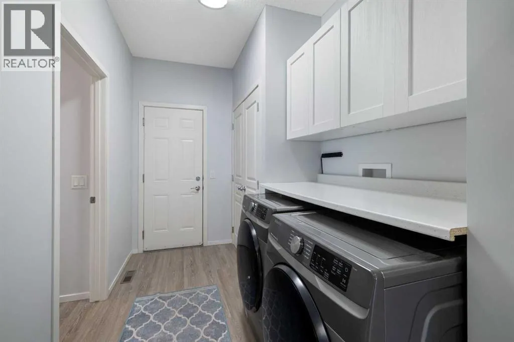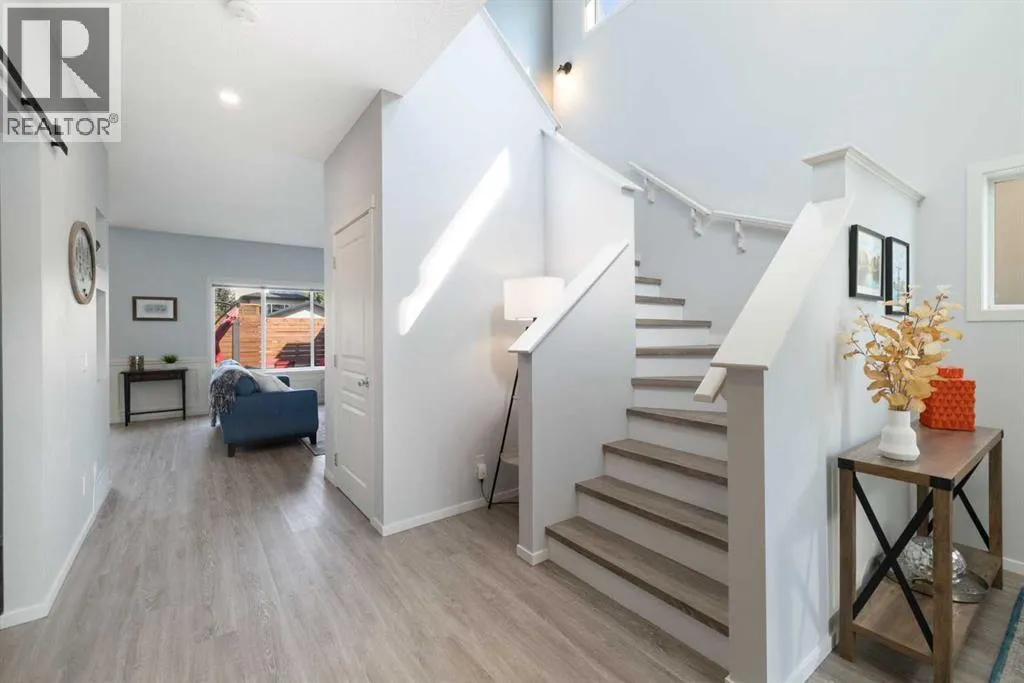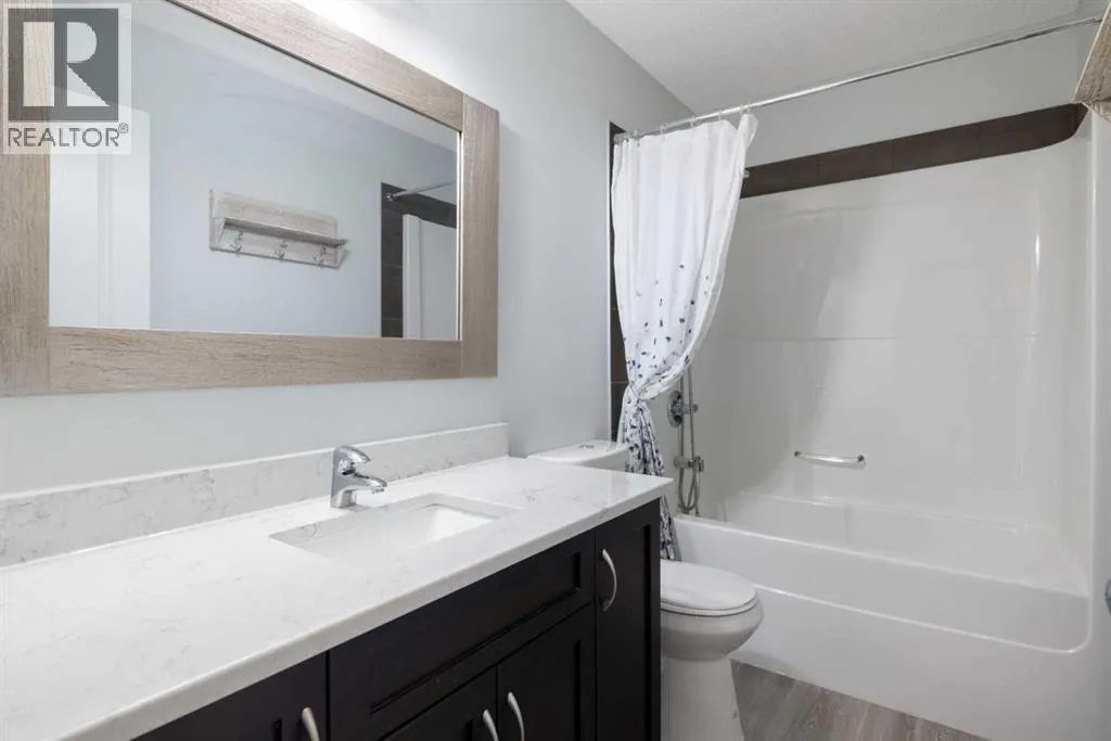 Welcoming and Well-Appointed family home, close to School, Parks, & Pathways. Step inside to a bright foyer with vinyl plank flooring, setting the tone for a home that balances comfort and function. The main floor offers a versatile office with a barn door, a stylish 2-piece bath with pocket door. Spacious great room features a gas fireplace with surround and mantle. The kitchen is designed for both cooking and gathering, with vinyl plank floors, granite counters, stainless steel appliances (including fridge with bottom freezer, electric stove, hood fan, and dishwasher), and a walk-through pantry that connects to the garage, laundry area with cabinets above the washer/dryer, and additional hallway storage. The adjoining breakfast nook boasts a large window overlooking the yard and opens through double doors onto the deck. The bonus room faces south, filled with natural light and is finished with vinyl plank flooring & ceiling fan. The primary suite includes carpet, ceiling fan, two walk-in closets, and a luxurious 5-piece ensuite with double vanity, soaker tub, and shower. Two additional bedrooms (both carpeted) share a 4-piece main bath with quartz counters and vinyl plank flooring. The lower level is fully developed (with permits) with a cozy family room (pot lighting, smooth ceiling, carpet), an additional bedroom, a full bathroom with shower and ceiling-high surround, plus a hobby area with built-in wall cabinets. Outdoors, the backyard is designed for easy enjoyment with artificial grass, a privacy-fenced deck, built-in BBQ with electrical hookup, water barrel, standalone planter, shed, and mature trees. Double Attached garage. The front of the home showcases a charming wood porch. Enjoy the the perfect location in this easy maintenance lifestyle in this move-in-ready home. (id:27476)