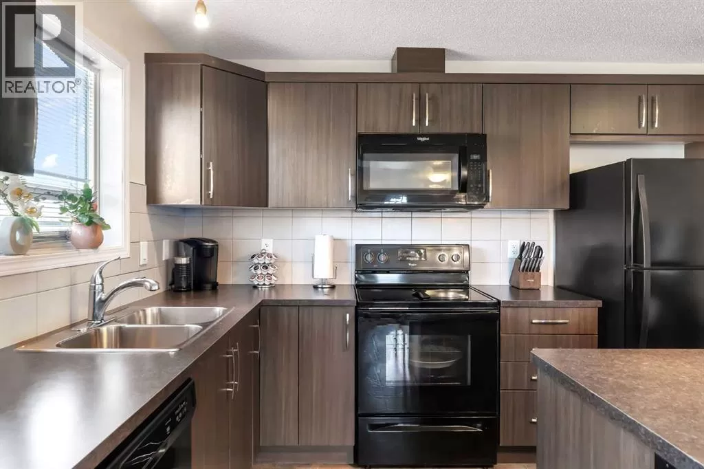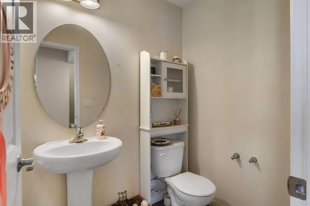CORNER UNIT | 3 BEDS 1.5 BATHS | ATTACHED GARAGE | NO CONDO FEEWelcome to this stunning end-unit townhouse in South Windsong Airdrie, offering the perfect blend of style, comfort, and affordabilityâall with no condo fees! As you step inside, you'll be warmly greeted by a spacious foyer with a generously sized coat closet, providing ample storage and a welcoming entrance. From there, the large laundry room with abundant storage options and convenient access to the single attached garage make everyday living effortless.Ascend to the bright and open upper level, where an inviting layout awaits. The chefâs kitchen features a large island perfect for gatherings, flowing seamlessly into the spacious living roomâan ideal space for relaxing or entertaining. Adjacent to the living room, you'll find a charming dining area, perfect for family meals and dinner parties. Step out onto the private balcony for peaceful outdoor moments. A half bathroom on this floor adds extra convenience for friends and family.Upstairs, you'll find two generously sized bedrooms, each with ample closet space, offering comfortable retreats. The primary bedroom is spacious and bright, complete with direct access to a beautiful three-piece bathroom, creating a perfect sanctuary for restful nights.Located close to Calgary and all major amenities, this immaculate, low-maintenance townhome in Airdrie presents an exceptional opportunity for first-time buyers, investors, or those seeking a beautiful, move-in-ready home. Donât miss outâschedule your showing today and make this incredible property yours! (id:27476)
